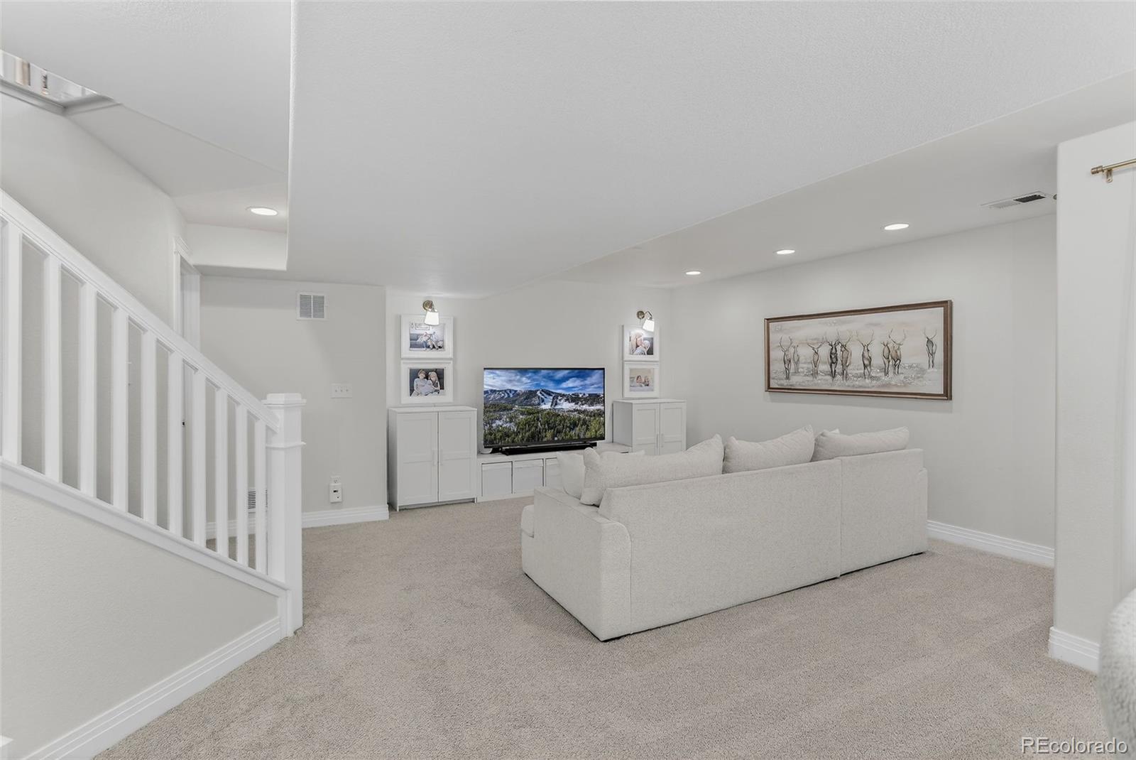 Tucked away on a quiet street in a peaceful neighborhood, this home offers a sense of calm the moment you arrive. It’s the kind of place where life feels a little more balanced, a little more intentional. Inside, the freshly painted cabinets and updated open floorplan create a bright, welcoming atmosphere that’s filled with natural light throughout the day. The main floor flows effortlessly, making it easy to imagine everything from relaxed mornings to evenings spent hosting friends or unwinding at home. The main-floor primary suite adds a layer of comfort and convenience, complete with an ensuite bath. Downstairs, the finished basement expands the way this home can be lived in. Two spacious bedrooms, a full bathroom, and an open flex space offer endless options. Whether you need room for guests, a home office, a workout area, or a cozy second living space, it’s a layout that adapts. Outside, both the front and back yards are equipped with a sprinkler system, making upkeep simple and freeing up more time to enjoy the nearby trails and open space. With updated systems like a new water heater in 2024, thoughtful improvements throughout, and a quiet location near amenities, this home strikes the perfect balance between comfort and convenience.