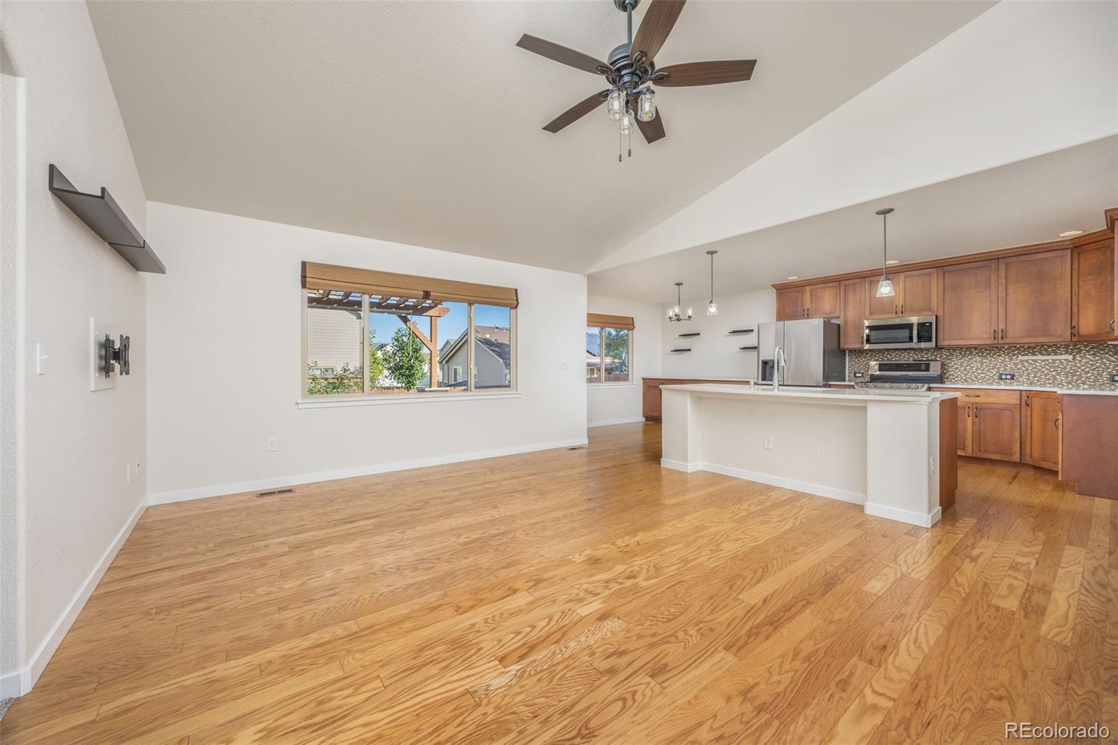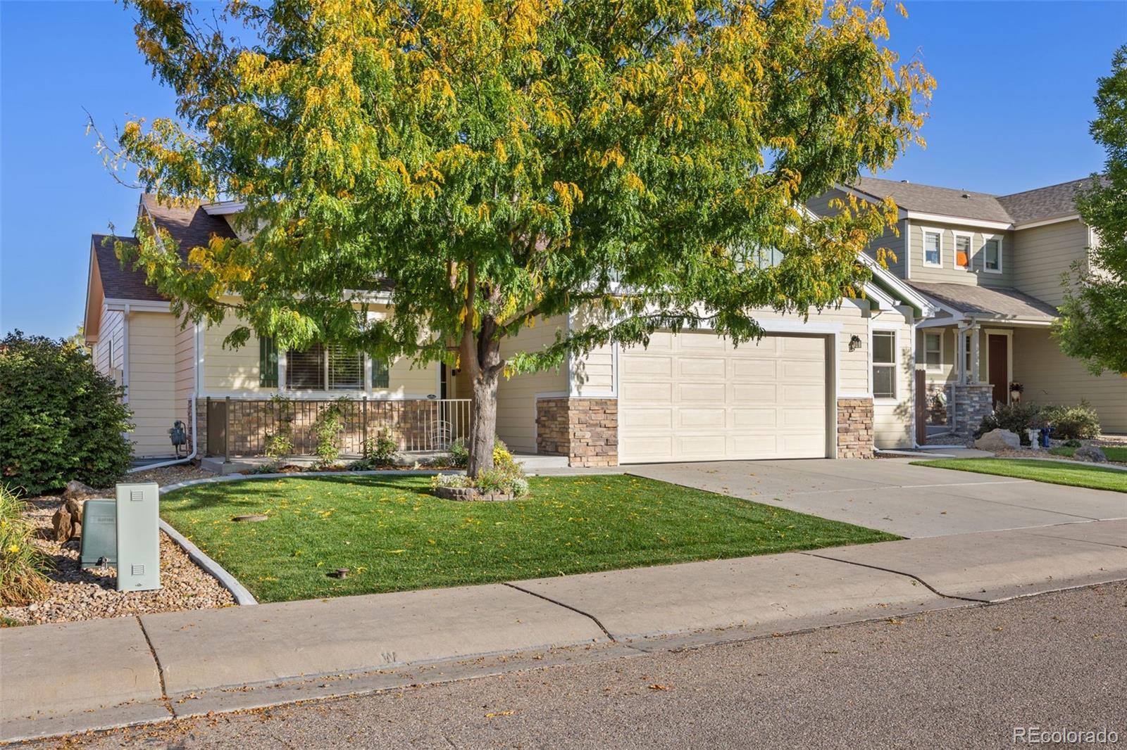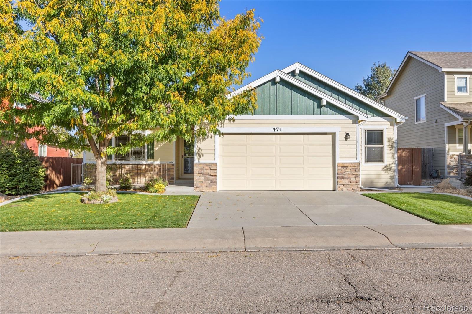Welcome to 471 Expedition Lane, a beautifully maintained ranch-style home in the heart of Johnstown. Offering an inviting open floor plan, this home features a spacious living room, dining area, and updated kitchen with granite countertops, abundant cabinetry, and brand-new appliances including a refrigerator, dishwasher, microwave, and double range. The main level includes a comfortable primary suite with a walk-in closet and five-piece bath, a secondary bedroom and full bath, and the convenience of main-floor laundry. The nearly finished basement expands the living space with an additional bedroom and walk-in closet, a large great room, and a fantastic versatile coffee or bar nook perfect for entertaining or relaxing! A storage area also provides flexibility and could easily be finished into a fourth bedroom if desired. This property has seen extensive upgrades between 2024 and 2025, including new interior and exterior paint, new carpet and window coverings throughout, updated kitchen lighting, dining room chandelier, and new counters and cupboards with slide-outs. Additional updates include a new dishwasher and added cabinetry, insta-hot water heater, whole-house humidifier, and new shower doors in the hall bath. Outdoor living is just as impressive, featuring a freshly painted pergola-covered patio, BBQ pad, new backyard landscaping with a retaining wall, irrigation system, concrete edging, sun shade, and a 5'x7' shed on concrete. The oversized two-car garage offers a builder-added bump-out, along with a new garage heater for comfort year-round. Permanent trim lighting, a new paid off solar system, and a welcoming front porch with new railing add modern efficiency and charm. With a low HOA, no metro district, and a prime location near historic downtown Johnstown and local shopping, this home combines thoughtful updates, modern comfort, and community appeal. Plus, it's listed below the recent $540,000 appraisal-making it an exceptional opportunity.