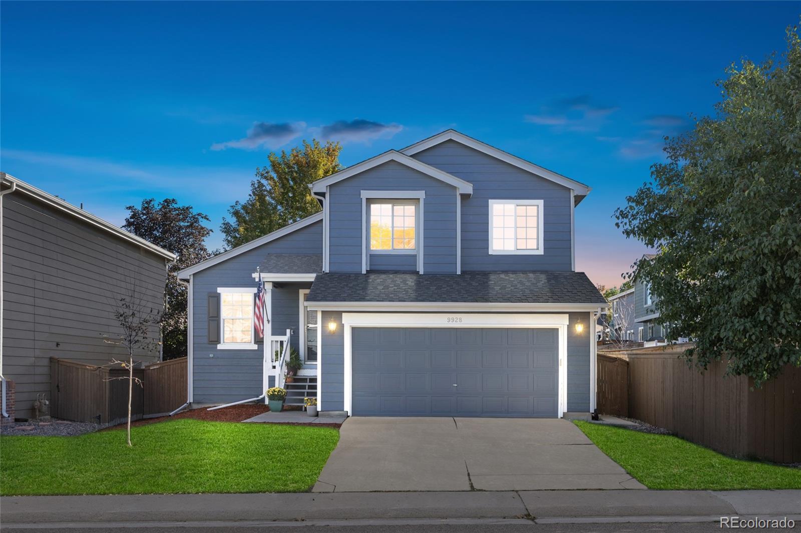 Welcome to 9928 Saybrook St! In the heart of Highlands Ranch, this beautifully maintained home features thoughtful upgrades, cathedral ceilings and a private backyard. As you walk in, the dining area welcomes you in. Enjoy an abundance of natural lighting and beautiful kitchen. The family room features built-in shelving and a gas fireplace. Upgrades include a new dishwasher (2024), air conditioner and furnace (2024), fresh interior paint and carpet (2021), smart thermostat, smart garage door opener, and brand-new landscaping (2025). The sprinkler system makes lawn care easy. Enjoy being close to everything: Shake Shack, Play Street Museum, Whole Foods, King Soopers, medical offices, and just a short drive to Park Meadows Mall and Chatfield Reservoir. With local favorites like Prost, Lazy Dog, and Max Taps, you'll enjoy everything within minutes from your new home. Plus, get exclusive access to four Highlands Ranch Recreation Centers - all nearby for your fitness, pool, and community events needs. This home blends comfort, smart upgrades, and a fantastic location — perfect for enjoying all that Highlands Ranch has to offer!