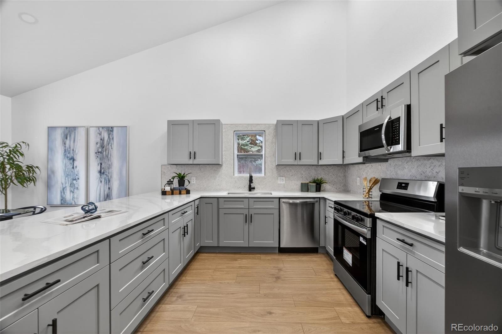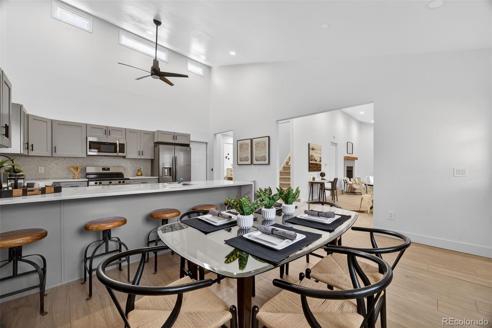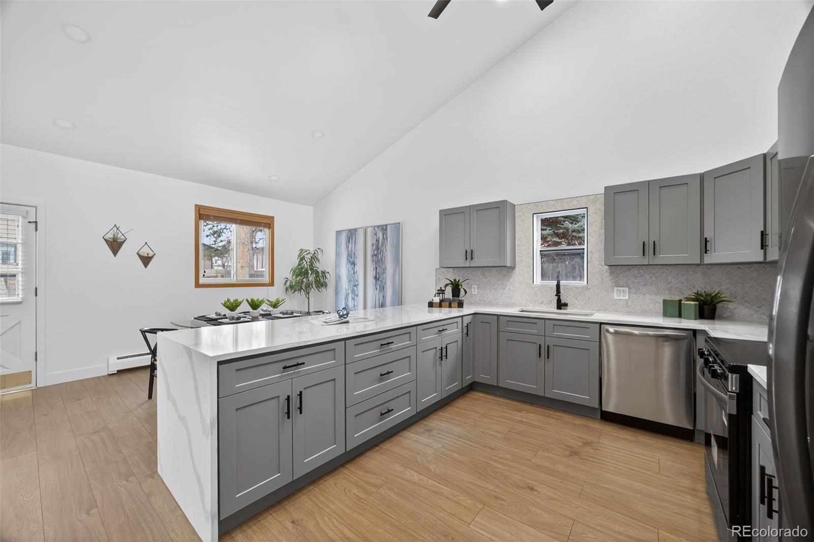 Welcome to 763 Dexter Dr, a fully updated Broomfield stunner that feels fresh modern and unforgettable from the moment you step inside. Thoughtful designer updates throughout the home create a fresh inviting atmosphere filled with style and personality. Step into soaring vaulted ceilings soft natural light and an open layout that makes the main level feel bright airy and full of life. The gorgeous fireplace becomes the centerpiece with its patterned tile and natural wood mantel setting the perfect tone for cozy evenings and stylish everyday living. The kitchen is where this home truly shines. Sleek grey cabinetry quartz countertops bold black fixtures and a large island make this space both functional and jaw dropping. The herringbone backsplash adds beautiful texture while stainless steel appliances and clerestory windows complete the elevated modern feel. Whether you love hosting or enjoying a slow morning this kitchen delivers. The primary suite offers a peaceful retreat with warm flooring a spacious layout and a beautifully updated ensuite featuring a double vanity marble countertop and a walk in shower wrapped in calming neutral tile. Every bathroom has been redesigned with modern vanities striking tile and matte black fixtures that tie the home together. With four bedrooms you have space for guests an office or whatever your lifestyle calls for. This home also features five new mini splits for efficient customized heating and cooling plus a new boiler for year round comfort. Outside the corner lot provides room to relax play or design your future outdoor oasis. Mature trees add charm while the low maintenance yard lets you enjoy more and work less. All of this sits in a prime Broomfield location close to parks trails schools restaurants and everything that makes this community so loved. Stylish updated and move in ready this home blends comfort with true wow factor. Come experience the magic and fall in love the moment you walk through the door!