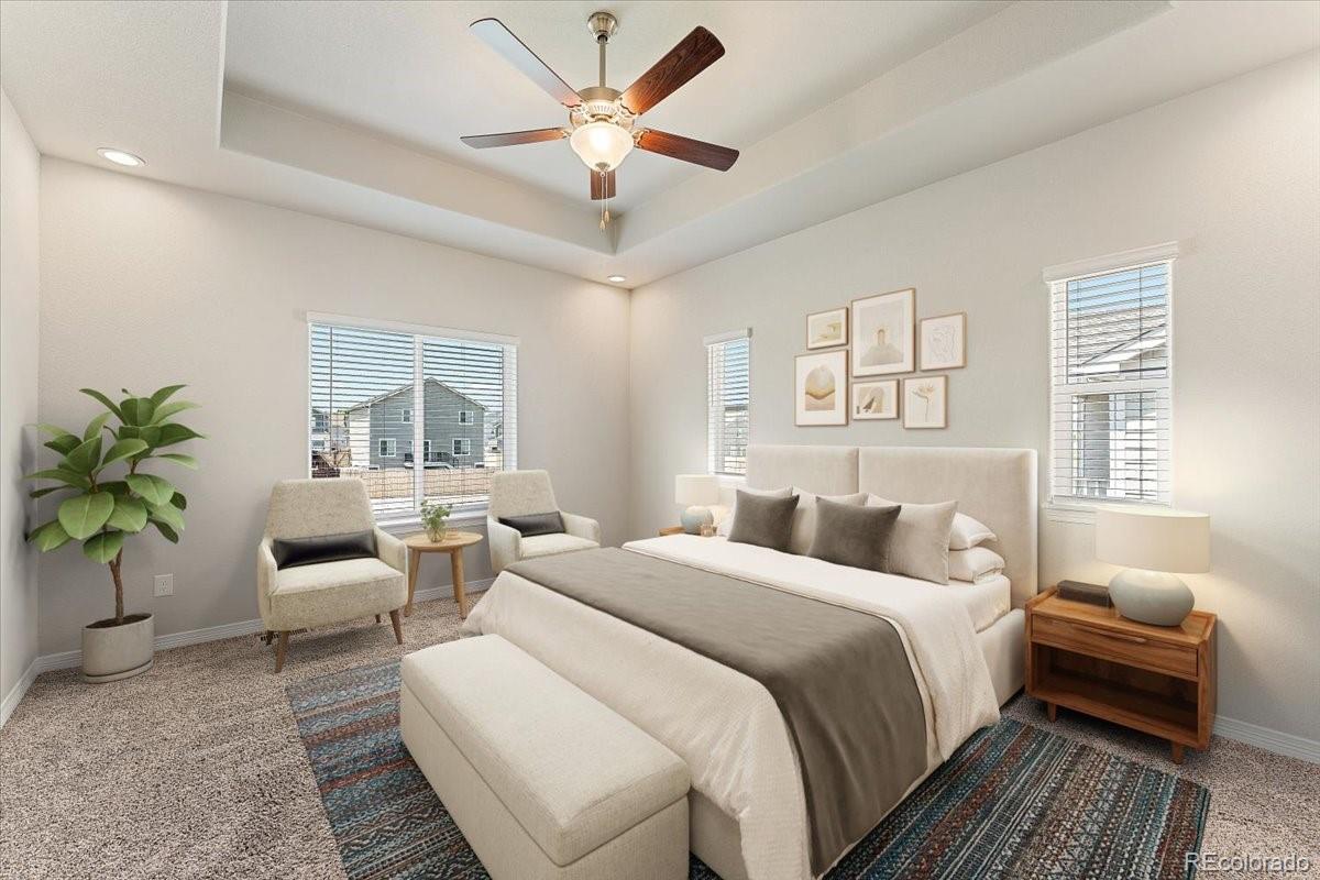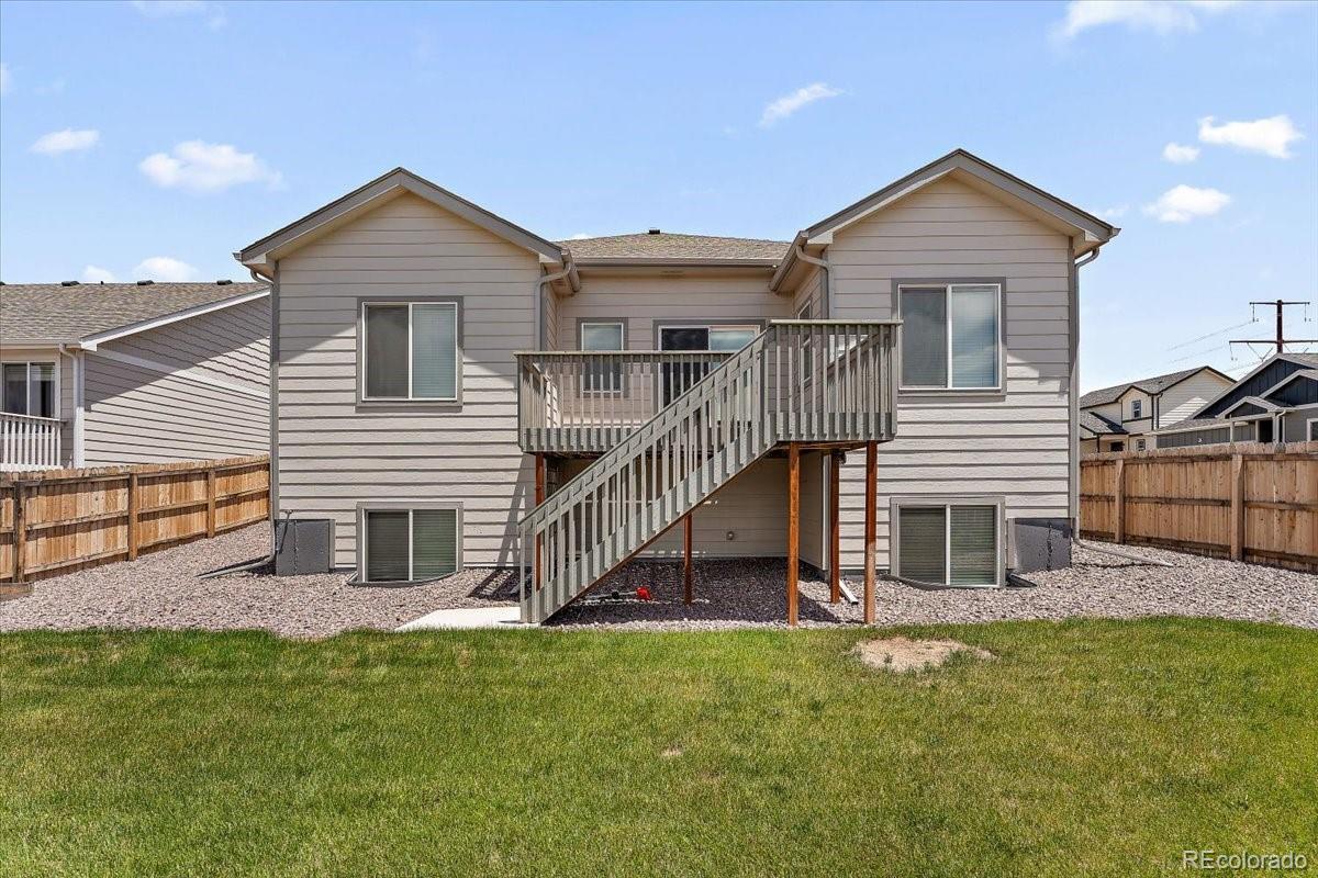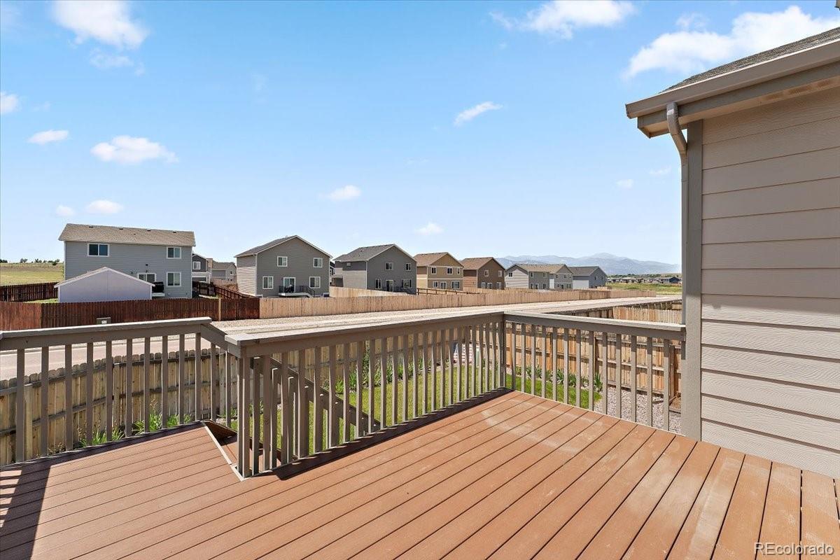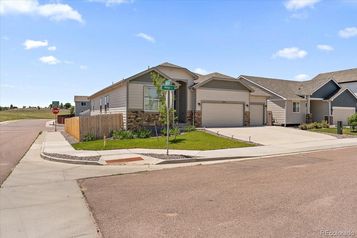 Spacious Ranch-Style Home with Dual Primary Suites and Mountain & Open Space Views! Welcome to this beautifully upgraded main-level-iiving floor plan with a full basement offering over 3,400 square feet of thoughtfully designed function and luxury. Perfectly situated on a premium corner lot open space adjacent to land that can never be built on, this home offers both privacy and breathtaking Mountain Views from the walk-out deck. Featuring 5 bedrooms and 4 bathrooms, including 2 luxurious primary suites—one on the main level and another on the lower level—each complete with spacious bathrooms and oversized closets, this layout is ideal for multigenerational living or long-term guests. Inside, enjoy the warmth of wood laminate flooring, upgraded kitchen cabinetry, and an open-concept living room that seamlessly connects to a formal dining area that can easily double as a home office or flex space. Downstairs, the full garden-level basement is flooded with natural light and includes additional bedrooms, living space, and a second primary suite making it feel like a second home within a home. Additional highlights include: 3-car garage-Large lower level storage area-New roof to be installed prior to closing-25 year structural warranty-10 year landscaping warranty-Easy commute to Fort Carson-Schriever, and Peterson. Don’t miss your chance to own this versatile and value-packed home.