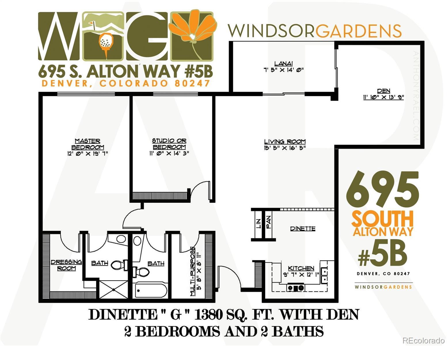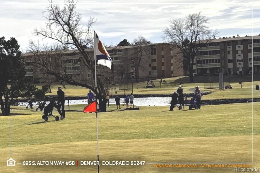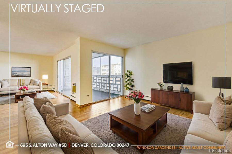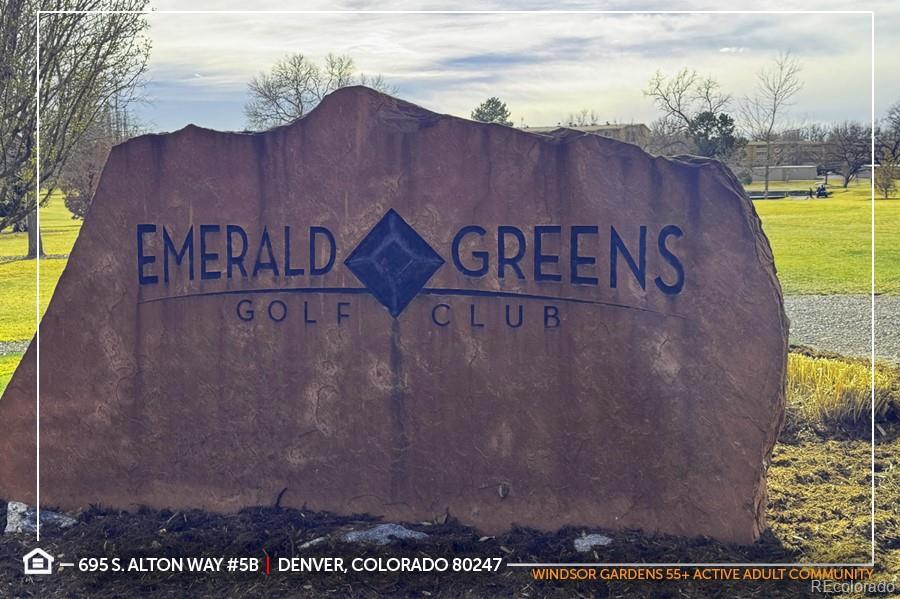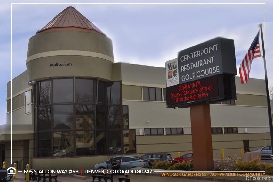 Exceptional Opportunity in Windsor Gardens, a safe & quiet age-restricted (55+) Active Adult Community for empty-nesters seeking an active lifestyle without the hassle of home maintenance! “G” Floorplan features a 1,380 sqft 2 bed | 2 bath Condo featuring Bonus Room / Den which can flex as additional living room, craft room, office or non-conforming bedroom if needed. Enjoy the open-concept floorplan with kitchen featuring an abundance of floor-to-ceiling cabinetry and all appliances are included. Laminate Wood flooring adorns the living room, bonus room, hallways and bedroom #2. Oversized primary bedroom has newer carpet, huge walk-in closet + ¾ ensuite bathroom with walk-in shower. Bedroom #2 is spacious with newer carpet. Both bathrooms have tile flooring and grab bars for additional safety. Both bedrooms & great room are air-conditioned for added comfort. Enjoy coffee or entertaining guests on your sun-filled screened-in Lanai which offers plenty of natural sunlight throughout the day with two sliding glass doors! Storage galore! This unit offers a walk-in storage room that could be used as a workshop + multiple hallway closets + bonus locked storage closet in the community laundry room conveniently located directly across the hall. Desirable End Unit features a single common/shared wall and unbeatable central location with easy access to the elevator, laundry room as well as dual staircases for quick access to your Detached Garage. Amenities include a 9-Hole Par-3 Emerald Greens Golf Course; Indoor & Outdoor Swimming Pools; On-site Restaurant; Fitness Center; Community Center with classrooms, auditorium, library, crafting, game & meeting rooms. Take a stroll along the scenic High Line Canal, a popular spot for nature lovers, hikers and cyclists or enjoy the six-acre nature preserve. RV/Boat storage also available. Short commute to Lowry, Cherry Creek Shopping Center, DIA or Downtown Denver to catch a sporting event, concert or Broadway show. See this one today!