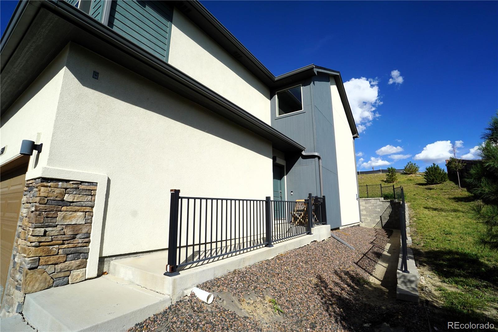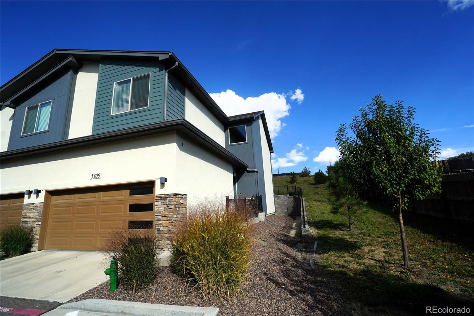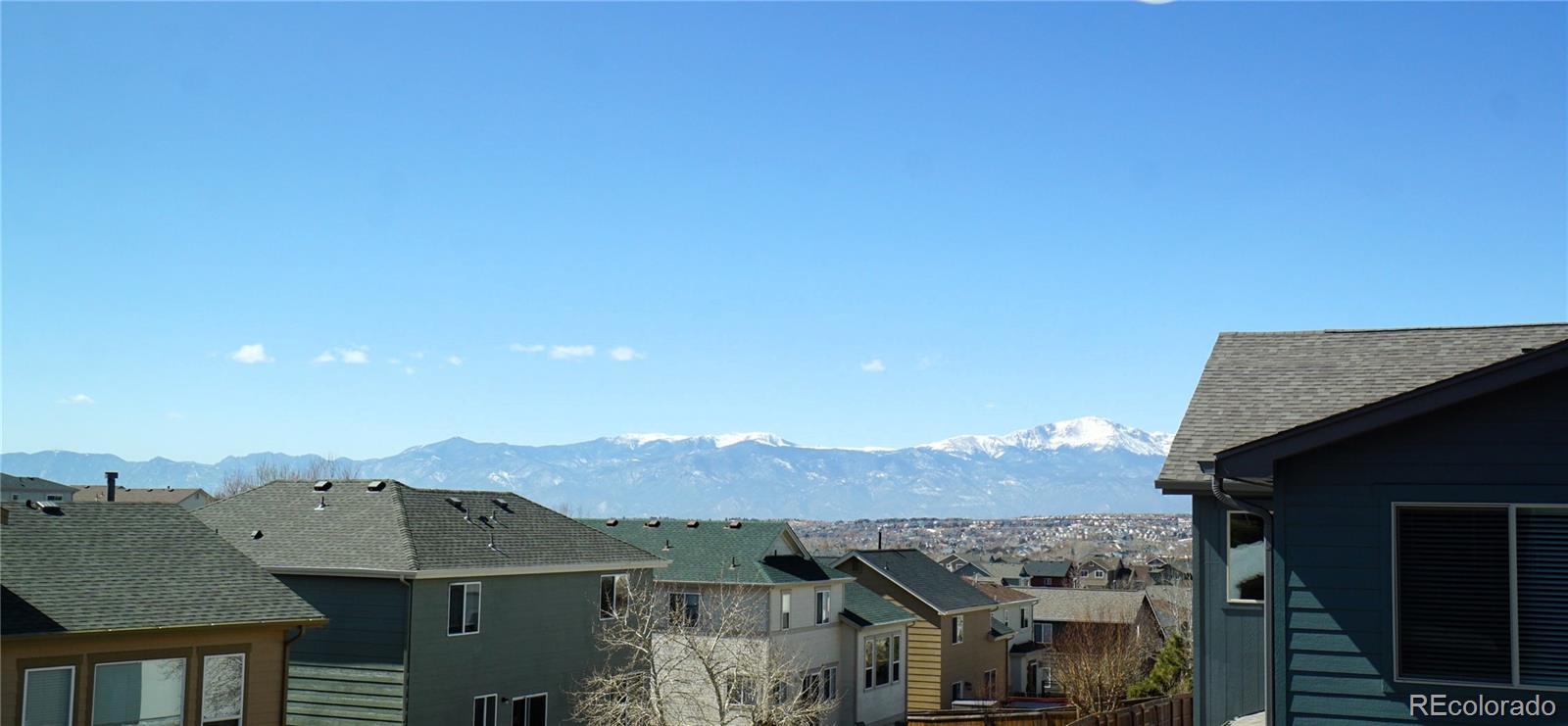 Welcome to the desired Sub-area of East Side landing in District 49! This End Unit Townhome offers three bedrooms, three bathrooms and a two-car garage with plenty of privacy. You can feel the meticulous care this owner has taken as soon as you walk in the door. Main level offers an open concept with wood flooring throughout and plenty of natural light. Upgraded Kitchen with large island, granite countertops with beautiful tile backsplash. Enjoy your gas fireplace for the upcoming winter and your air conditioner in the hot summers. If you're looking for the feeling of a brand-new townhome look no further! The oversized primary bedroom offers Pikes Peak and Rocky Mountain views, a walk-in closet, double vanity sinks with granite countertop and a walk-in shower with seating. Your laundry room is conveniently located on the upper level with all the other bedrooms. Large loft area when going upstairs to design how you see fit! Great location near powers, shopping, Peterson AFB and much more. Come view this immaculate home for yourself or your family it will not disappoint!