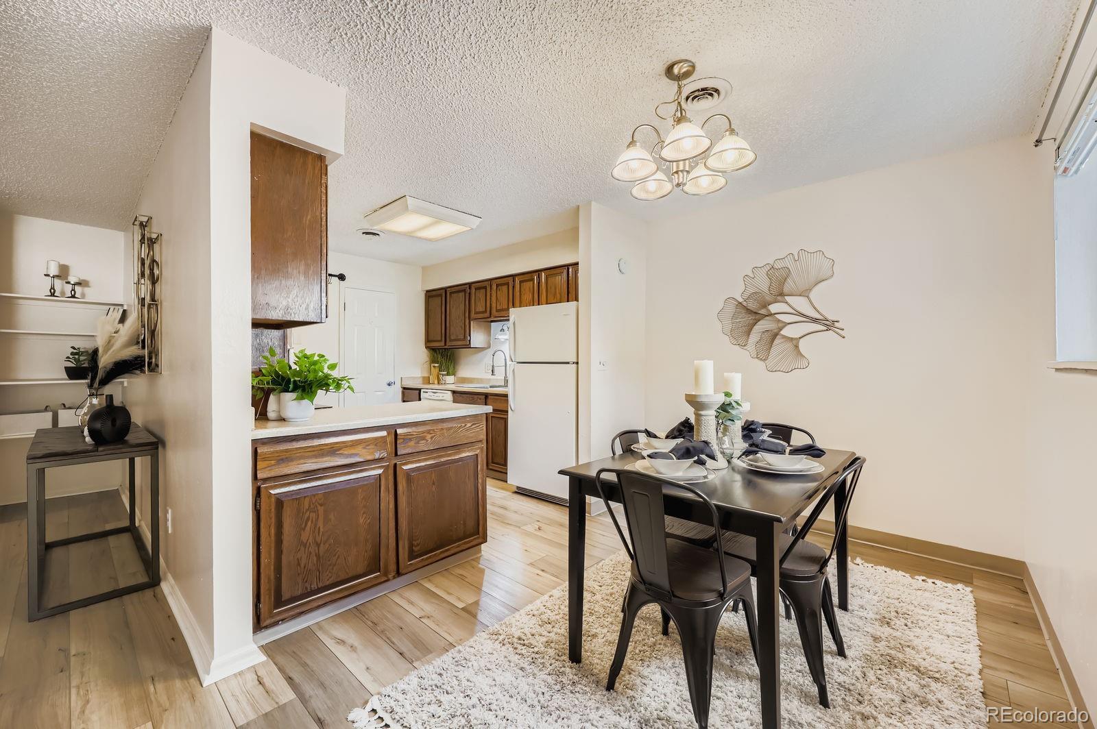 Welcome home to your new 2 Bed, 2 Bath Condo featuring brand new windows, LVP in the living room, kitchen and dining room and privacy & exceptional Amenities in the highly sought after D20! This 2-bedroom, 2-bath condo offers comfort, convenience, and endless potential. The open floor plan boasts generous room sizes, including an open concept living room and a true primary suite with private en-suite bath for ultimate privacy. The primary suite includes a spacious bath with a separate vanity area. The second bedroom and a nearby bath is just down the hall; perfect for an office, guests or roommates. The kitchen features abundant counter space, a large closet-style pantry, and exciting possibilities for customization and updates. The dedicated dining area connects the kitchen and living room seamlessly. Relax by the wood burning fireplace in the living room or step out onto your private covered back patio and take in views of mature trees, blue skies, and the tennis/pickleball court in the distance. (You will often see deer out there!) Enjoy the convenience of in-unit laundry (washer and dryer included), and a covered carport just steps from the secure building entrance. Community amenities include: Low-maintenance living with Clubhouse,Indoor pool, hot tub, & dry sauna, Newly Restored tennis/pickleball court(s). All this just minutes from hiking, biking, shopping, and dining. Come fall in love!