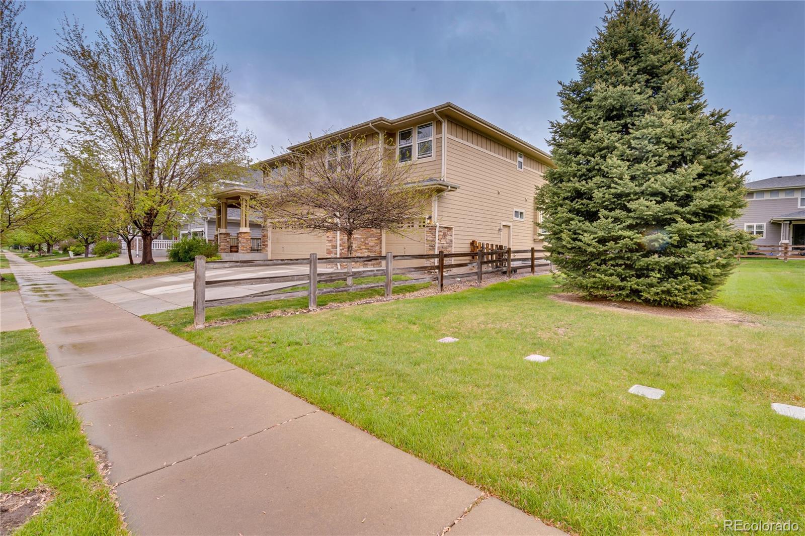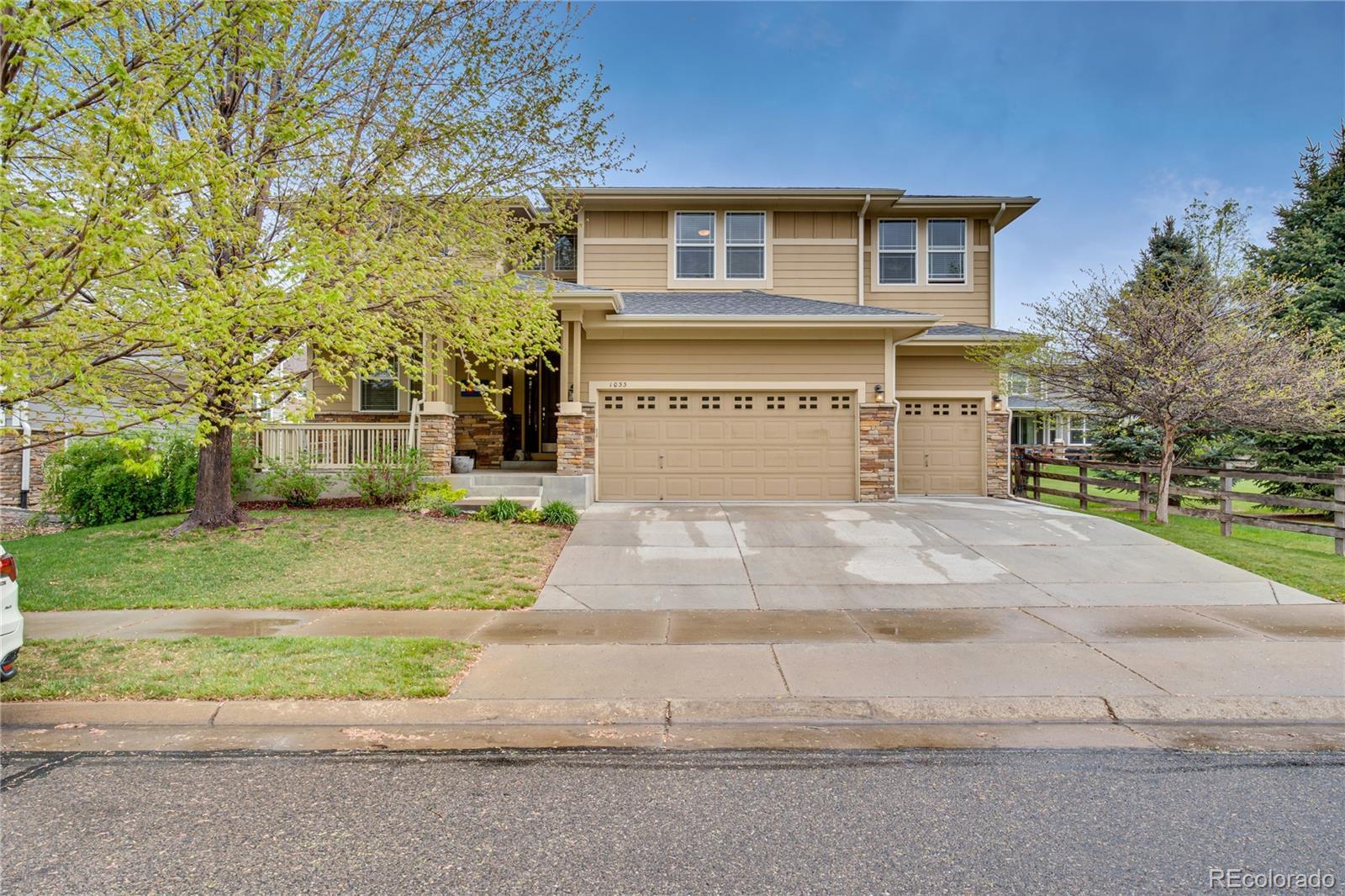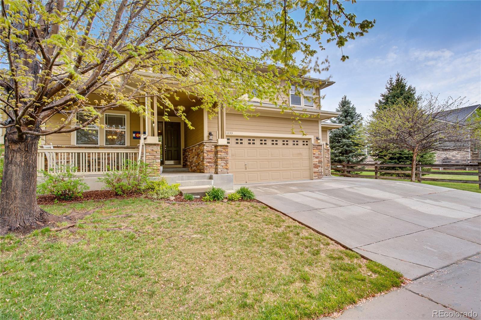 Welcome home to 1033 Petras Street in the sought after Erie Commons neighborhood! This home is the “Pike Model”, the largest Erie Commons home, built by reputable builder, Taylor Morrison. Be welcomed by a large covered patio and step into the elegant walnut floors greeting you at the front door beneath the soaring ceilings above. On the main level you find several living spaces for both formal and casual living. The stand-alone dining room and adjacent den will welcome guests, while the open kitchen and living room space (with a cozy gas fire place) will accommodate everyday living. The well-appointed kitchen boasts stainless steel appliances, an island for food prep covered with slab quartz countertops, ample cabinet space, and walk-in pantry. The first floor also has a 5th bedroom or use as an office/workout space, a full bathroom, laundry area that steps in the spacious three car garage. The second story has a fabulous loft-like hallway that serves as entry point to each of the four bedrooms, featuring the spacious primary bedroom with its own “owner’s retreat” area and enormous 5-piece private bath with soaking tub, shower, and walk-in closet, and double vanity sinks. Bonus second primary upstairs as well! The large premium unfinished basement was dug out for 10 foot ceilings and is ready for storage and future renovation. The backyard is a private fenced oasis with a large concrete patio for entertaining. Systems are solid: new roof in 2024, AC unit plus attic fan will keep you cool in the summer and the new furnace (2024) will keep you toasty in winter. The grassy lot next door is owned by the city, will never be built on, and functions as a second backyard maintained by the HOA. Walk to the nearby parks, community pool, and endless trails out your doorstep; stroll to Erie restaurants and rec center; drive your golf cart to nearby premiere Colorado National Golf Course.