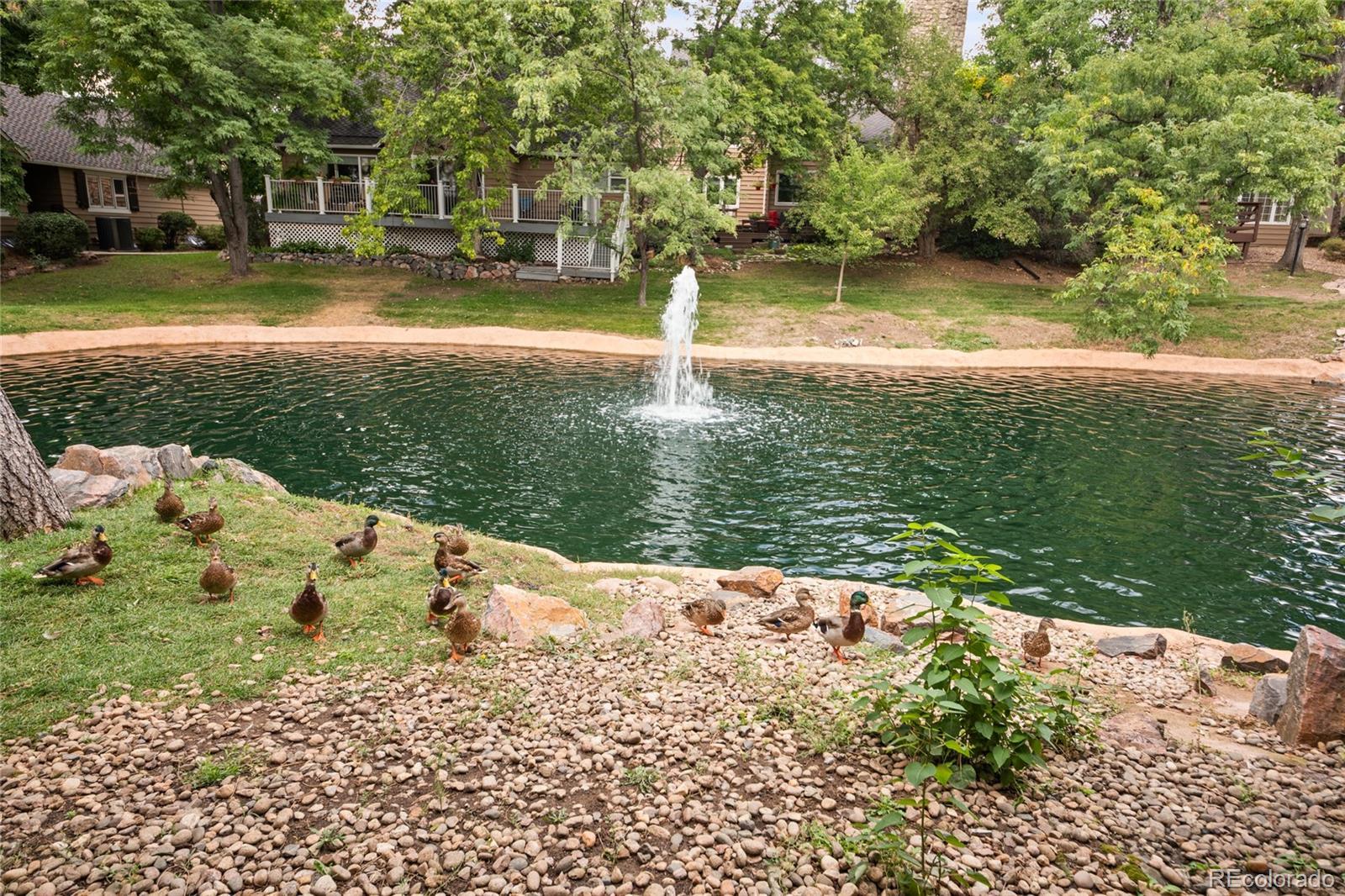 This meticulously maintained corner unit townhome is now available in the prestigious Stoney Brook! Stoney Brook is a gem in the heart of DTC, and this corner patio unit is a rare opportunity. This home has 2 bedrooms, 3 bathrooms- is light and bright with an open floor plan, vaulted ceilings, newer paint, and plenty of sunlight! The main level Master Suite is spacious with an ensuite bathroom, dual sinks and standing vanity with two large professional closets. The sliding doors in the master suite allow for morning sunshine from the balcony. The kitchen is newly remodeled with granite counter tops and beautiful backsplash. Tons of cabinet space and a breakfast bar make entertaining an ease. Newly remodeled formal dining room opens to the living space and is perfect for entertainment. Relax in the living room next to the gas fireplace or make your way outside to the deck and enjoy the beautiful pond and park-like environment. The private deck offers a space of tranquility and is one of the best views in the neighborhood. Gas hook up for easy BBQing is ready to go. Downstairs you will find the second bedroom with a patio walk out and ensuite full bath. Owner uses this as an office and enjoys the views and feeding the local ducks while working! The lower level also has a great room that can serve as a second living suite, theater, gym- the options are endless. The unfinished portion of the basement offers ample storage with cabinets, shelving, closet space and a pantry. The 2-car garage is oversized, and guest parking is conveniently located adjacent to the unit. The Stoney Brook community offers a wonderful clubhouse, fitness room, pool, hot tub, tennis courts, pickle ball, and various social activities with friendly neighbors. This home is in a very accessible location near I-25, I-225, DTC, Cherry Creek High School, nearby parks including Wallace Park and Cherry Creek State Park, as well as many local restaurants and shopping