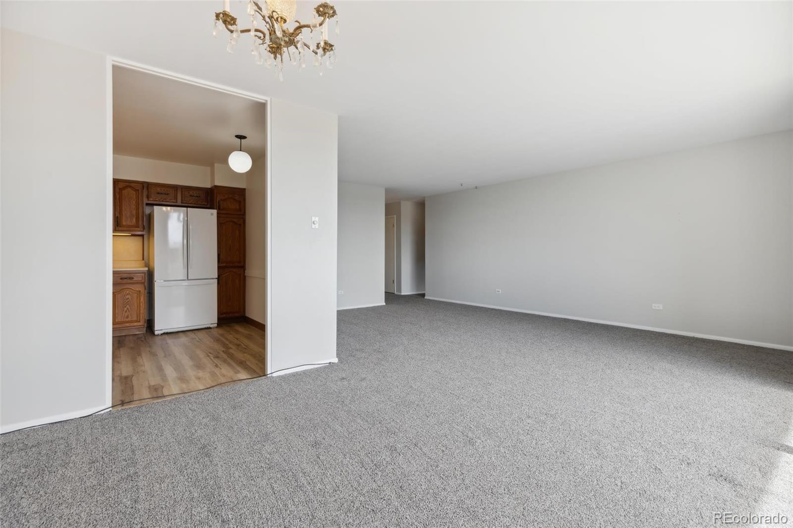 Classic Luxury Condo located in desirable University Hills neighborhood. Impeccably maintained building inside and out. Security entrance with onsite building manager daily. Move-In ready with new carpet, luxury vynal kitchen floor and a fresh coat of paint. New wall A/C unit installed 2022 and serviced 2025 (see supplements section). Don't miss walk-in closet in primary bedroom. Both bedrooms have sliding glass doors to Rocky Mountain views from your private 280 sq. ft. balcony. Private under ground parking space and storage. Location, location, location is the key to modern living and this Condo is in a perfect part of Denver with easy walkable access to shopping at U-Hills including Sprouts, King Soopers and even a local Starbucks. The amenities include outdoor pool, work out room, game room with pool table and shuffle board and last but not least the rooftop patio that you can entertain your family and friends. Take a look an you will be pleased with the 2 bedroom 2 bathroom condo for first time home buyers or for downsizing buyers. Price reduction you can't afford to miss this one. Best price for 2 bedroom in La Fontana. On site manager maintains this property in excellent condition.