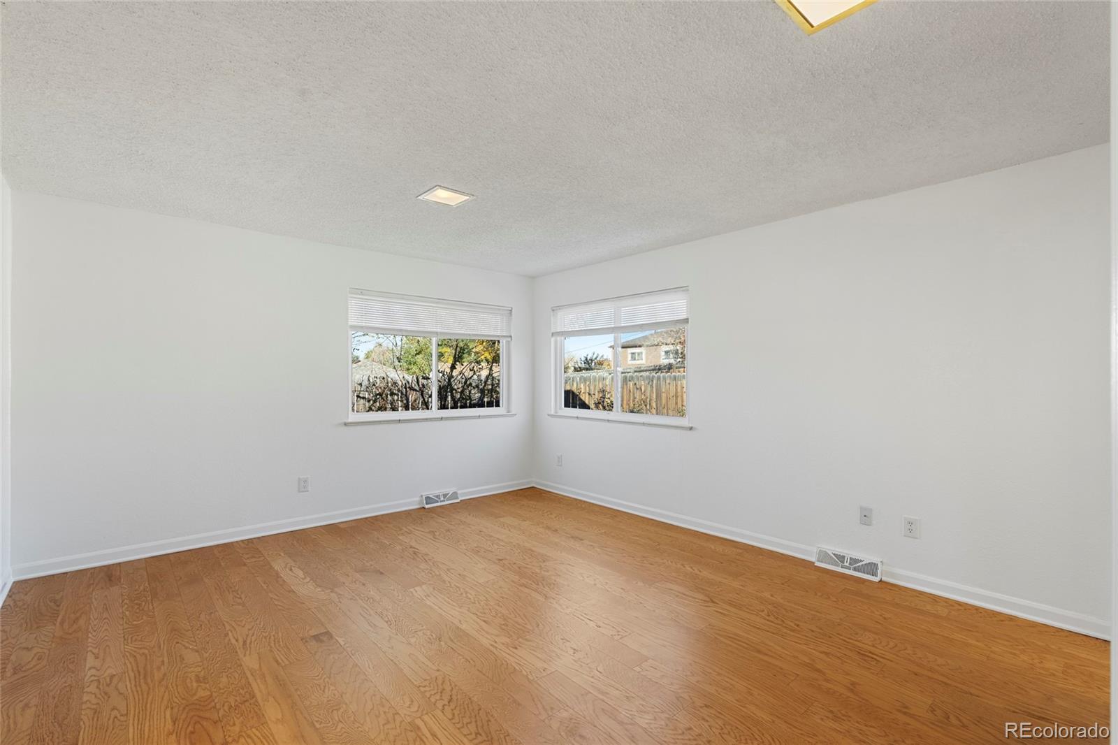 Welcome home to this beautifully updated property featuring James Hardie siding and a new roof for lasting durability and peace of mind. Enjoy solar panels that help offset your Xcel Energy bill, making this home both eco-friendly and cost-efficient. Inside, you’ll find fresh paint throughout, hardwood and tile flooring, and double-pane windows that bring in natural light while enhancing energy efficiency. The spacious laundry room comes equipped with a smart washer and dryer, and the primary bedroom offers a private ¾ bath ensuite with a new vanity. Two additional bedrooms provide plenty of flexibility for roommates, guests, or a home office. Outside, the xeriscaped front yard with decorative rock and a mature maple tree creates great curb appeal, while the fenced backyard is a gardener’s dream — complete with sprinklers, a garden area, blooming irises and roses, and a covered patio perfect for relaxing or entertaining. A one-car attached garage and new front door with an electronic lock complete this move-in-ready gem.