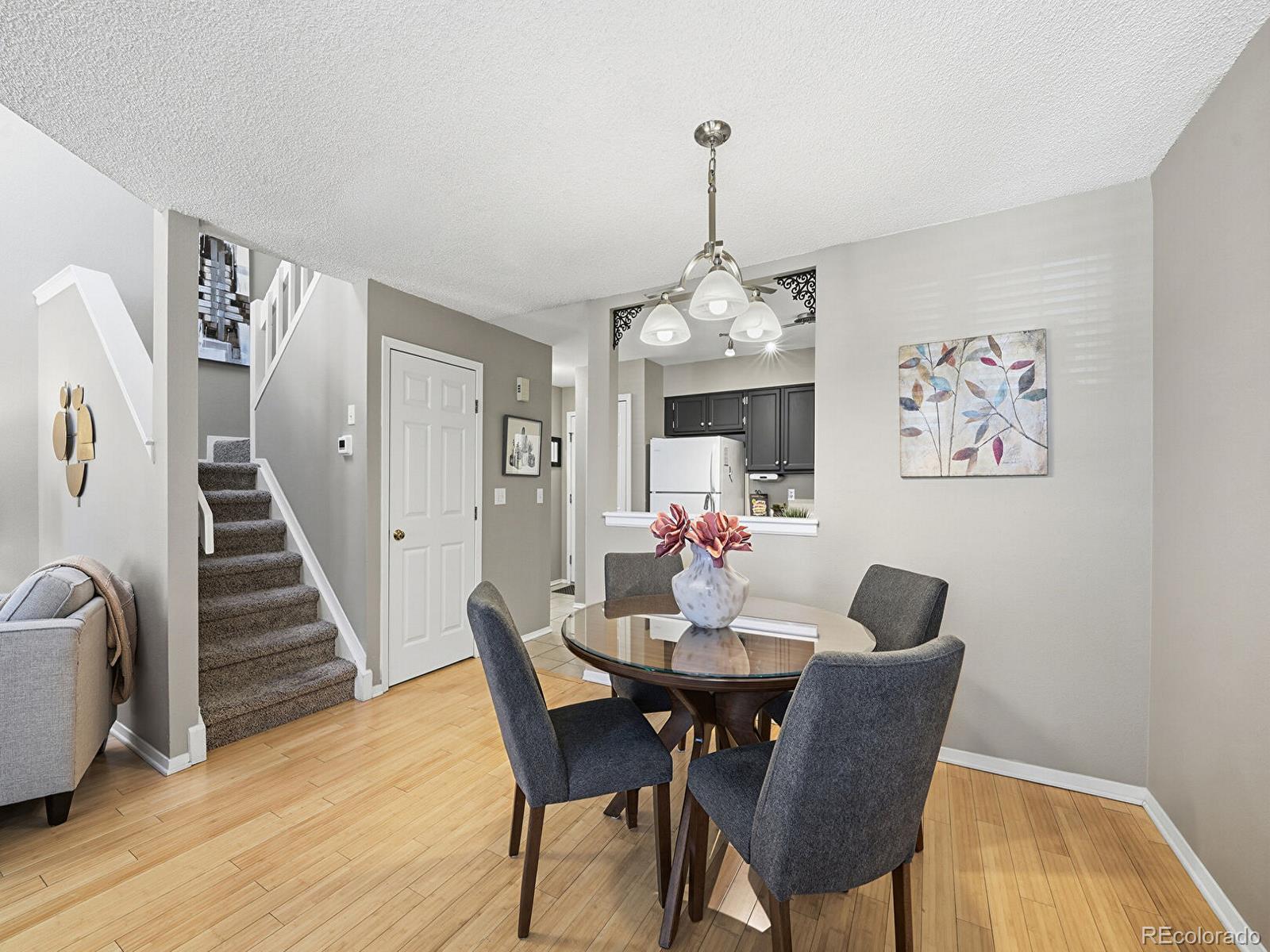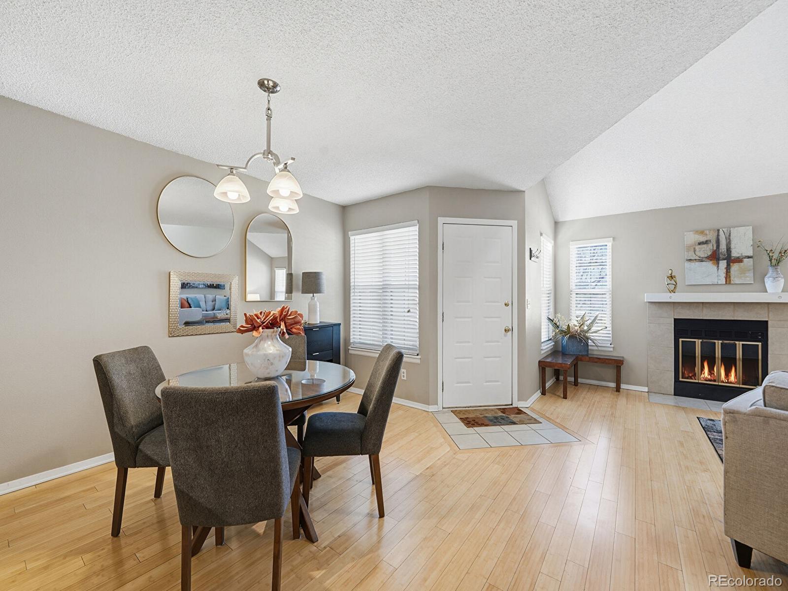 *OPEN HOUSE Saturday 2/28 12-2* Beautifully appointed 3-bedroom, 3-bath townhome with an attached garage and a fenced courtyard, ideally located in desirable Indian Creek! Step inside to a warm and inviting living room featuring soaring vaulted ceilings, rich bamboo floors, and a charming wood-burning fireplace that anchors the space. The open floor plan flows effortlessly into the kitchen, where dark cabinetry is complemented by light countertops and crisp white appliances. Adjacent to the kitchen, the dining area shines with a statement chandelier, perfect for everyday living or entertaining. The primary suite offers a comfortable retreat with plush carpet, dual closets, and a full en suite bath with a separate vanity. A secondary upstairs bedroom features a lovely bay window and its own en suite bath. Downstairs, a spacious basement rec room expands your living space, accompanied by a laundry room complete with a utility sink and workbench, ideal for projects and storage. A third nonconforming bedroom in the basement provides flexible space for guests, a home office, or hobby room! Enjoy a vibrant community setting with a sparkling pool and tennis courts. Exceptional access to outdoor recreation—just steps from Chennai Park and moments from the Cherry Creek Trail, Colorado Front Range Trail, Cook Park, Cook Park Recreation Center, Goldsmith Gulch, and Garland Park.
