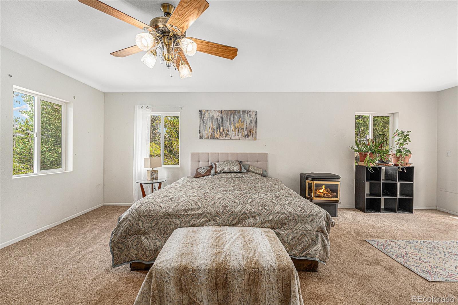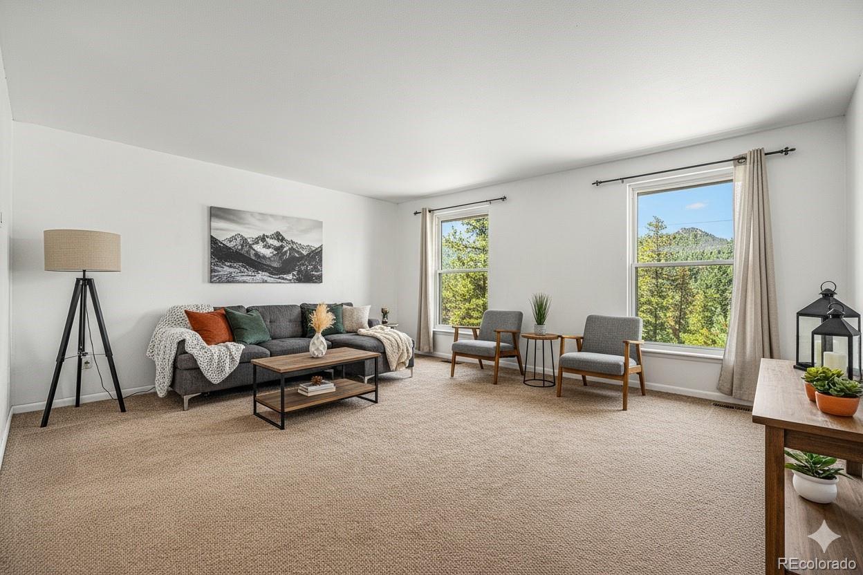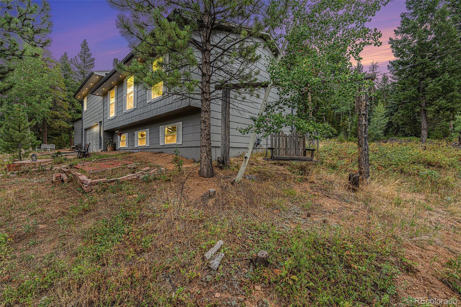 **Assumable Loan at an Ultra-Low 2.25% Interest Rate.** Experience privacy, space, and modern comfort with this 3-bedroom, 3-bathroom mountain home plus dedicated office—set on over 5 acres just off Highway 285 and only 30 minutes from Denver. Enjoy easy access to public parks, open space, and scenic trails while living in a true mountain retreat. The home features a spacious upper-level primary suite with a fully updated ensuite bathroom, complete with a jetted tub, separate shower, and dual sinks. French doors open to a private deck and hot tub, the perfect place to unwind. The main level offers two additional bedrooms, a fully remodeled full bath, a cozy family room with large picture windows, and an updated kitchen with modern finishes and functional layout. A wood-burning stove adds warmth and charm—ideal for staying comfortable during the winter months. The garden level includes a large bonus room that can serve as a second living area, game room, or workout space, along with a separate office and another recently remodeled bathroom. Additional features include an electric hookup for a generator (generator negotiable) and plenty of room for horses, outbuildings, or recreational use. A rare opportunity to own a move-in-ready mountain property with tasteful updates, outdoor access, and an assumable 2.25% interest rate, schedule your showing today!