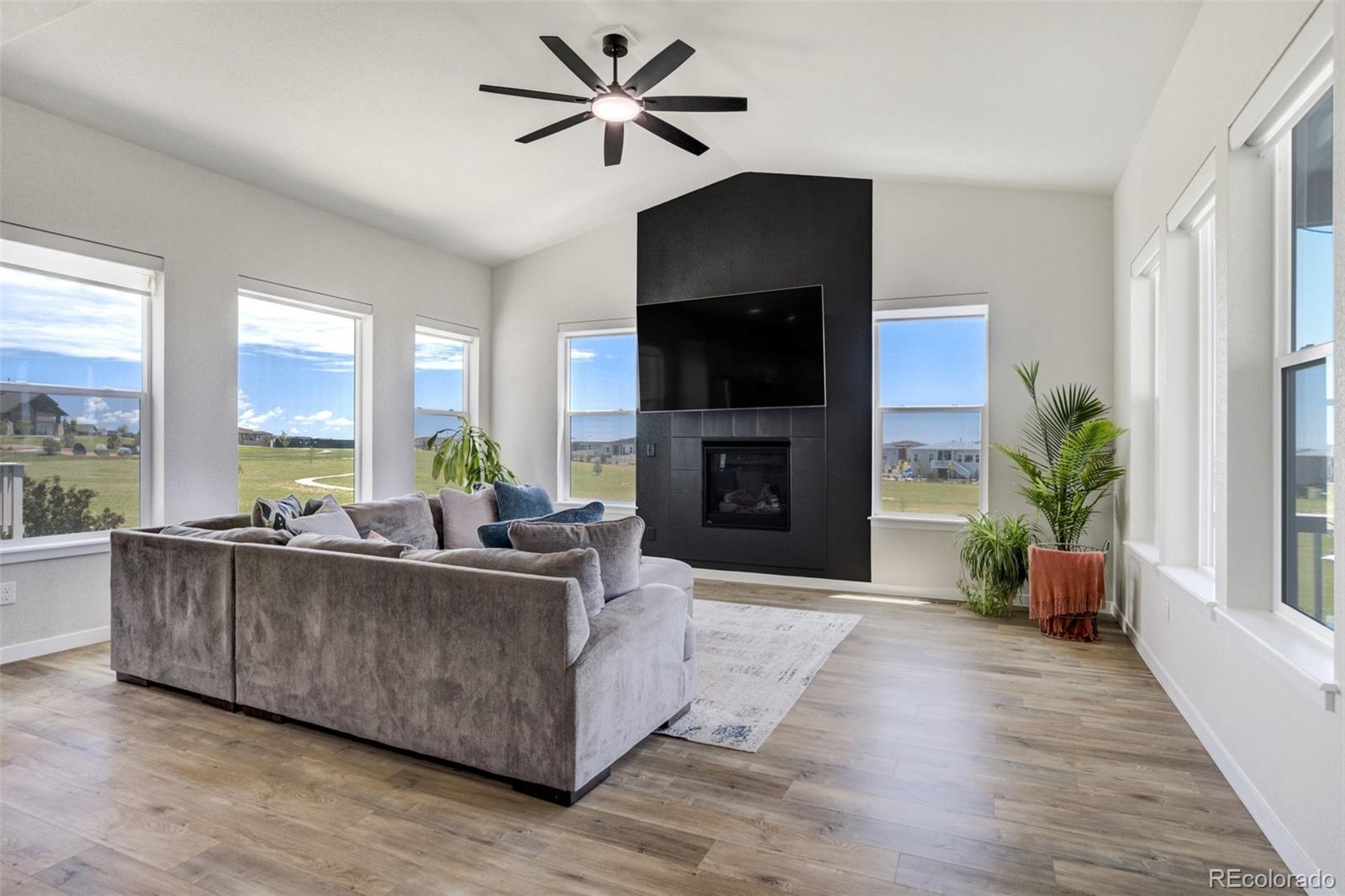 Welcome to your beautiful new home in the active lifestyle community of Meridian Ranch. This home features a large gourmet kitchen with a custom statement piece fireplace in the great room. A walkout deck is perfect for enjoying the view or outdoor cooking. Upstairs, the large master suite has double doors, a spa worthy bathroom and walk in closet. Three additional bedrooms and full bath, a loft and laundry complete the upper level. The walkout basement boasts an additional rec room, bedroom and full bath. This home backs to open space with a walking trail leading to the Antlers Creek golf course. This highly desired master planned community features restaurants, shops, golf, and a 42,000-square-foot Meridian Rec Center with indoor and outdoor pools, a full-size gymnasium for basketball and volleyball, cardio and weight training areas, group exercise studio and childcare center. The 215-acre park comes complete with baseball fields, trails, picnic pavilions, sport courts, and a dog park. Additionally, this home is located in Stonebridge which allows access to the private lodge for residents to enjoy movie night, host a party, play pool, ping pong, air hockey, or enjoy the craft room and additional gym. Coming soon to Meridian Ranch is the brand new Field House which will feature a turf field and an additional workout area, a group exercise studio with an outdoor turf attachment, a childcare center, and a walking track suspended above the indoor turf field. Conveniently located 13 miles from Peterson SFB, 16 miles from The Airforce Academy, and 26 miles to Fort Carson! Come enjoy the lifestyle this beautiful home has to offer!