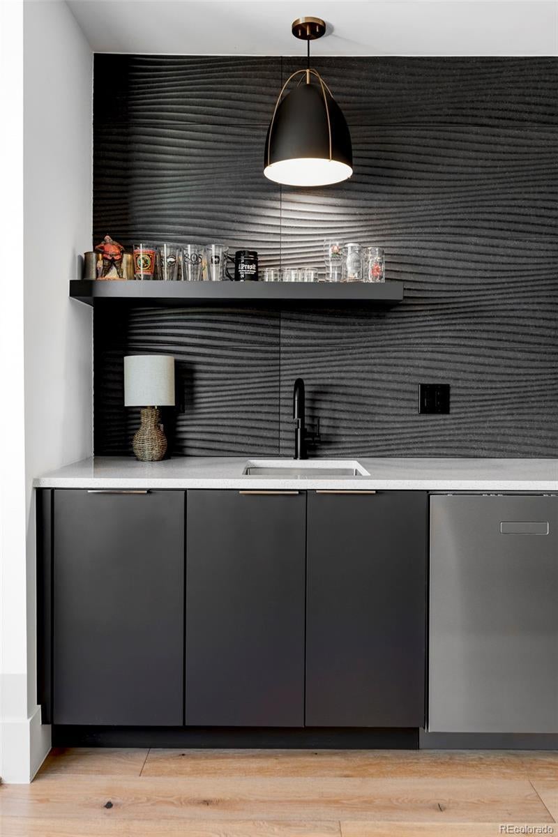 Welcome to this newly built 4-bedroom, 5-bathroom luxury duplex ideally located in the heart of Cherry Creek North, offering sophisticated modern design and elevated finishes throughout. A striking contemporary exterior and inviting front patio set the tone for refined urban living. The main level opens to an open-concept floorplan highlighted by a formal dining area with exposed wooden beams, creating warmth and architectural interest. The chef’s kitchen is equipped with high-end appliances and an expansive center island, seamlessly connecting to the living area. Anchored by a modern fireplace, the living space features a dramatic wall of glass that opens to a private covered patio complete with a pergola and built-in grill, delivering an effortless indoor-outdoor experience. Upstairs, the primary suite serves as a luxurious retreat with its own fireplace and a spa-worthy bathroom featuring a wet room. Two additional bedrooms are complemented by a versatile loft space with vaulted ceilings and a wet bar, offering direct access to a rooftop deck with a fire pit, ideal for entertaining or relaxing under the Colorado sky. The finished basement expands the home’s functionality with a wine room, wet bar, and a spacious recreation area designed for hosting and leisure. A two-car garage adds convenience, while the home’s location just moments from Cranmer Park and Cherry Creek Shopping Center places premier dining, shopping, and outdoor amenities within easy reach.