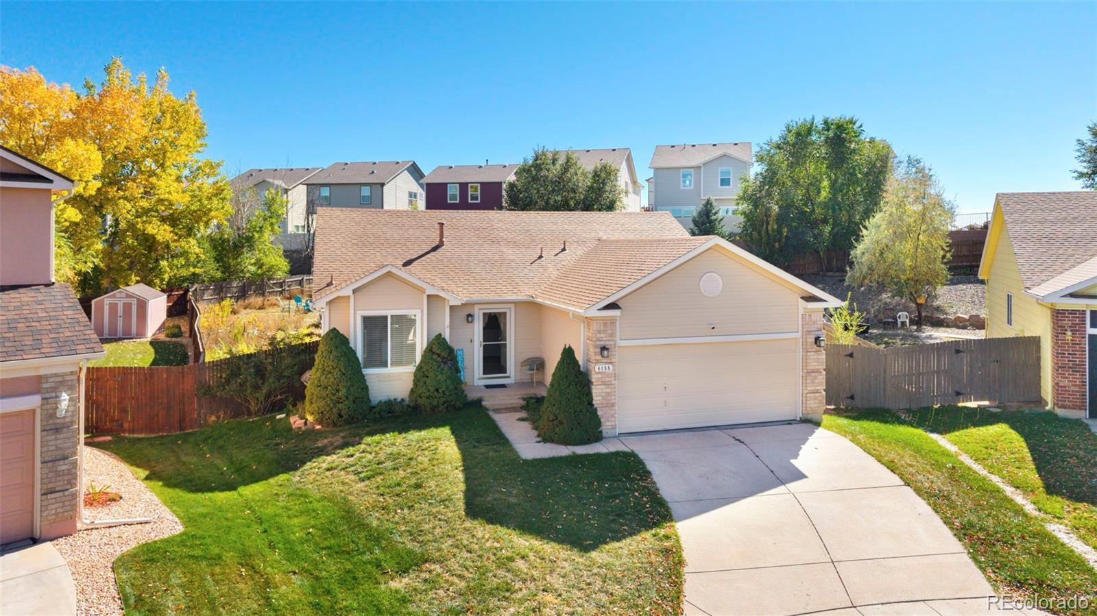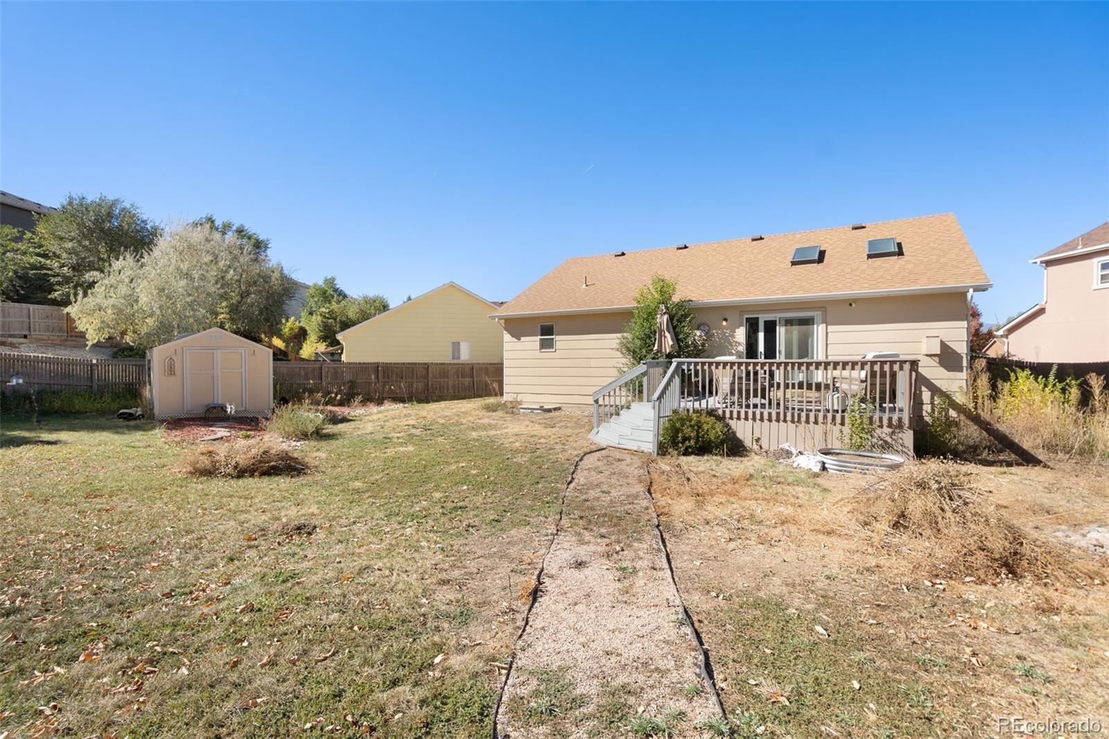 Welcome to Crestline Heights! This inviting ranch-style home with a finished basement offers both comfort and potential, nestled on a spacious 0.30-acre lot in a quiet cul-de-sac. The main level features an open great room with 2 skylights that fills the space with natural light and provides a seamless walkout to the back deck—perfect for relaxing or entertaining. The kitchen comes complete with all appliances and newly installed granite countertops, adding a touch of modern elegance. Three bedrooms are conveniently located on the main floor, offering easy main-level living. The finished basement expands your living space with a large game room or family room, a fourth bedroom, and an additional full bathroom. A dedicated laundry area and a storage room—which could easily be converted into a fifth bedroom or hobby space—add to the home’s versatility. Recent updates include a new roof (2021) and a new furnace (2024), giving peace of mind for years to come. Located between Peterson Air Force Base and Fort Carson, this home offers excellent access to shopping, dining, and commuting routes. With some TLC inside and out, this property is priced to sell and ready for your personal touch!