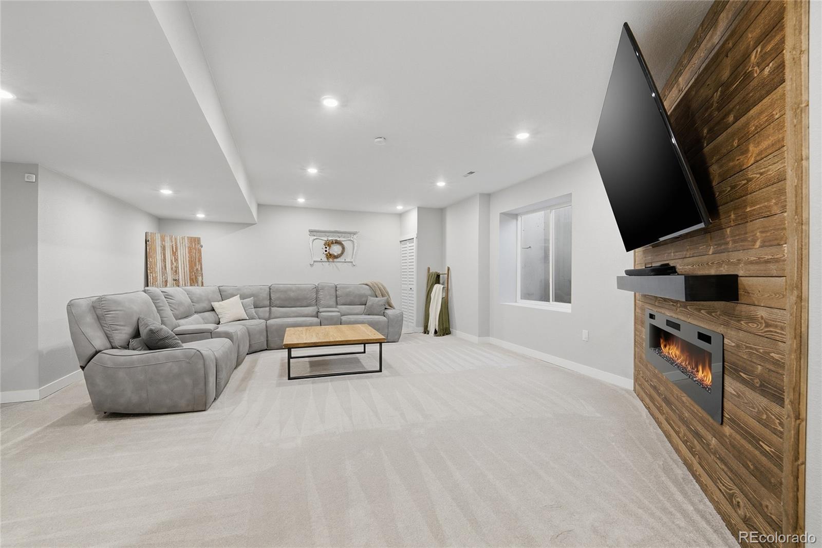 Welcome home to this spacious home on an oversized corner lot in coveted Barefoot Lakes! Spanning a massive 5,169 total square feet, this residence offers ample space for entertainment and large families alike! This home is perched on a quite cut-de-sac just steps away from the lakes, parks and trails. With its thoughtfully designed layout, modern features, and variety of amenities, this property offers a perfect blend of serene suburban lifestyle and top-tier outdoor recreation! As you enter, you are greeted by a spacious foyer which flows into the expansive kitchen and family area! You will find endless modern features including recessed LED lighting, stunning tile fireplace, a massive kitchen island, integrated gas range, and much more! The spacious primary suit and attached 5 piece bathroom will provide a sense of privacy and luxury every time you enter! Downstairs you will find a massive recreation area; bring your pool table, foosball table, pingpong table, and still room to spare! Around the corner you will find an additional bedroom and bathroom complete with custom tile and a luxurious steam shower! Ready to wind down for the night? Grab a cocktail at the wet bar and head down the hall to your private theater area! Step outside to discover a beautifully landscaped backyard equipped with an oversized concrete patio and barbecue area, perfect for summer gatherings and outdoor living. The property also includes a large shed and covered storage area.
