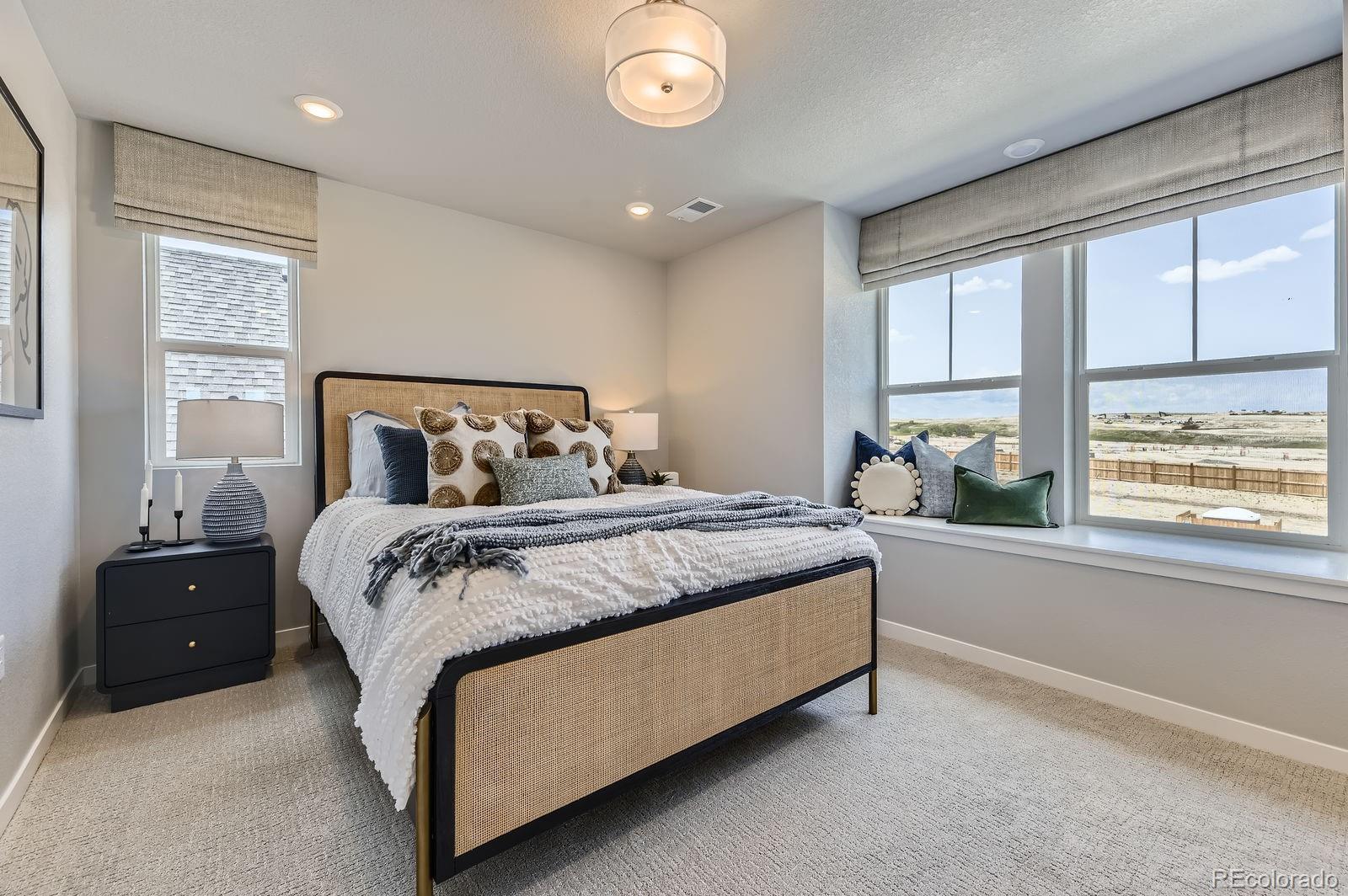 Brand new MOVE-IN READY home with MAIN LEVEL OWNER'S SUITE on corner homesite in cul-de-sac! Welcome to the Frontier - a thoughtfully designed two-story home that perfectly balances style, comfort, and functionality. Located in the highly desirable Looking Glass community in Parker, this brand-new home offers everything today’s buyers are looking for. Step inside to a bright, open-concept great room with contemporary gas fireplace that’s perfect for gatherings with family and friends. The main level owner’s suite provides a private retreat while three additional bedrooms and a spacious loft upstairs offer flexibility for work, guests, or play. The chef-inspired gourmet kitchen is the true heart of the home, featuring a large center island, stunning 42" dark gray cabinetry with soft close doors/drawers and plenty of storage, quartz countertops, and Whirlpool stainless steel appliances including a 36" gas cooktop with hood, double oven, and built-in microwave. This home is designed for modern living with 9' ceilings throughout the main level and energy-efficient features such as a tankless water heater. Outside, embrace the vibrant community life and all that Parker has to offer. Looking Glass offers an array of amenities for residents to enjoy. Don't miss out on the opportunity to make this amazing home yours! Schedule a showing today. * Please note that the interior photos provided are the 'Frontier' model home, and not the actual home.