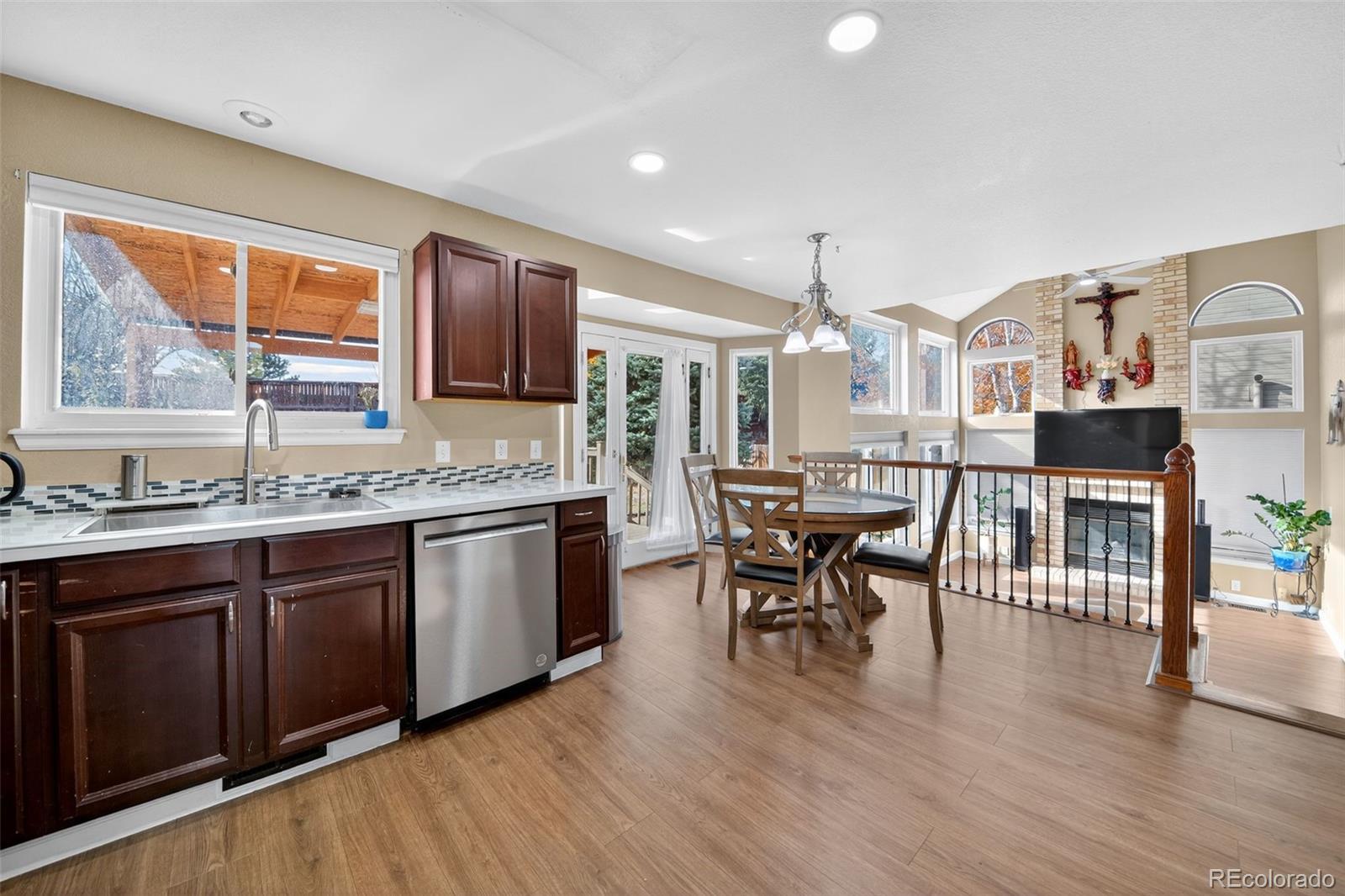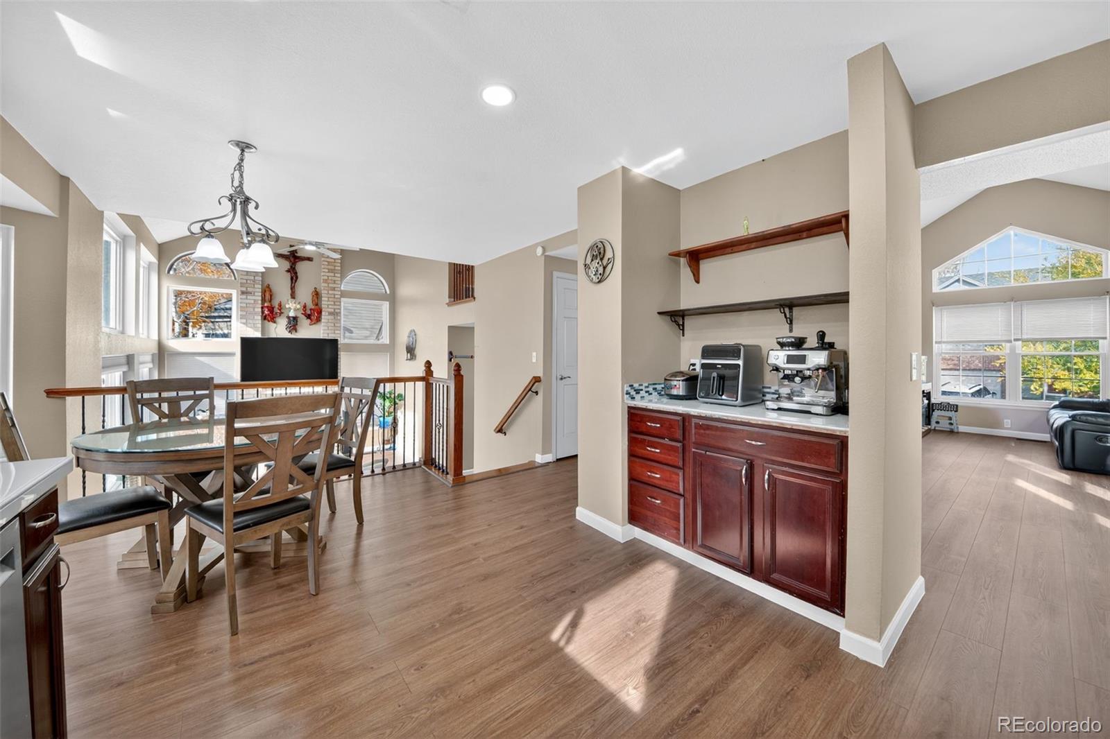 Welcome to this beautifully updated Littleton home! Perfectly located near Broadway, County Line, and C-470 for quick access to shops, dining, the foothills, and the metro area. This spacious home offers an open layout with vaulted ceilings, abundant natural light, and multiple living areas. Updates include newer carpet, rich hardwood floors, and fresh front and back landscaping—ready for move-in! The primary suite features southern light, a walk-in closet, and a luxurious 5-piece bath. Two additional bedrooms are upstairs, and the finished basement includes two more bedrooms and a flex space—ideal for an office, gym, or guest suite. Enjoy the open kitchen with an eat-in area and access to a pergola-covered deck overlooking the landscaped yard and garden. The cozy family room features a fireplace and floor-to-ceiling windows. With newer windows and a paid-in-full solar system that offsets most electric costs, this 5-bedroom, 4-bath home is a true gem in a fantastic neighborhood