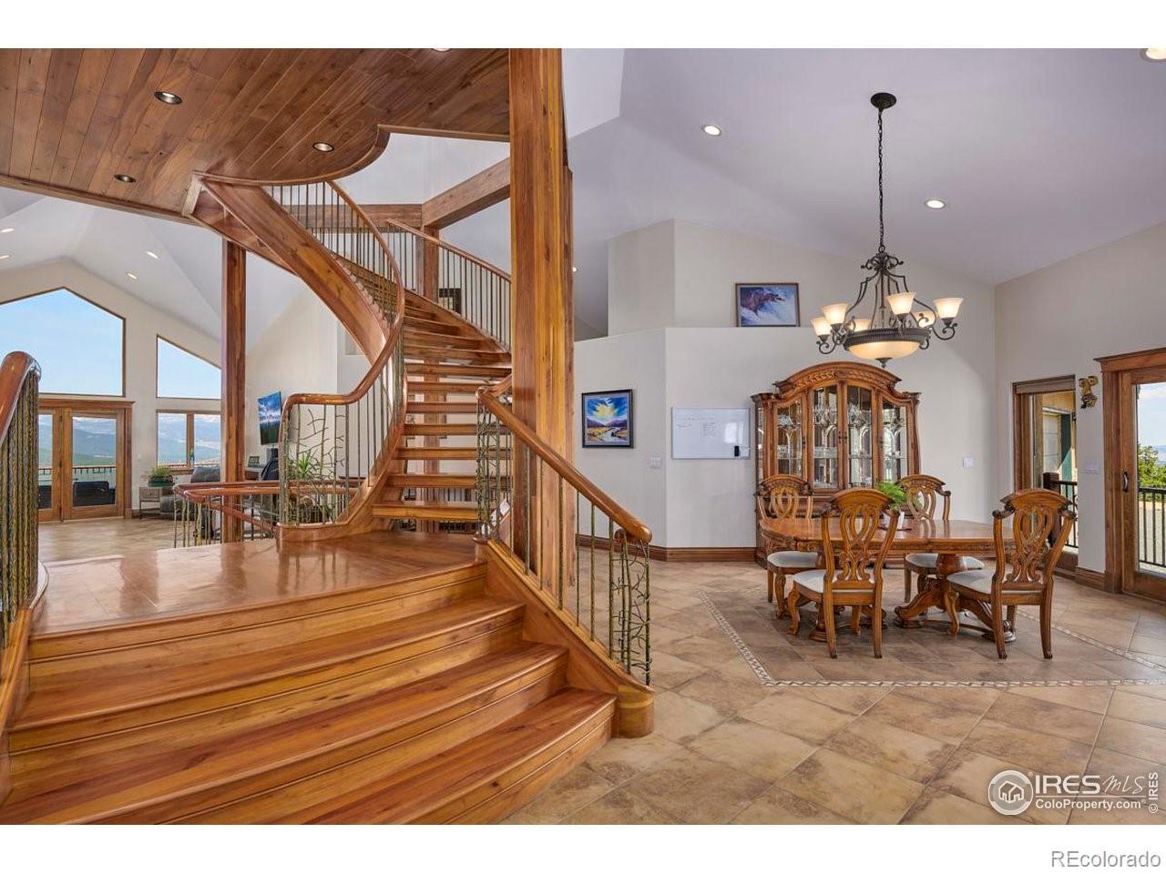 Welcome to the best seat in the house along the entire Peak to Peak corridor. This one-of-a-kind 6,000+ square foot home delivers jaw-dropping, soul-stirring, stop-you-in-your-tracks views of the Continental Divide. Set on 40 acres of pure mountain magic, it offers the kind of privacy that's rare to find and even harder to leave. Out here, you're not just watching the sky. It feels close enough to touch. And when the sun dips behind the divide, the night rolls in with velvet skies so dark and clear it feels like the universe is putting on a private show. Inside, a sweeping staircase makes a show-stopping first impression, curving up to a light-filled rotunda that's ideal for an artist's studio, a dreamy office, or your personal star-gazing retreat. The main level features a wide open layout with kitchen, dining, and living areas that all frame the views. The primary suite is spacious and peaceful, complete with an en suite bath and walk-in closet. A second bedroom on this floor adds flexibility for guests or family. Downstairs, the walkout level includes two more bedrooms, a dedicated movie room, a generous game room, and a bar area ready for entertaining. Step outside and you're greeted with newly leveled, seeded land and a sleek patio made for sunset watching. The exterior showcases fresh stonework and stucco with thoughtful fire mitigation already in place. A wide recycled asphalt driveway leads to a heated three car garage with plenty of room for your Colorado gear. This beautifully constructed stucco home offers both elegance and peace of mind, with advanced fire mitigation systems and a brand new Class 4 roof. Enjoy exceptional privacy, refined luxury, and sweeping mountain views from this stunning hilltop retreat.