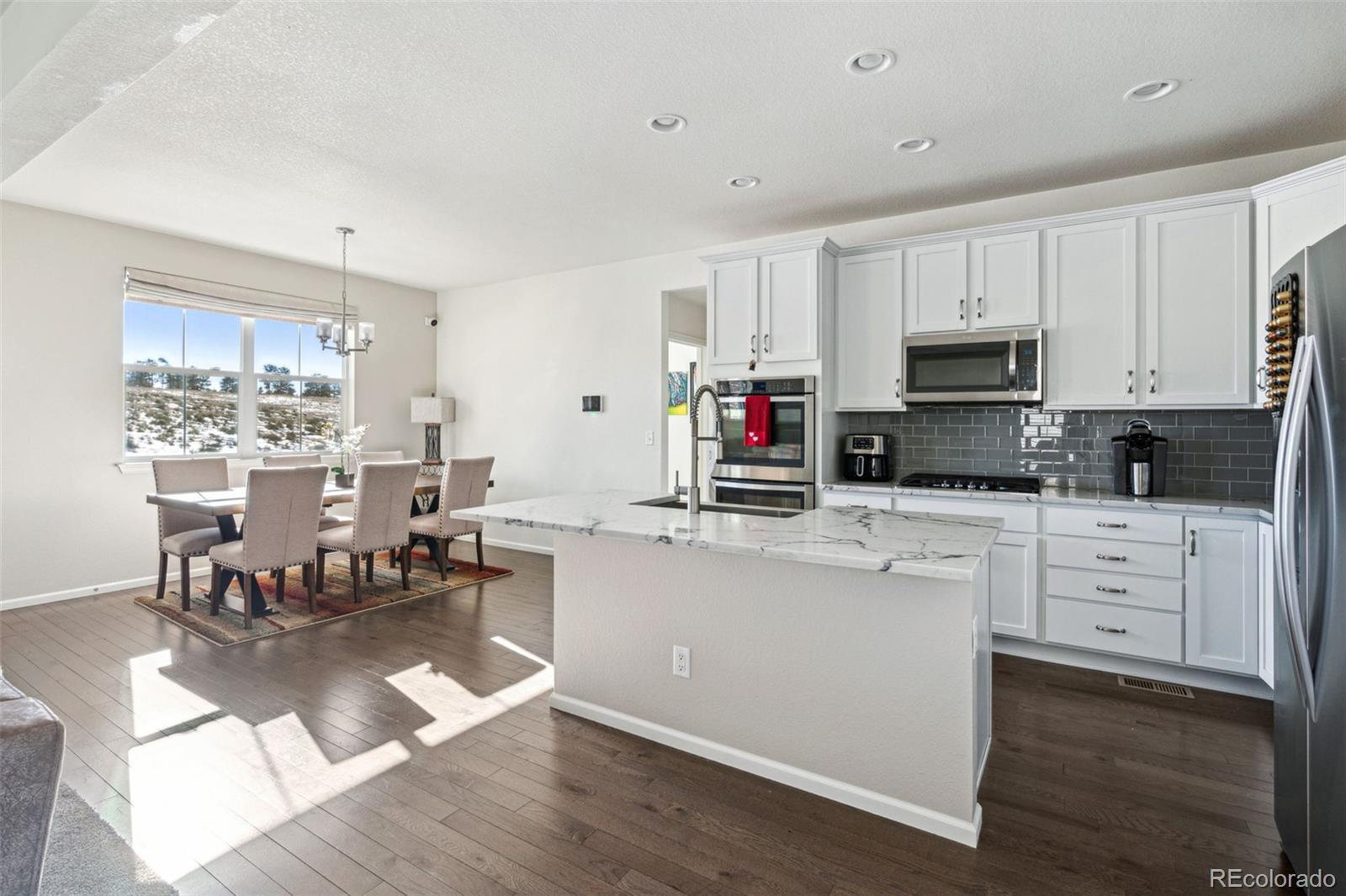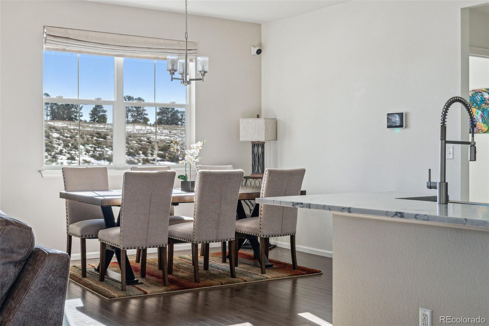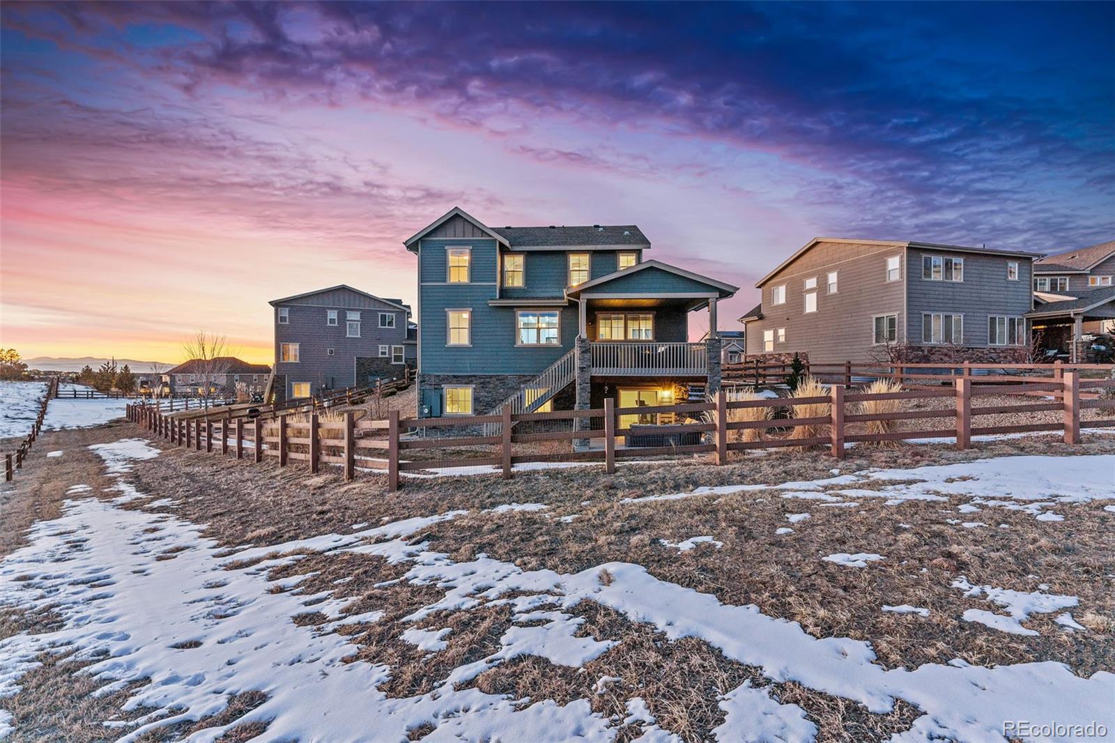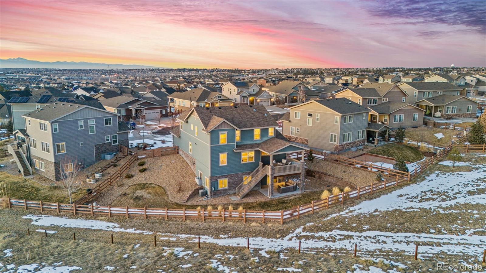 Welcome to your dream home in the Whispering Pines community! Nestled into a quiet cul-de-sac, this stunning five-bedroom, four-bath home offers breathtaking mountain views and backs to open space for added privacy. Everything you’ve been searching for is here, from high-end finishes and designer details to an inviting, open-concept layout for effortless entertaining. At the heart of the home is a chef’s kitchen featuring quartz countertops, stainless steel appliances, and abundant storage. A spacious, covered deck is the ideal spot to enjoy your morning coffee and the sunrise—and just off the finished, walkout basement is a covered patio where you can host summer BBQs. For respite, you’ll love the primary retreat with its own ensuite bath along with bedrooms and baths for guests, a home office, and more. Completing this home is a xeriscaped, quarter-acre lot and side-load, two-car garage with storage. Beyond home, there’s a community clubhouse and pool, plus parks and an extensive trail system. You’ll also enjoy easy access to Heritage Eagle Bend and Saddle Rock golf courses, shopping, dining, and E-470 for a quick commute. This home truly has it all, don’t miss out!