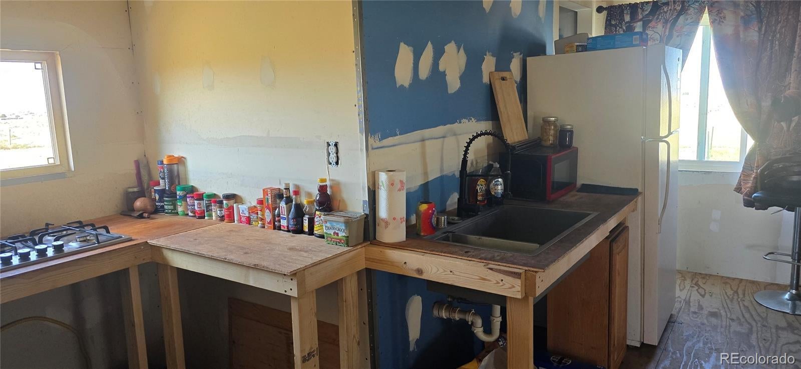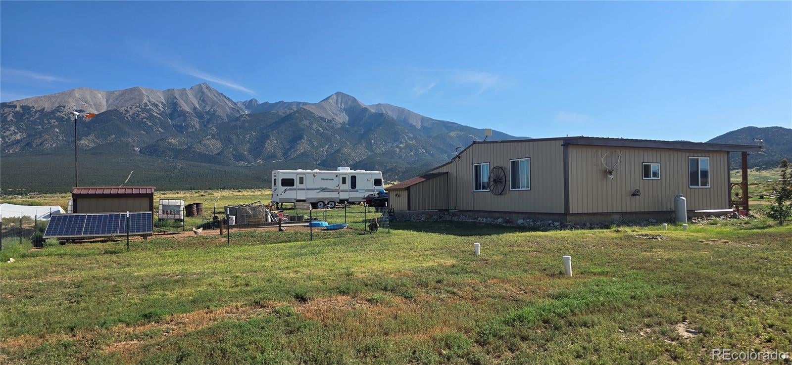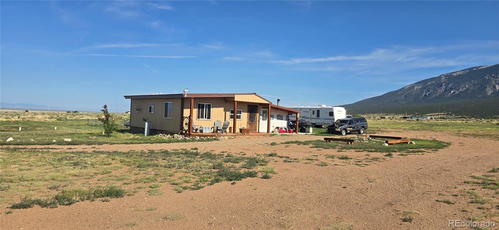 HUGE PRICE REDUCTION!! You can't beat the views!! Wake up to the breathtaking view of Mt. Blanca in this 1008 sq. ft. home waiting for your personal touch. This well-built house features 2 bedroom/bonus room, 1 bathroom, a living room with a unique bar area, and a minimalist kitchen. There's also an attached bonus room that can be the second bedroom or additional living space, along with an adjoining utility room. Relax and unwind on the covered front porch and enjoy the serenity and peacefulness of the valley. Additional outdoor features include a fenced chicken coop, a walk-in greenhouse built 7 feet into the ground for excellent stability, and a gated circular driveway with fencing along the road frontage. The current owner rents out space on the property for overnight dry camping guests at $30 per night, offering an opportunity for extra income. This home has incredible potential, with only a few finishing touches need. Call listing agent today to schedule a showing!