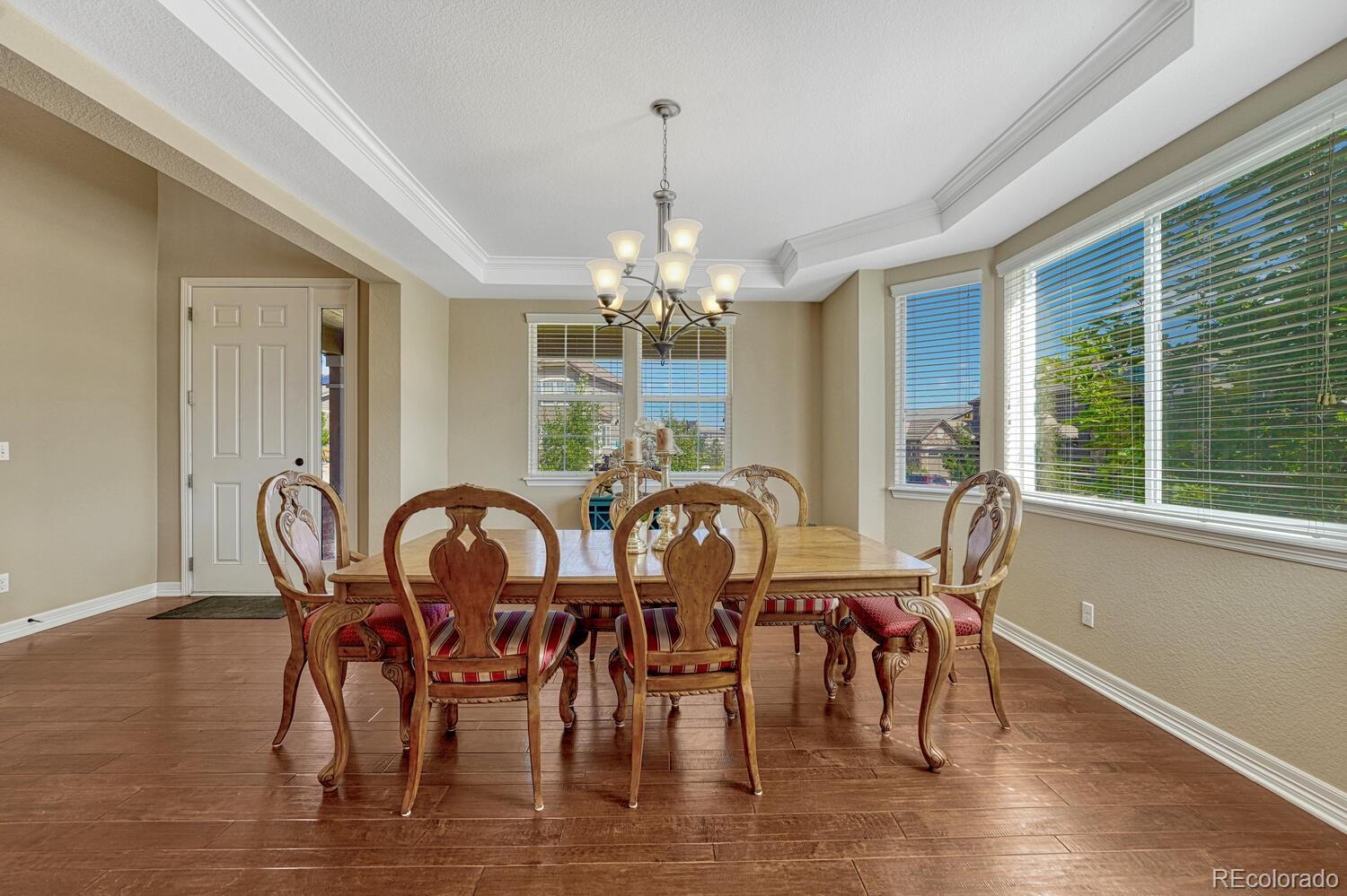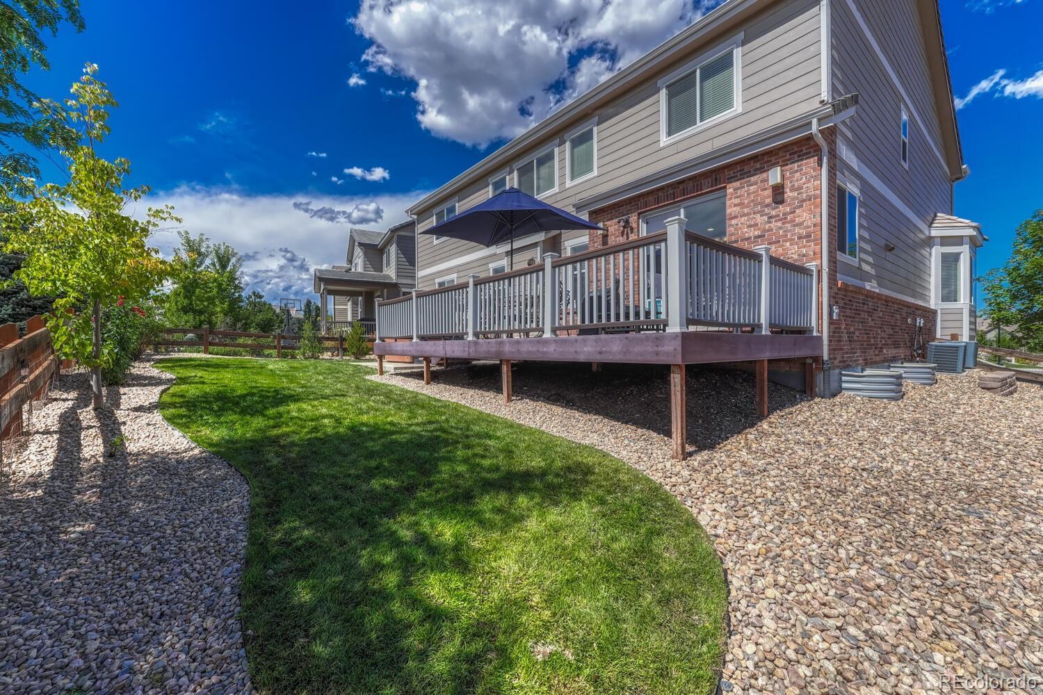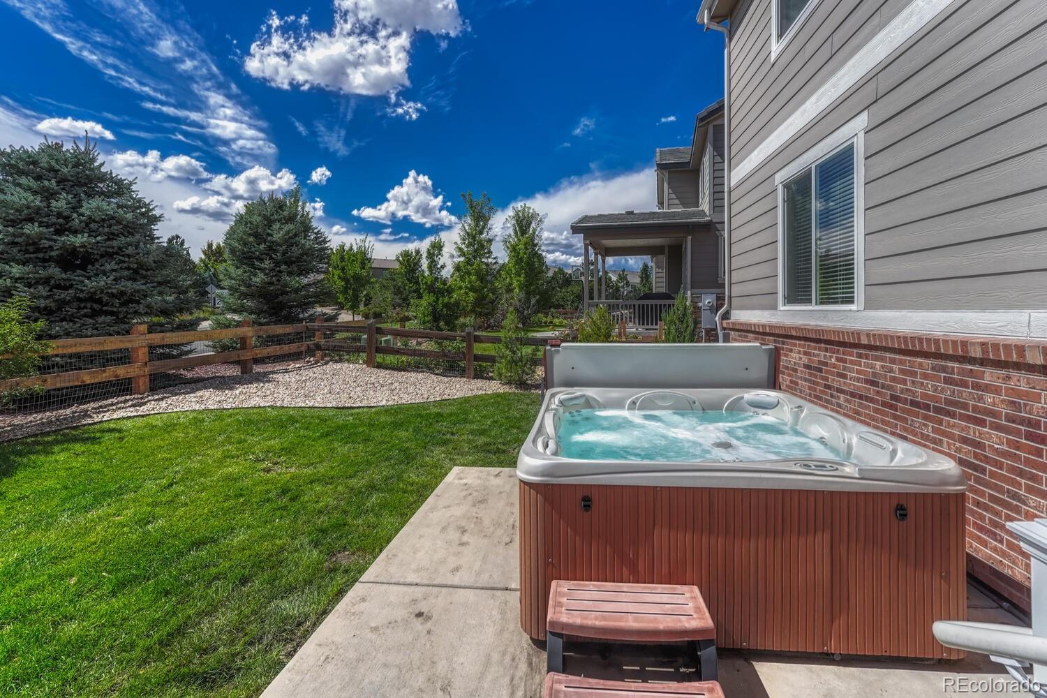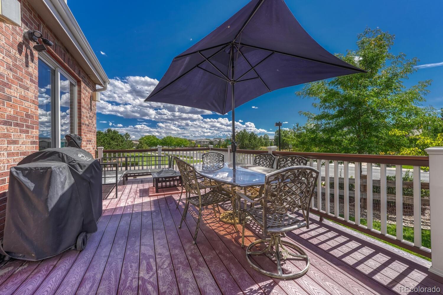 Step inside this beautifully updated 5-bed, 5-bath Richmond home on a corner lot in Meridian Village that is designed for both everyday comfort and memorable entertaining. The open main floor features a chef's kitchen with granite counters, double ovens, walk-in pantry, and a generous island that flows into the family room with a cozy fireplace for those snowy, Colorado evenings. A formal dining room and butler's pantry with wine cooler make hosting effortless. Upstairs, the spacious primary suite is a true retreat with coffered ceilings, a luxurious 5-piece bath, and large walk-in closet. Three additional bedrooms, including one with an ensuite bath, plus a bright loft offer flexibility for work or play. The finished basement extends your living space with a game room, gym, fifth bedroom, and full bath perfect for movie nights or guests. KEGINATOR AND BAR are INCLUDED! Enjoy Colorado living outdoors on the expansive deck overlooking mature landscaping, complete with a hot tub and. Recent updates include new carpet, fresh paint. The landscaping has been refreshed, as well. A 3-car garage with storage racks and bike pulleys adds practicality to this move-in-ready home. Located within walking distance of neighborhood parks and trails, with easy access to E-470, I-25, and downtown Parker, this home blends luxury, location, and lifestyle in one perfect package.