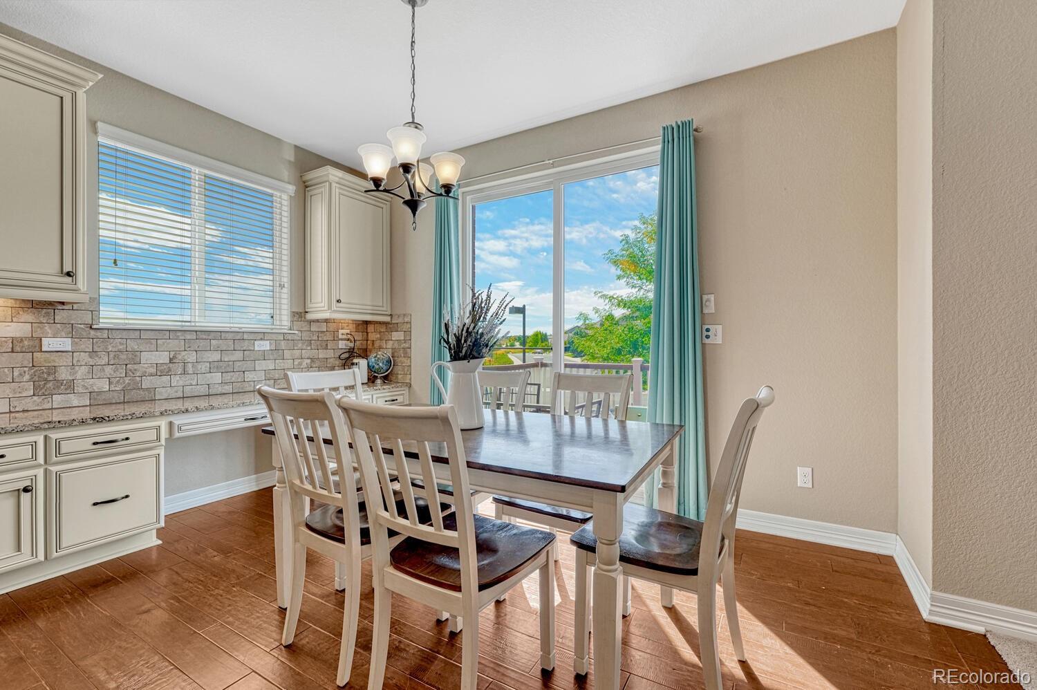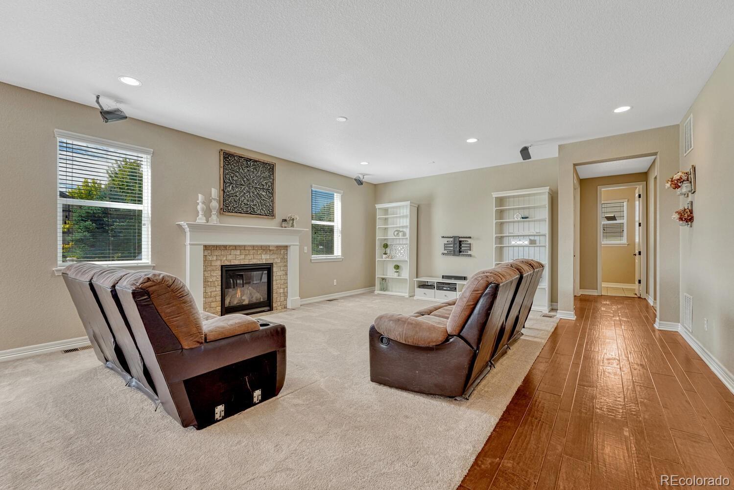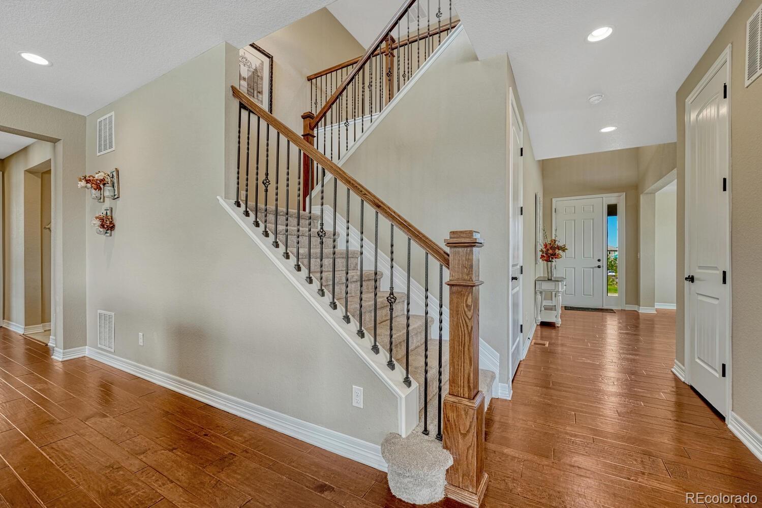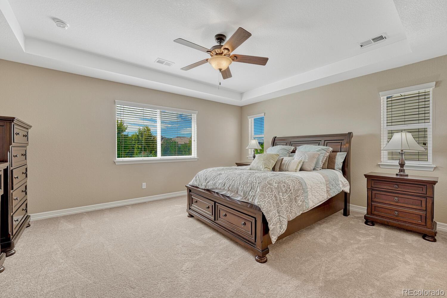 Step inside this beautifully updated 5-bed, 5-bath Richmond home on a corner lot in Meridian Village that is designed for both everyday comfort and memorable entertaining. The open main floor features a chef's kitchen with granite counters, double ovens, walk-in pantry, and a generous island that flows into the family room with a cozy fireplace for those snowy, Colorado evenings. A formal dining room and butler's pantry with wine cooler make hosting effortless. Upstairs, the spacious primary suite is a true retreat with coffered ceilings, a luxurious 5-piece bath, and large walk-in closet. Three additional bedrooms, including one with an ensuite bath, plus a bright loft offer flexibility for work or play. The finished basement extends your living space with a game room, gym, fifth bedroom, and full bath perfect for movie nights or guests. KEGINATOR AND BAR are INCLUDED! Enjoy Colorado living outdoors on the expansive deck overlooking mature landscaping, complete with a hot tub and. Recent updates include new carpet, fresh paint. The landscaping has been refreshed, as well. A 3-car garage with storage racks and bike pulleys adds practicality to this move-in-ready home. Located within walking distance of neighborhood parks and trails, with easy access to E-470, I-25, and downtown Parker, this home blends luxury, location, and lifestyle in one perfect package.