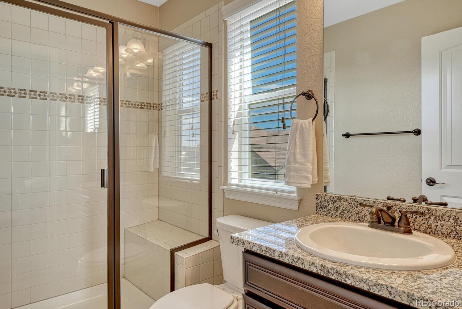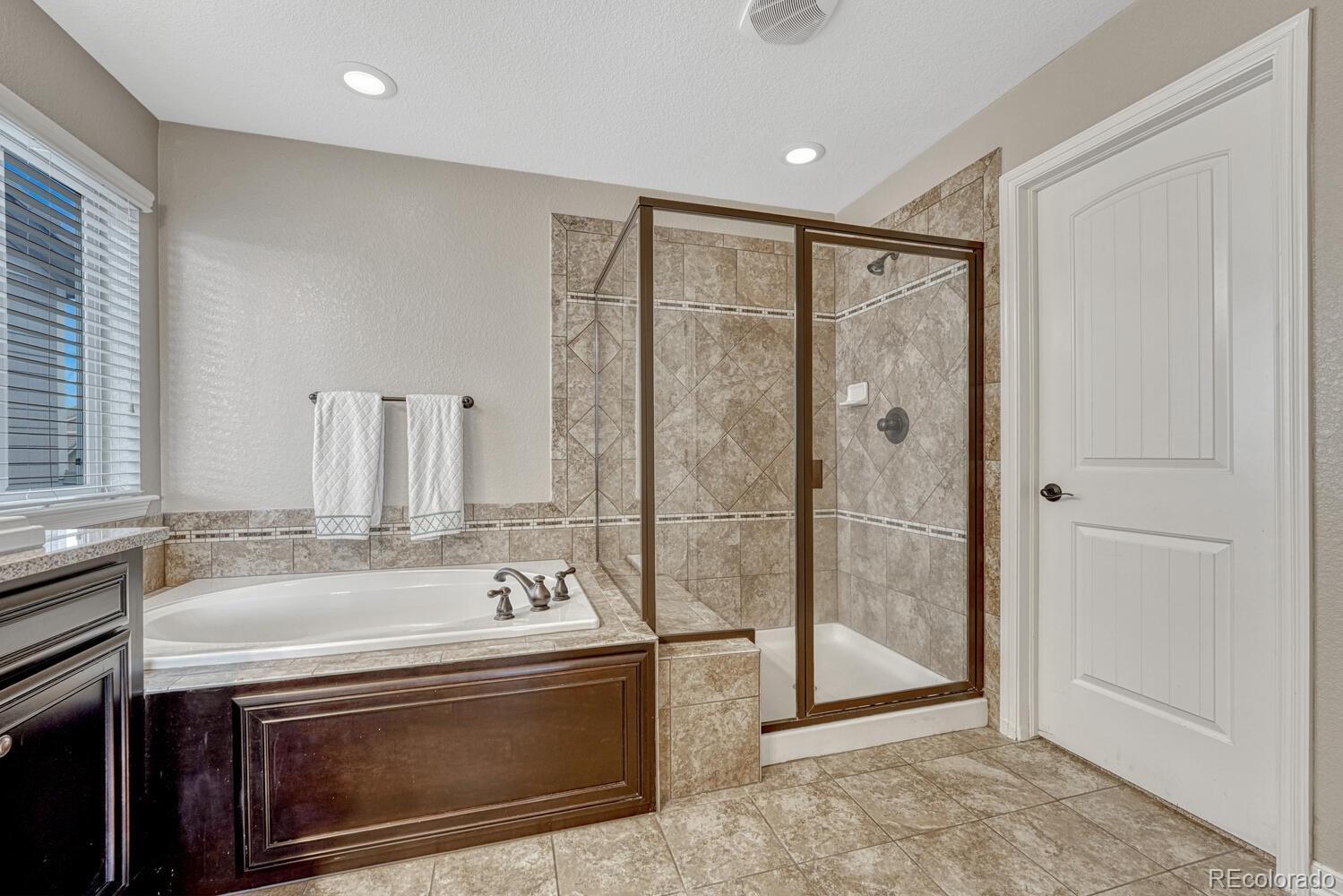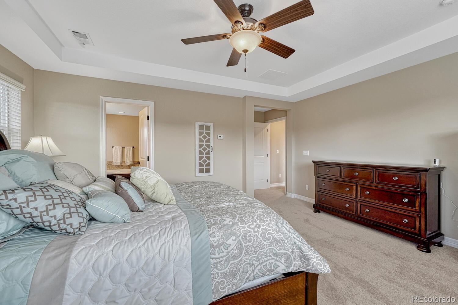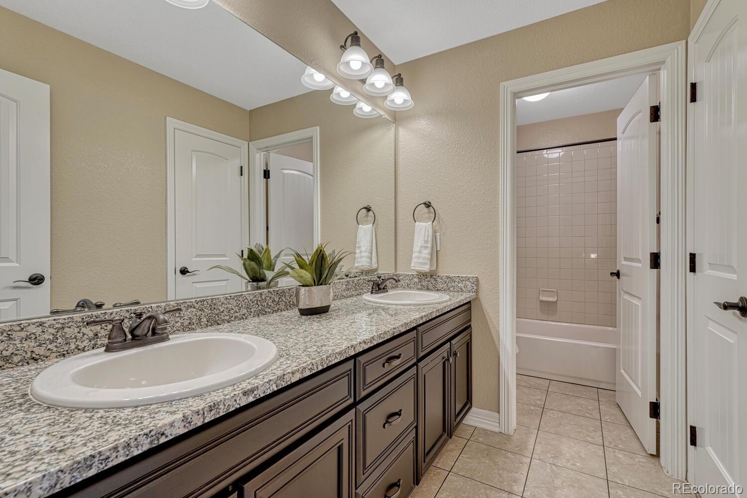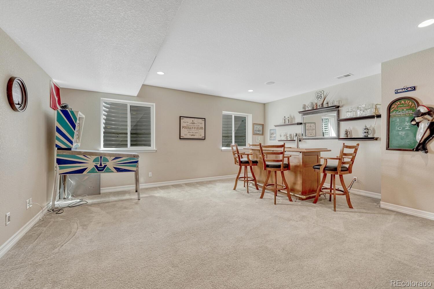 Step inside this beautifully updated 5-bed, 5-bath Richmond home on a corner lot in Meridian Village that is designed for both everyday comfort and memorable entertaining. The open main floor features a chef's kitchen with granite counters, double ovens, walk-in pantry, and a generous island that flows into the family room with a cozy fireplace for those snowy, Colorado evenings. A formal dining room and butler's pantry with wine cooler make hosting effortless. Upstairs, the spacious primary suite is a true retreat with coffered ceilings, a luxurious 5-piece bath, and large walk-in closet. Three additional bedrooms, including one with an ensuite bath, plus a bright loft offer flexibility for work or play. The finished basement extends your living space with a game room, gym, fifth bedroom, and full bath perfect for movie nights or guests. KEGINATOR AND BAR are INCLUDED! Enjoy Colorado living outdoors on the expansive deck overlooking mature landscaping, complete with a hot tub and. Recent updates include new carpet, fresh paint. The landscaping has been refreshed, as well. A 3-car garage with storage racks and bike pulleys adds practicality to this move-in-ready home. Located within walking distance of neighborhood parks and trails, with easy access to E-470, I-25, and downtown Parker, this home blends luxury, location, and lifestyle in one perfect package.