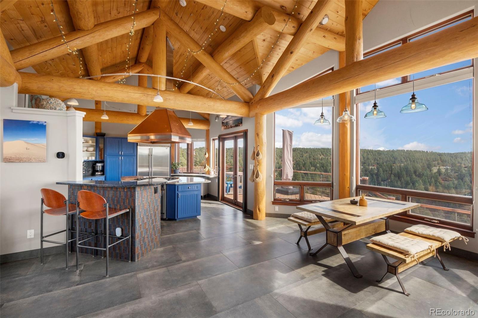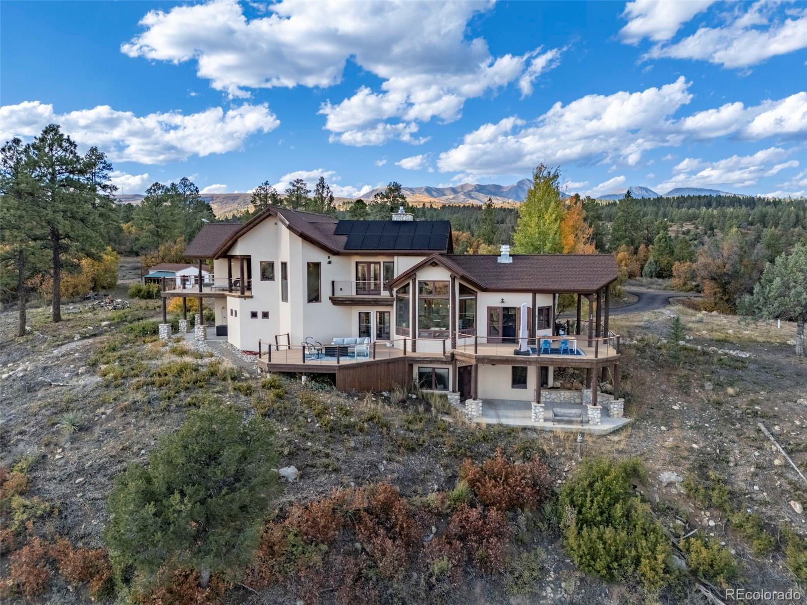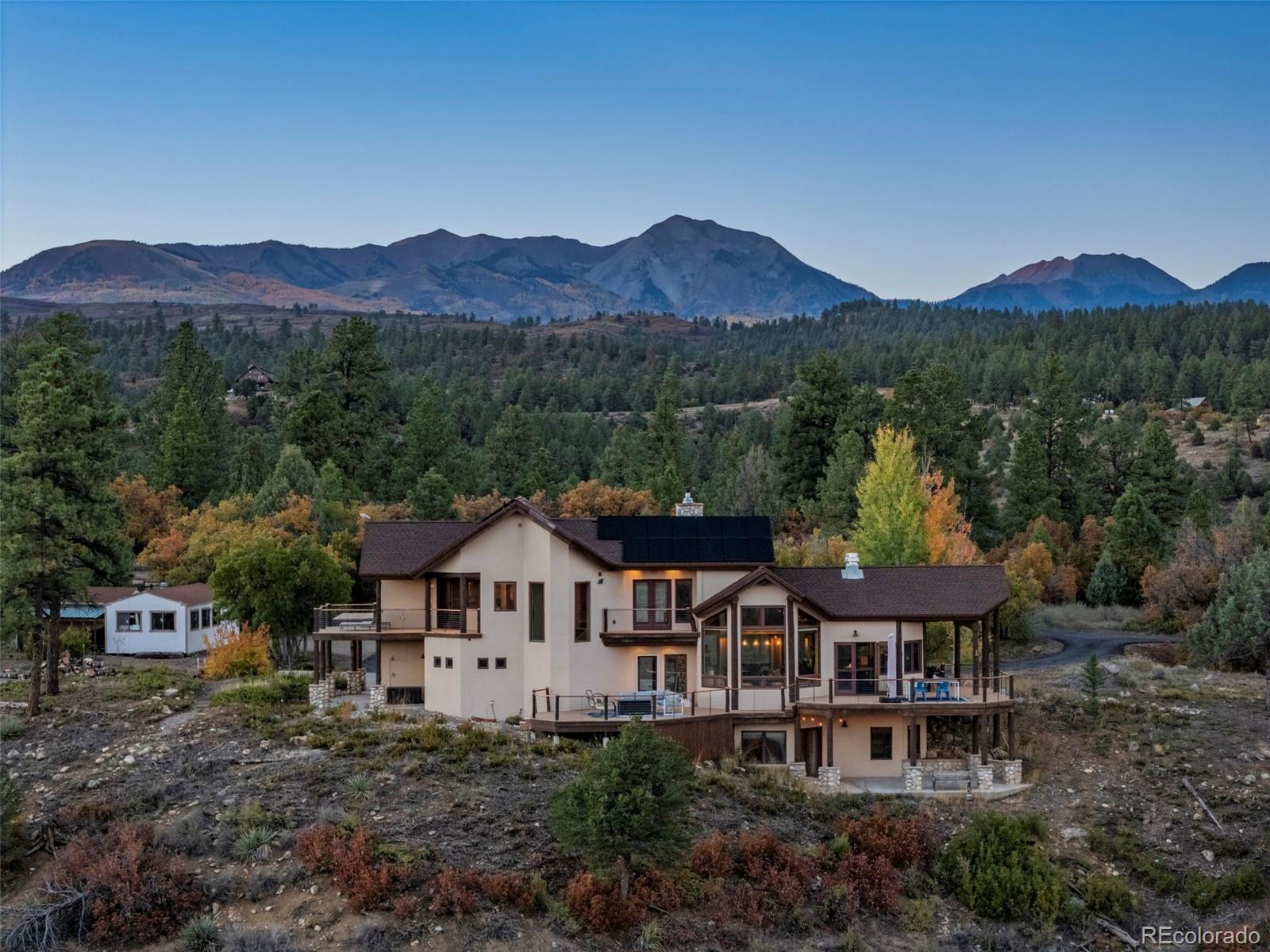 Luxury Mountain Retreat with 360 Panoramic Views on 36.87 Acres Discover the height of modern mountain living in this stunning 3-bedroom, 4-bathroom contemporary home, perched atop a private 36.87-acre mountaintop just five minutes from town. This exceptional property combines breathtaking views, refined design, and advanced technology for the ultimate retreat. Step inside to find an open, light-filled layout with high-end finishes throughout. The gourmet kitchen features a Sub-Zero refrigerator, Wolf gas range with a striking copper hood, and a spacious island perfect for entertaining. Enjoy custom copper handrails, a full wet bar, and a wine cellar that elevates every occasion. This home is built for both comfort and innovation, with smart lighting, thermostats, garage doors, smoke detectors, and a Sonos sound system. The primary suite offers a private deck pre-wired for a hot tub for an ideal place to relax and take in the panoramic views. Outside, multiple levels of durable Trex decking invite you to enjoy the mountain air. The property includes a garden area, underground compost system, and a cleared site ready for an accessory dwelling unit (ADU). A 14’ x 28’ heated workshop and adjoining 14’ x 20’ storage space provide endless possibilities for hobbies or projects. Sustainability meets style with a full solar and battery backup system, delivering reliable energy efficiency, and an advanced ozonator and reverse osmosis filtering system ensures pristine, great-tasting water year-round. Designed for privacy, luxury, and connection to nature (yet only 10 minutes from Downtown Durango), this exceptional home offers the best of all worlds: sophisticated living, eco-friendly design, and awe-inspiring scenery. Whether entertaining friends or seeking peace and solitude, this property delivers a truly rare opportunity.