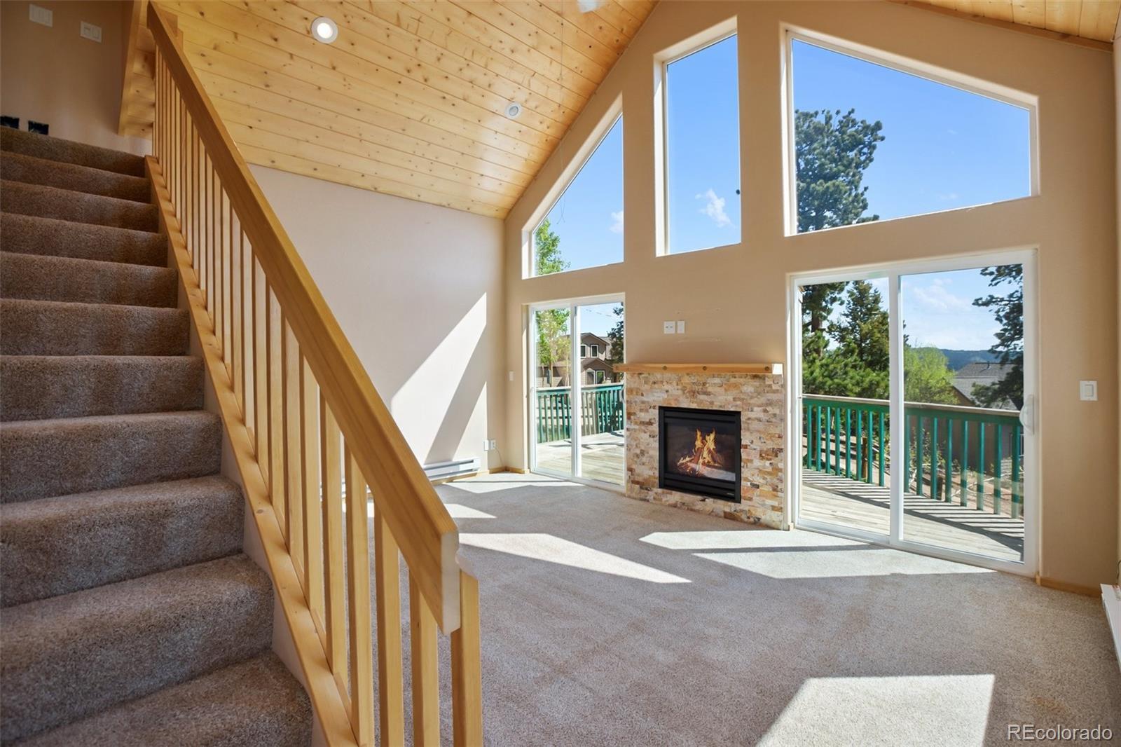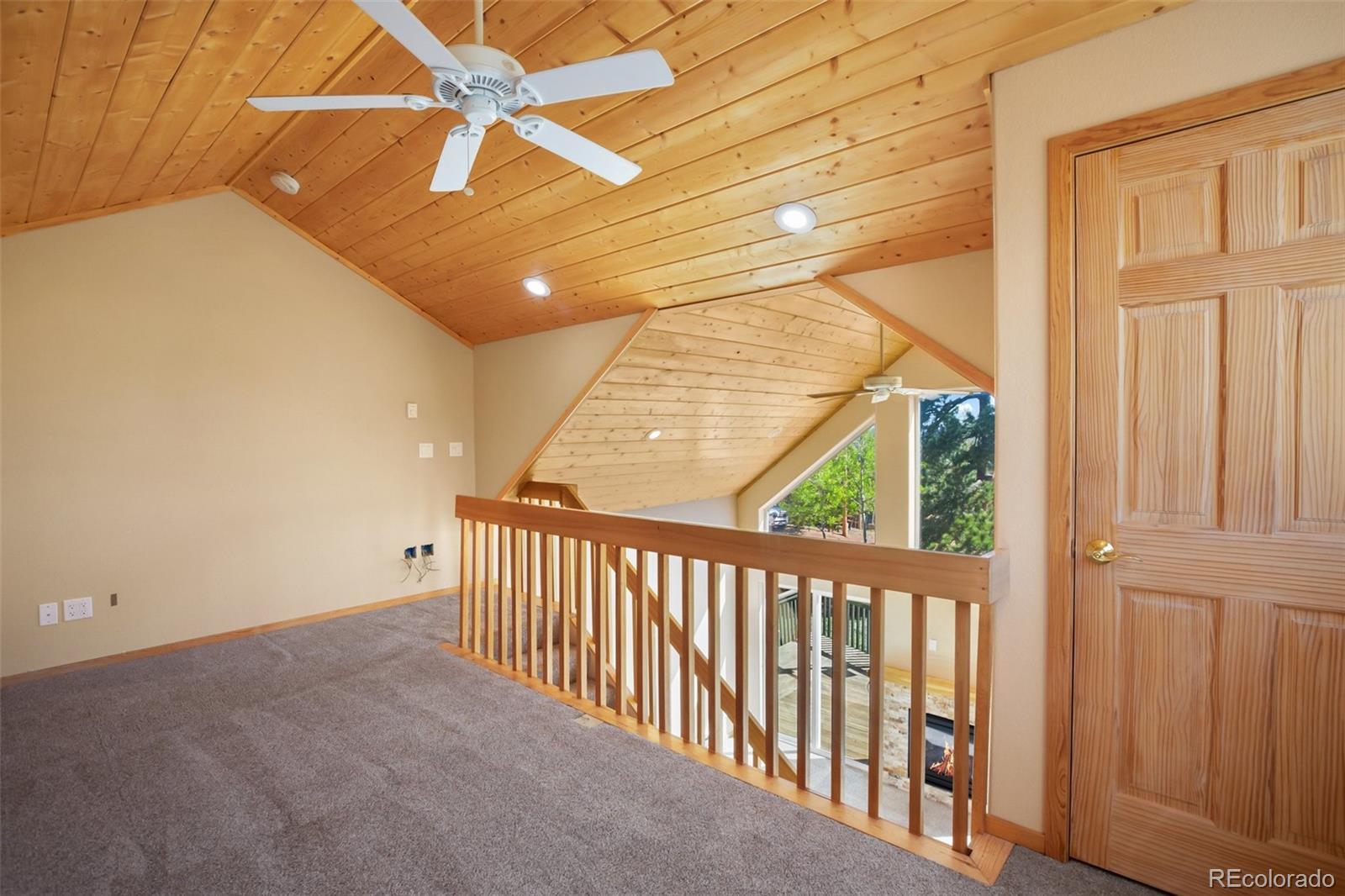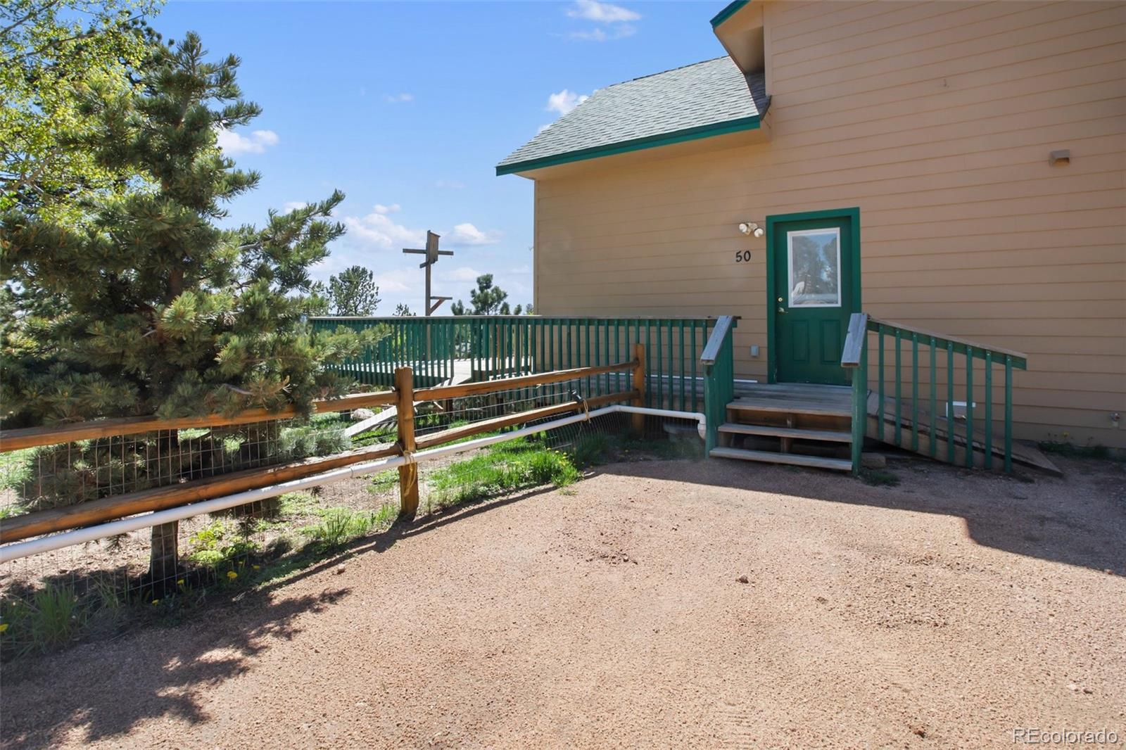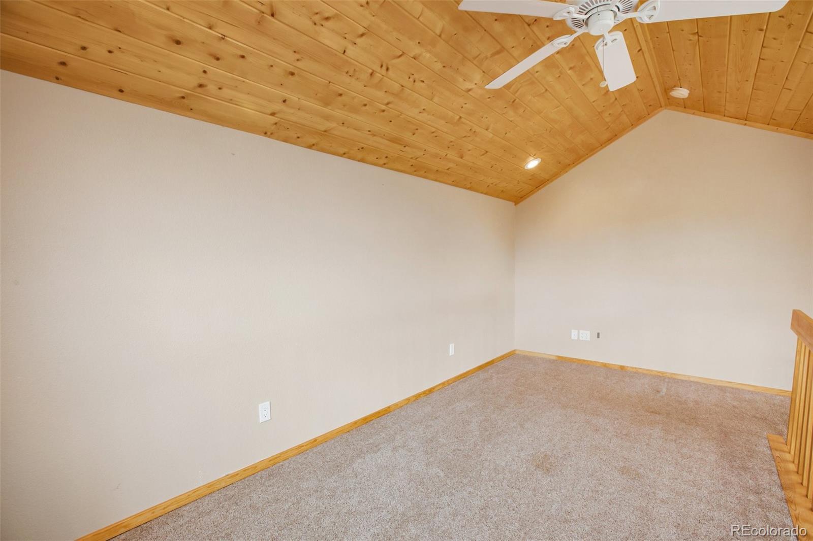 Welcome to this darling, mountain chalet located in the outskirts of Woodland Park! Upon entering the home, you walk into the living room with soaring pine ceilings and windows that allow year-round passive solar light to warm your home. There is a beautiful stone, propane fireplace that provides even more warmth and ambiance. Two sliders in the living room allow you to walk out to the inviting deck where you feel and see the mountain beauty. The area off of the living room and deck is fenced for pets/children. The kitchen has gorgeous solid hickory cabinets, an electric stove, a pantry, plus a cozy dining area! The generous sized primary bedroom is conveniently located on the main floor with an attached jack and jill 3/4 bathroom. Head upstairs to the loft-style bedroom which has a ceiling fan and a closet. On the lower level is a generous sized bedroom, a family room that is a walk out, along with a 3/4 jack and jill bath. There is a sink and refrigerator on the lower level for convenience. You could rent the lower level out for extra income! The storage shed has electric and a block foundation lower level for even more storage! The front yard is all fenced in and is a great place for children and dogs. The exterior is a fire resistant wood grain siding. Located within 30 minutes to Colorado Springs and 2 hours to great skiing. Surrounded by local attractions like world class fishing, hiking, Pike's Peak and more! Abundant wildlife can be seen year-round - elk, bear, deer, turkeys and even some moose. This home would make an excellent full-time residence, second home or income property. Vacation rentals are allowed here. There is incredible hiking located off of nearby Edlowe Road. The voluntary HOA fees cover the road maintenance. All new carpeting has been installed and new luxury vinyl in the bathrooms!