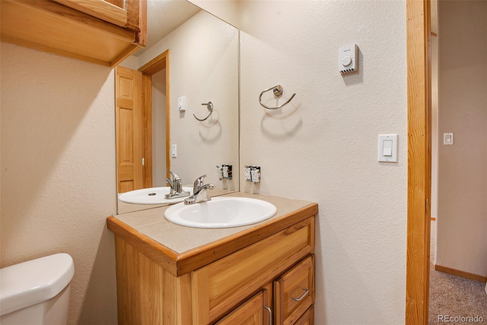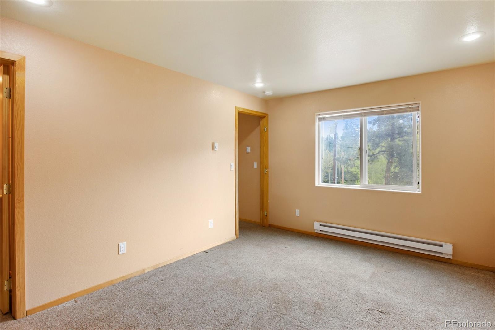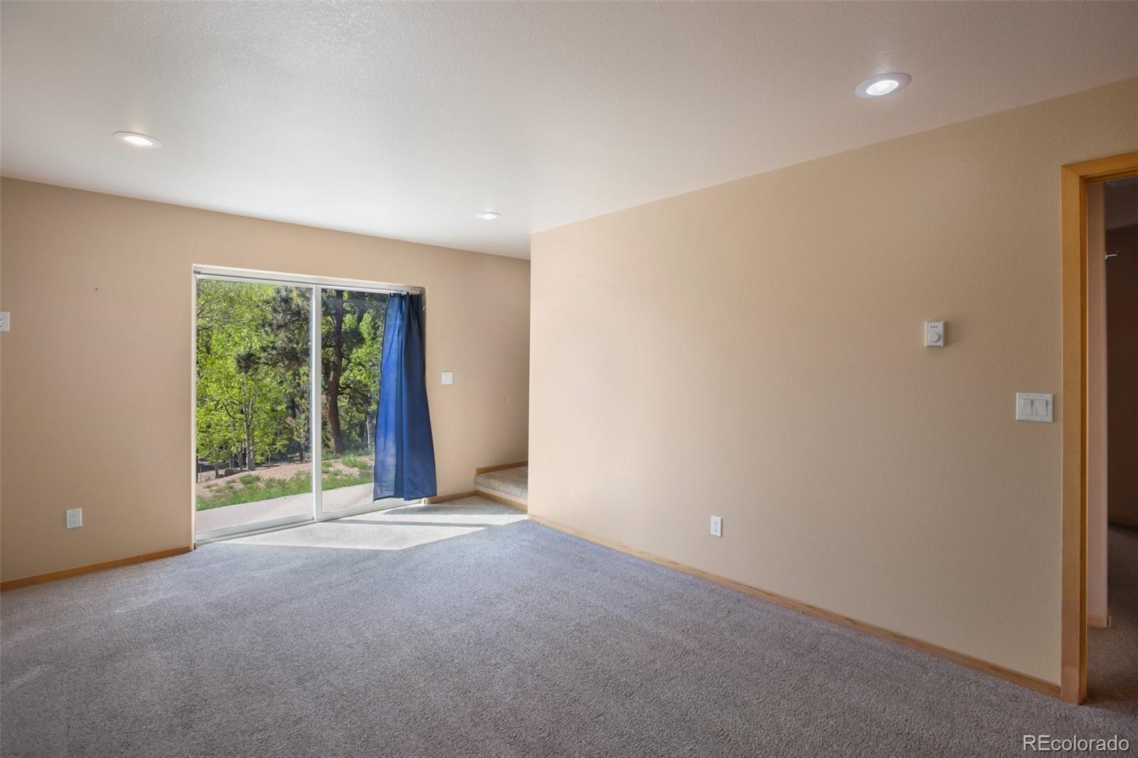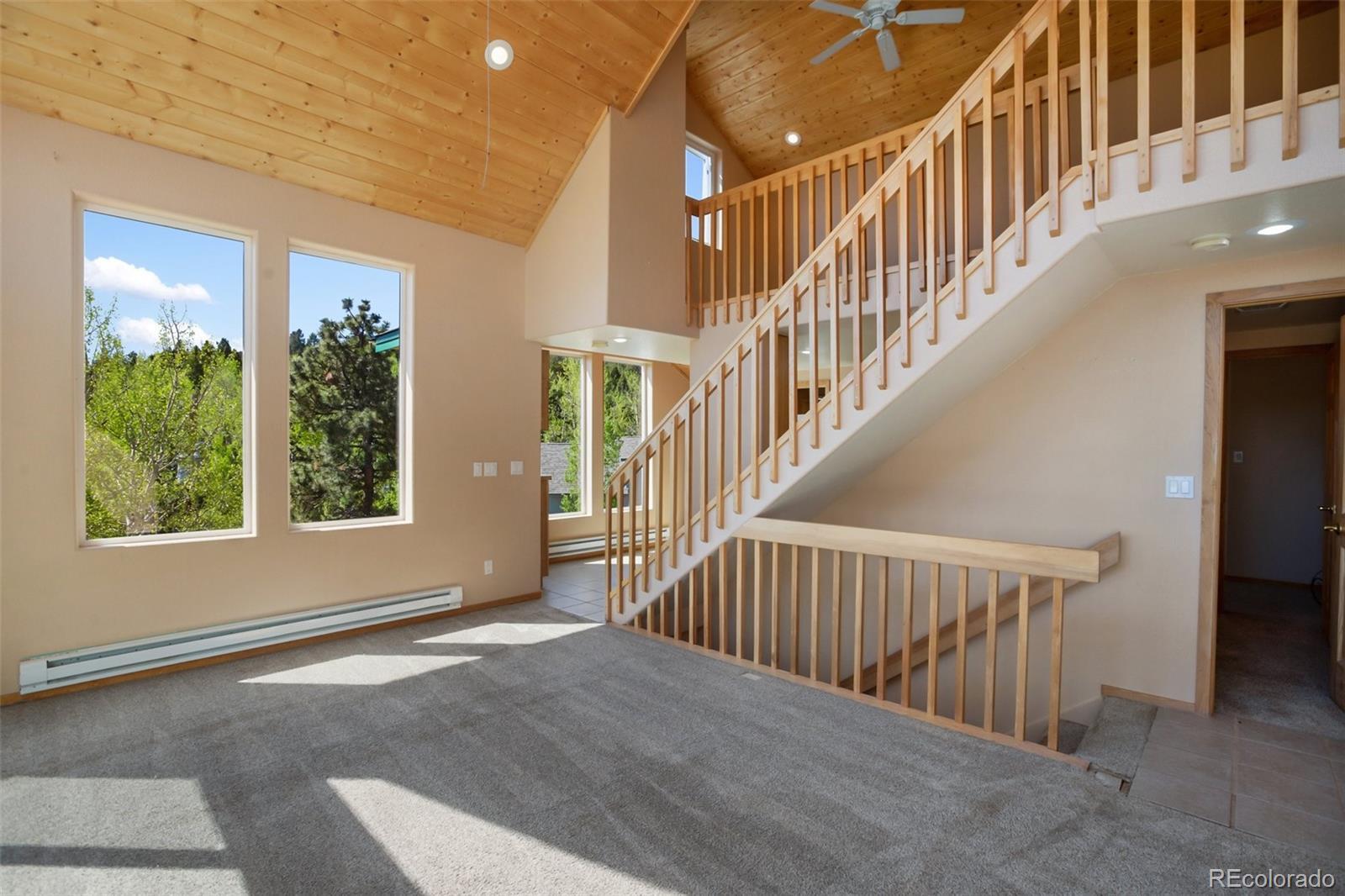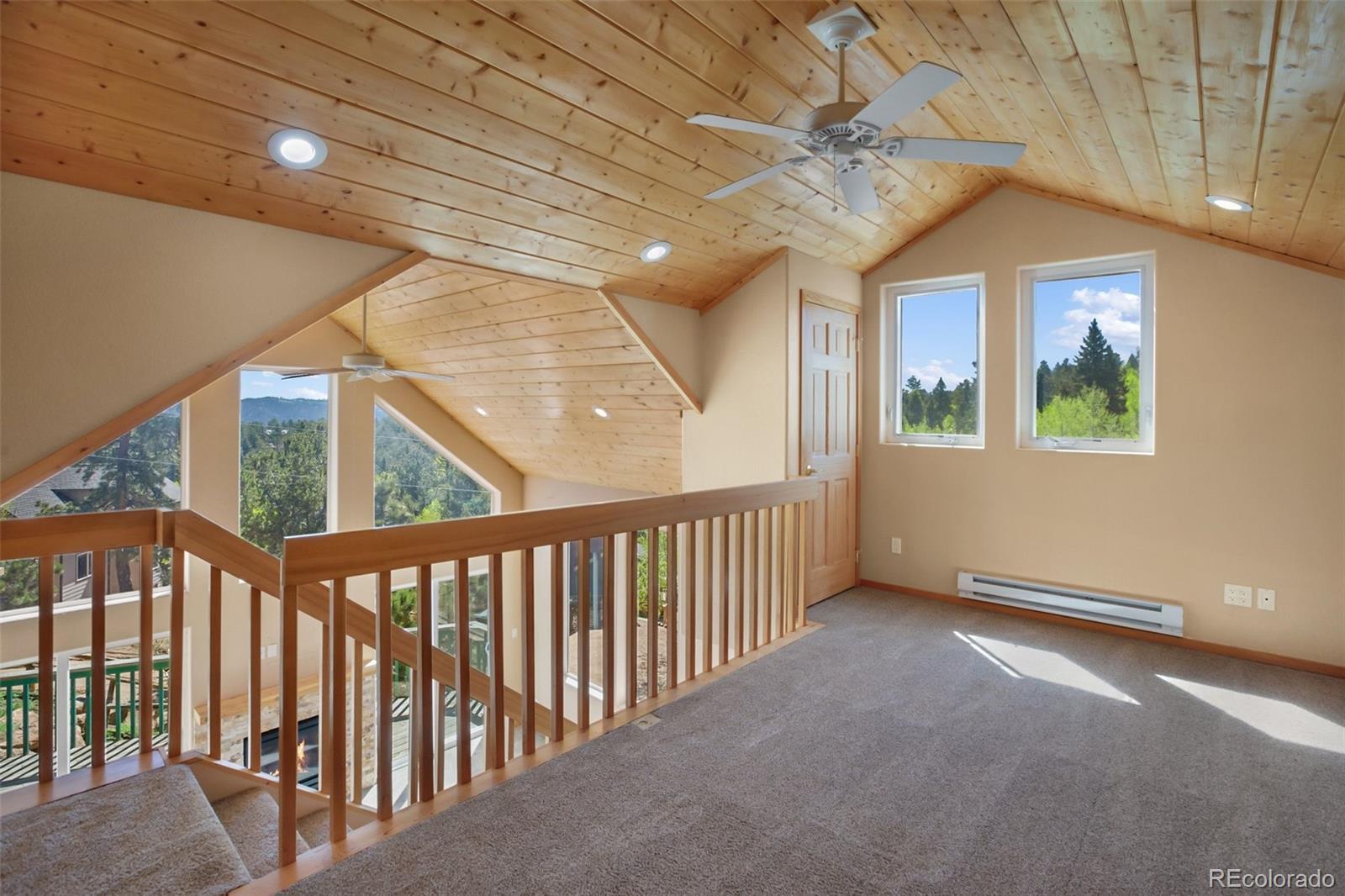 Welcome to this darling, mountain chalet located in the outskirts of Woodland Park! Upon entering the home, you walk into the living room with soaring pine ceilings and windows that allow year-round passive solar light to warm your home. There is a beautiful stone, propane fireplace that provides even more warmth and ambiance. Two sliders in the living room allow you to walk out to the inviting deck where you feel and see the mountain beauty. The area off of the living room and deck is fenced for pets/children. The kitchen has gorgeous solid hickory cabinets, an electric stove, a pantry, plus a cozy dining area! The generous sized primary bedroom is conveniently located on the main floor with an attached jack and jill 3/4 bathroom. Head upstairs to the loft-style bedroom which has a ceiling fan and a closet. On the lower level is a generous sized bedroom, a family room that is a walk out, along with a 3/4 jack and jill bath. There is a sink and refrigerator on the lower level for convenience. You could rent the lower level out for extra income! The storage shed has electric and a block foundation lower level for even more storage! The front yard is all fenced in and is a great place for children and dogs. The exterior is a fire resistant wood grain siding. Located within 30 minutes to Colorado Springs and 2 hours to great skiing. Surrounded by local attractions like world class fishing, hiking, Pike's Peak and more! Abundant wildlife can be seen year-round - elk, bear, deer, turkeys and even some moose. This home would make an excellent full-time residence, second home or income property. Vacation rentals are allowed here. There is incredible hiking located off of nearby Edlowe Road. The voluntary HOA fees cover the road maintenance. All new carpeting has been installed and new luxury vinyl in the bathrooms!