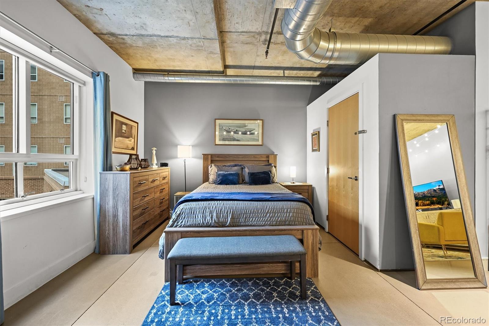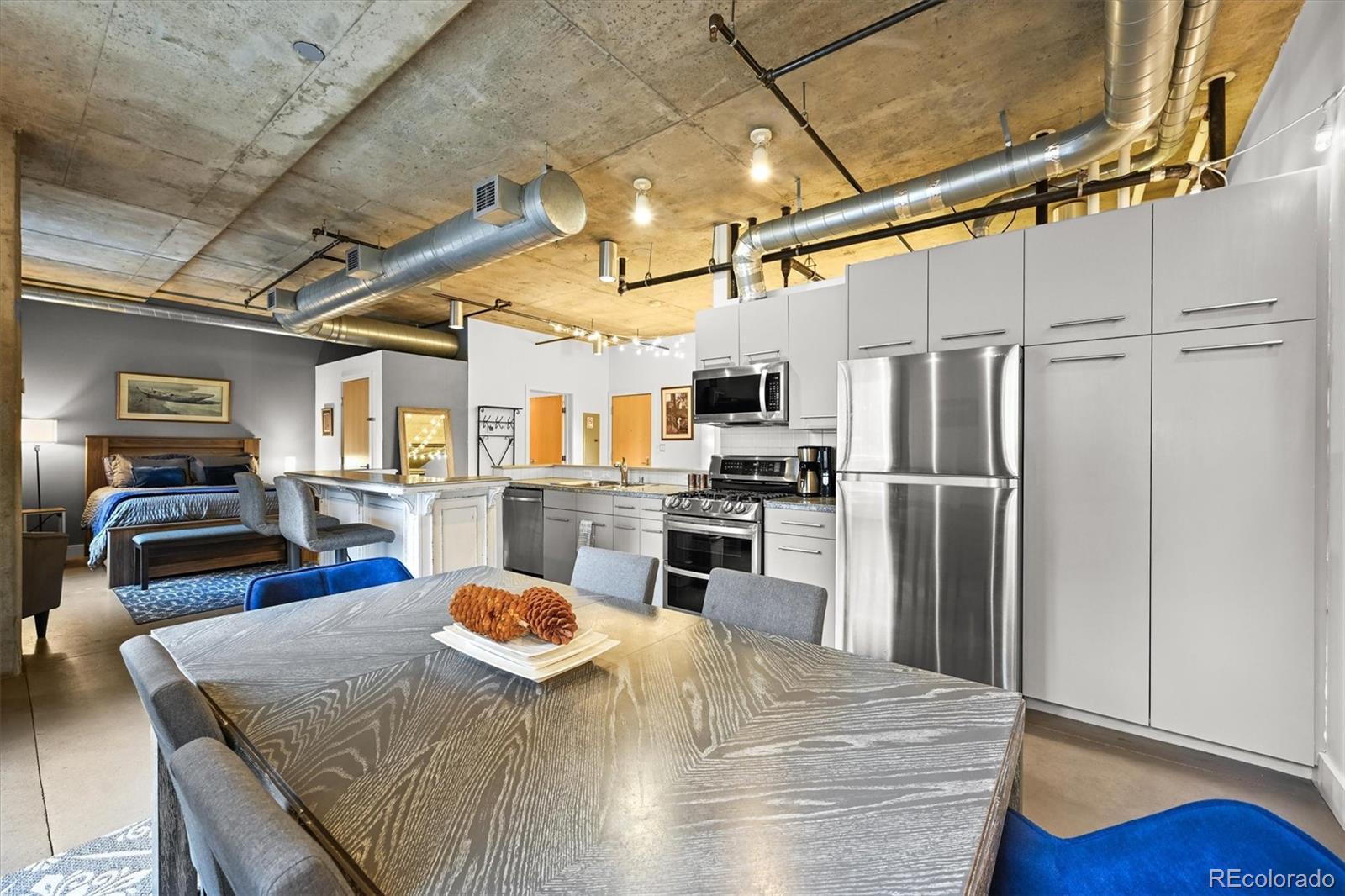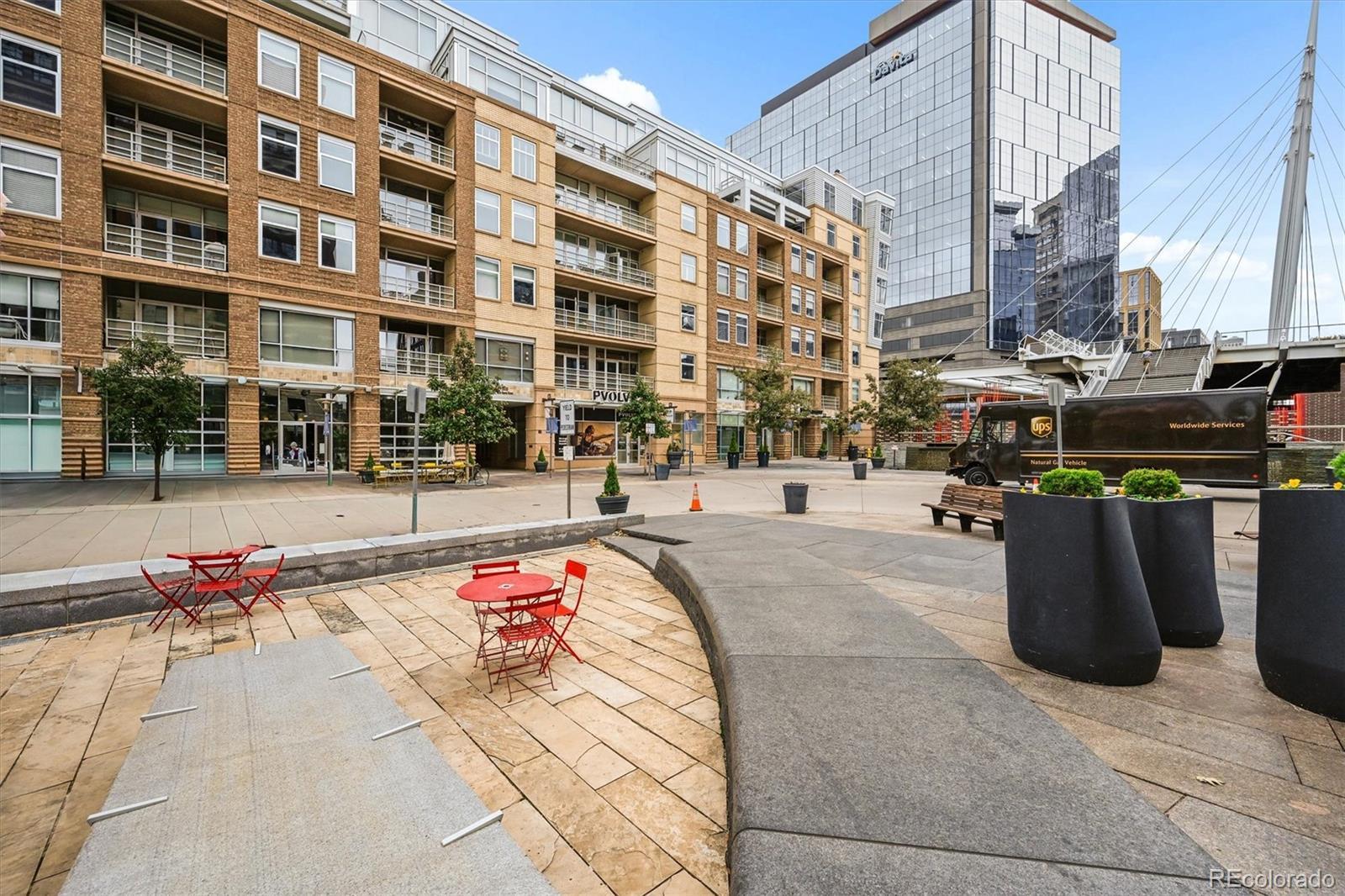Ideally positioned in the heart of Riverfront Park, this beautiful studio loft delivers an exceptional downtown lifestyle surrounded by dining, coffee shops, parks, and iconic landmarks including the Denver Millennium Bridge. The thoughtfully designed open floor plan maximizes space and functionality, anchored by a full-size kitchen with stainless steel appliances, granite countertops, and ample cabinetry. Just off the kitchen, a Juliet balcony provides a welcome connection to the outdoors, inviting natural light and fresh air into the home. The flexible living area easily accommodates lounging, working, and entertaining, while the defined sleeping space is complemented by a generous walk-in closet for efficient storage. A separate laundry room adds everyday convenience and includes a washer, dryer, drying rack, and additional storage space. Residents enjoy the security and comfort of a professionally managed, secured-access building with 24/7 security, on-site management, a reserved parking space, and a private storage unit located in the secure garage. With seamless access to LoDo, LoHi, Union Station, Ball Arena, Auraria Campus, and the Denver Performing Arts Complex, this residence offers an unmatched opportunity to enjoy the energy and convenience of downtown Denver living.
