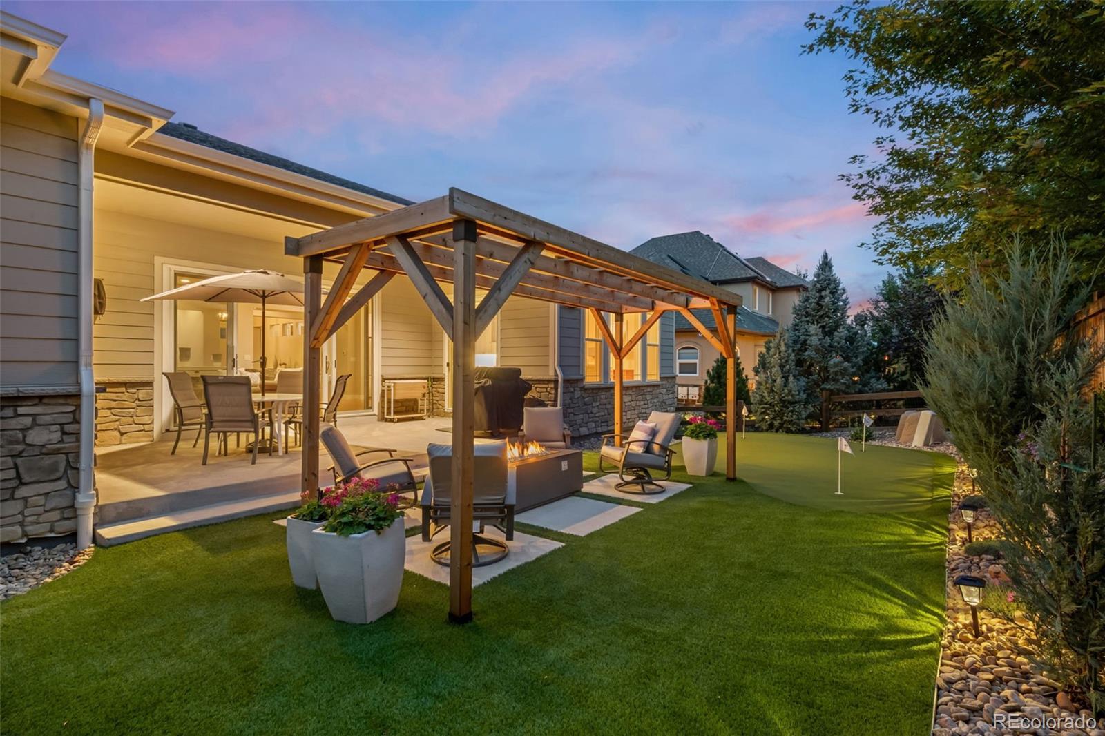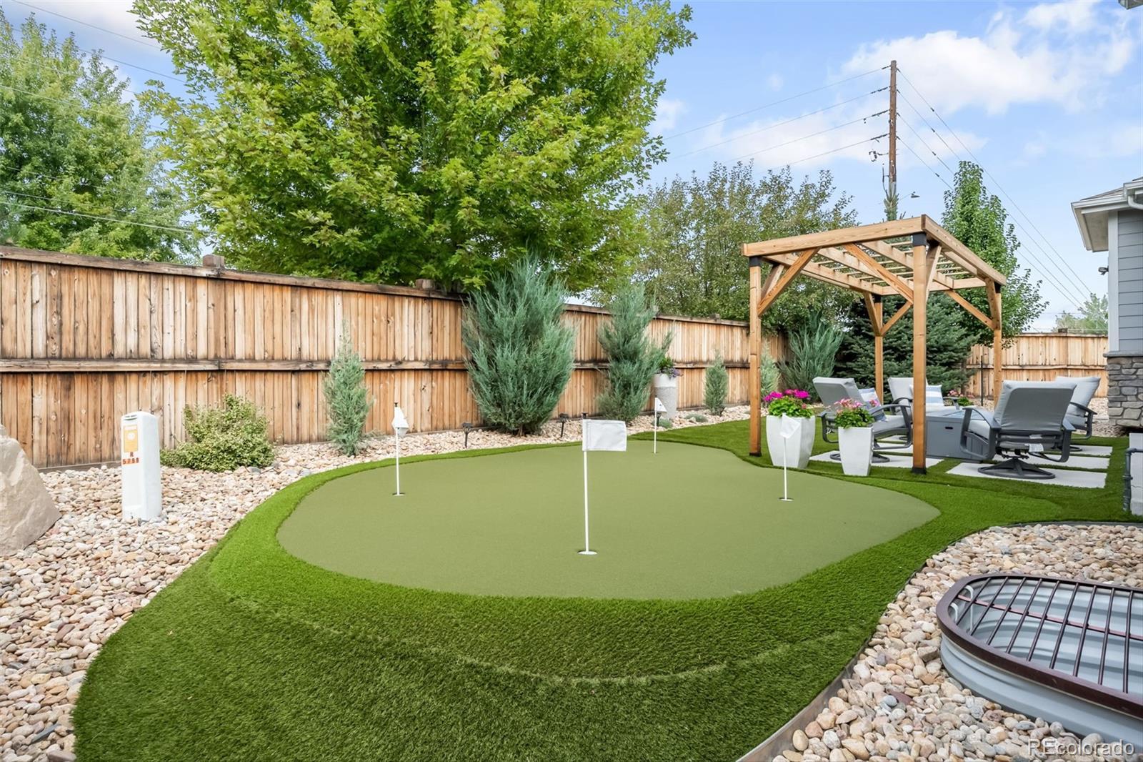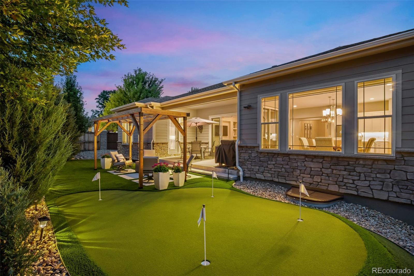 Golden Ranch Retreat – Modern Elegance Meets Colorado Living. This custom ranch-style home in Golden reflects simple elegance and the best of Colorado’s indoor–outdoor lifestyle. With no special taxing district and an unbeatable location near Van Bibber Open Space, downtown Denver, and the foothills, every convenience and adventure is just minutes away. Rolling Hills Country Club and West Woods Golf Course are close by, as are miles of road bike and walking trails. Step inside to soaring 10-foot ceilings, 9-foot doors, and rich maple floors that set the tone for timeless design. The chef’s kitchen is a true centerpiece—featuring a fully extended quartz island, Bosch appliances, electric cooktop (plumbed for gas), and generous seating whether entertaining dozens or dining for two. An elegant entry, dual sliding glass doors, and thoughtful flow bring the outdoors in at every turn. The covered patio, pergola lounge, putting green, and low-maintenance landscaping make this home perfect for both lock-and-leave ease or long summer evenings under the stars. The primary suite offers patio access and a spa-like bath with a soaking tub, custom shower, and designer cabinetry. Downstairs, the finished basement was built for entertaining with a spacious rec room, wet bar, pool table/game space, and study nook, along with additional bedrooms, flex/exercise space, and a full bath. A 3-car finished garage with epoxy floors, dual-zone HVAC, whole-house surge protector, Hardy Board siding, and professional landscaping are just a few of the many thoughtful details. Pride of ownership shows in every custom feature—shade store remote roller shades, split-rail shutters, and modern finishes throughout. This home embodies the perfect balance of sophistication, comfort, and Colorado lifestyle.
