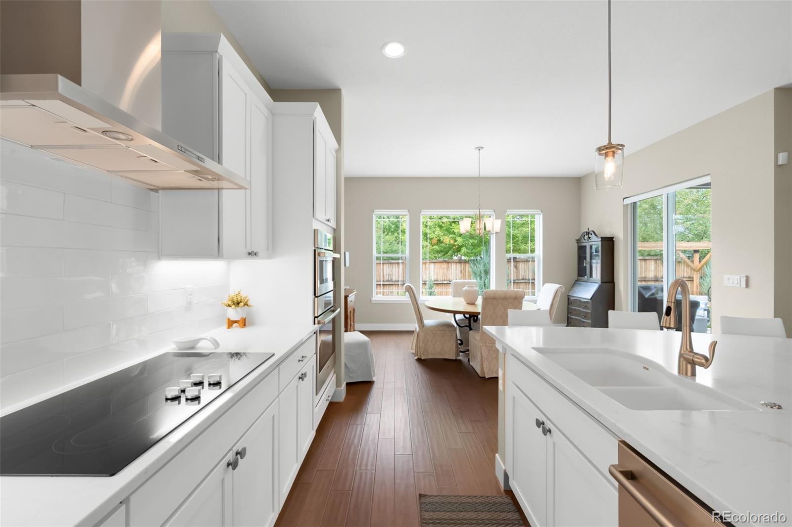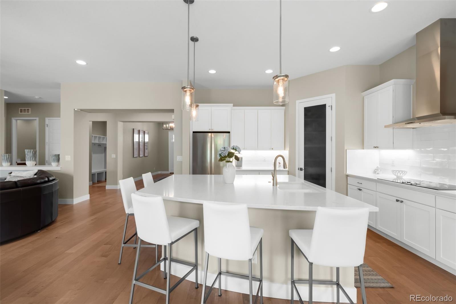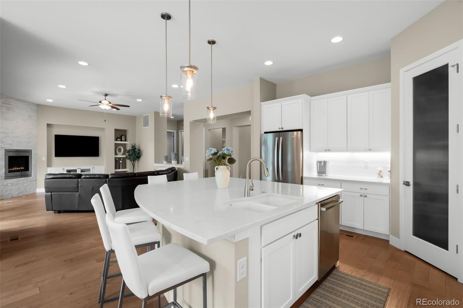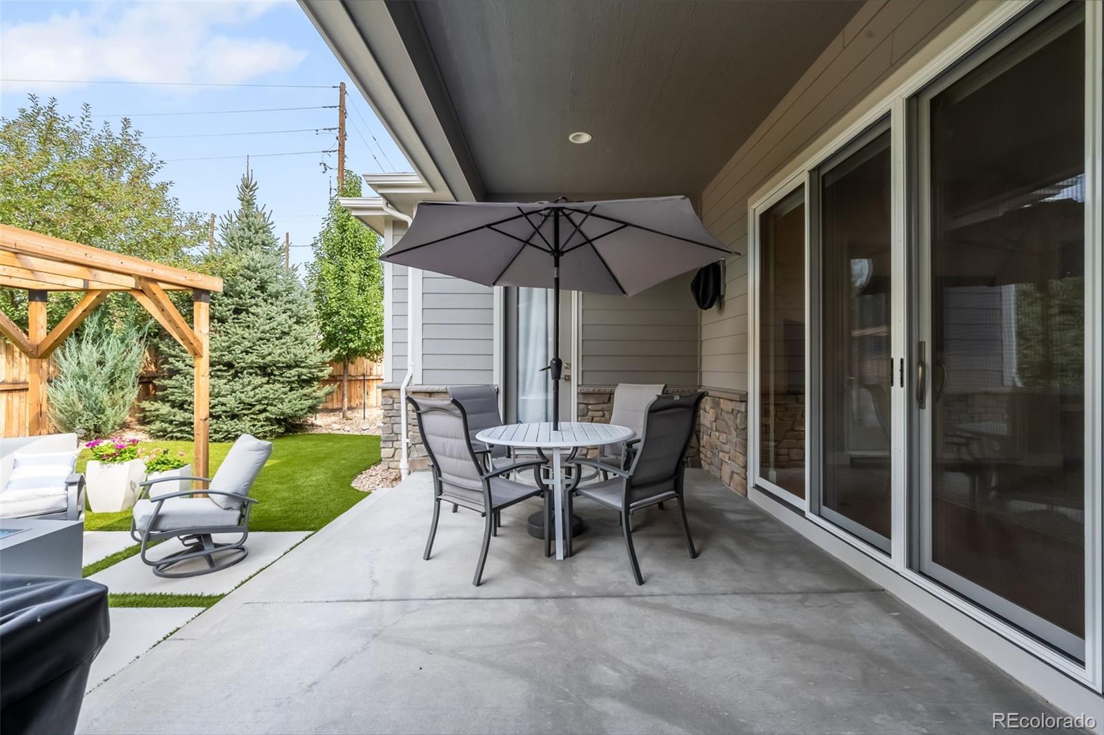 Golden Ranch Retreat – Modern Elegance Meets Colorado Living. This custom ranch-style home in Golden reflects simple elegance and the best of Colorado’s indoor–outdoor lifestyle. With no special taxing district and an unbeatable location near Van Bibber Open Space, downtown Denver, and the foothills, every convenience and adventure is just minutes away. Rolling Hills Country Club and West Woods Golf Course are close by, as are miles of road bike and walking trails. Step inside to soaring 10-foot ceilings, 9-foot doors, and rich maple floors that set the tone for timeless design. The chef’s kitchen is a true centerpiece—featuring a fully extended quartz island, Bosch appliances, electric cooktop (plumbed for gas), and generous seating whether entertaining dozens or dining for two. An elegant entry, dual sliding glass doors, and thoughtful flow bring the outdoors in at every turn. The covered patio, pergola lounge, putting green, and low-maintenance landscaping make this home perfect for both lock-and-leave ease or long summer evenings under the stars. The primary suite offers patio access and a spa-like bath with a soaking tub, custom shower, and designer cabinetry. Downstairs, the finished basement was built for entertaining with a spacious rec room, wet bar, pool table/game space, and study nook, along with additional bedrooms, flex/exercise space, and a full bath. A 3-car finished garage with epoxy floors, dual-zone HVAC, whole-house surge protector, Hardy Board siding, and professional landscaping are just a few of the many thoughtful details. Pride of ownership shows in every custom feature—shade store remote roller shades, split-rail shutters, and modern finishes throughout. This home embodies the perfect balance of sophistication, comfort, and Colorado lifestyle.