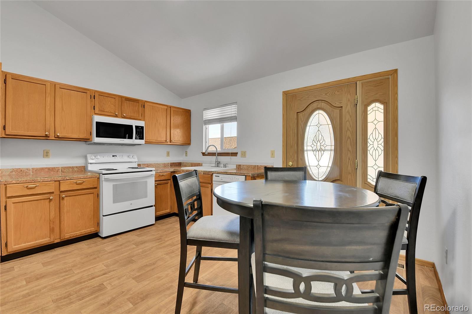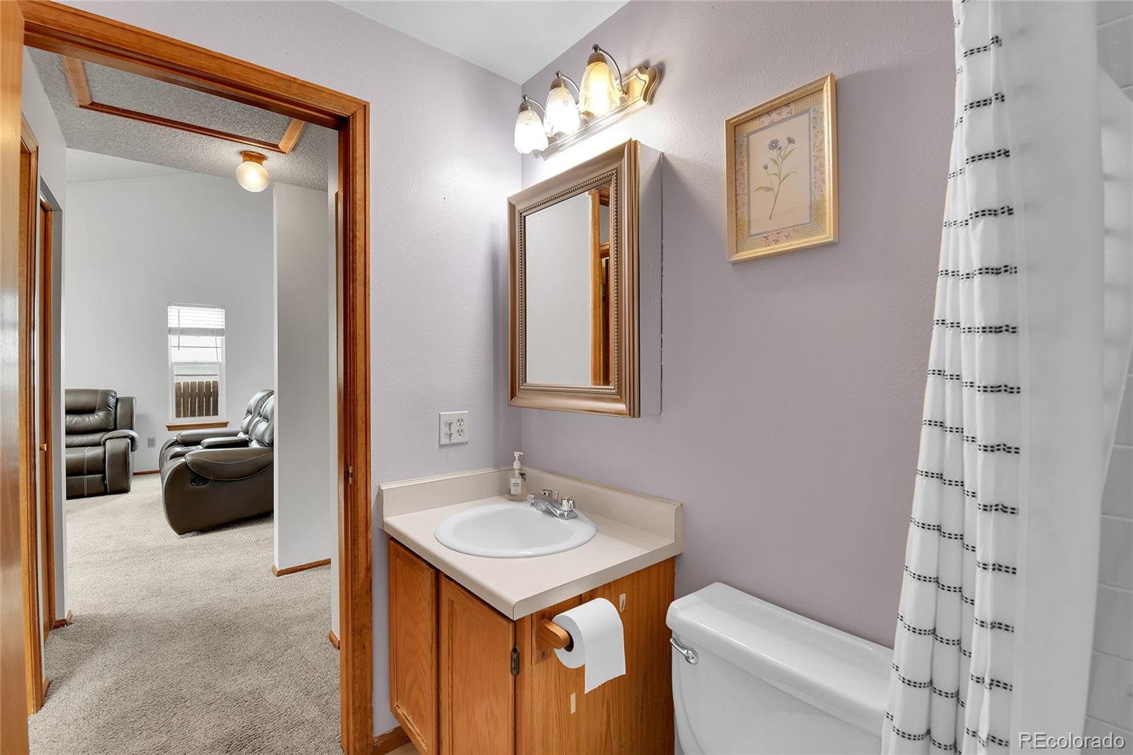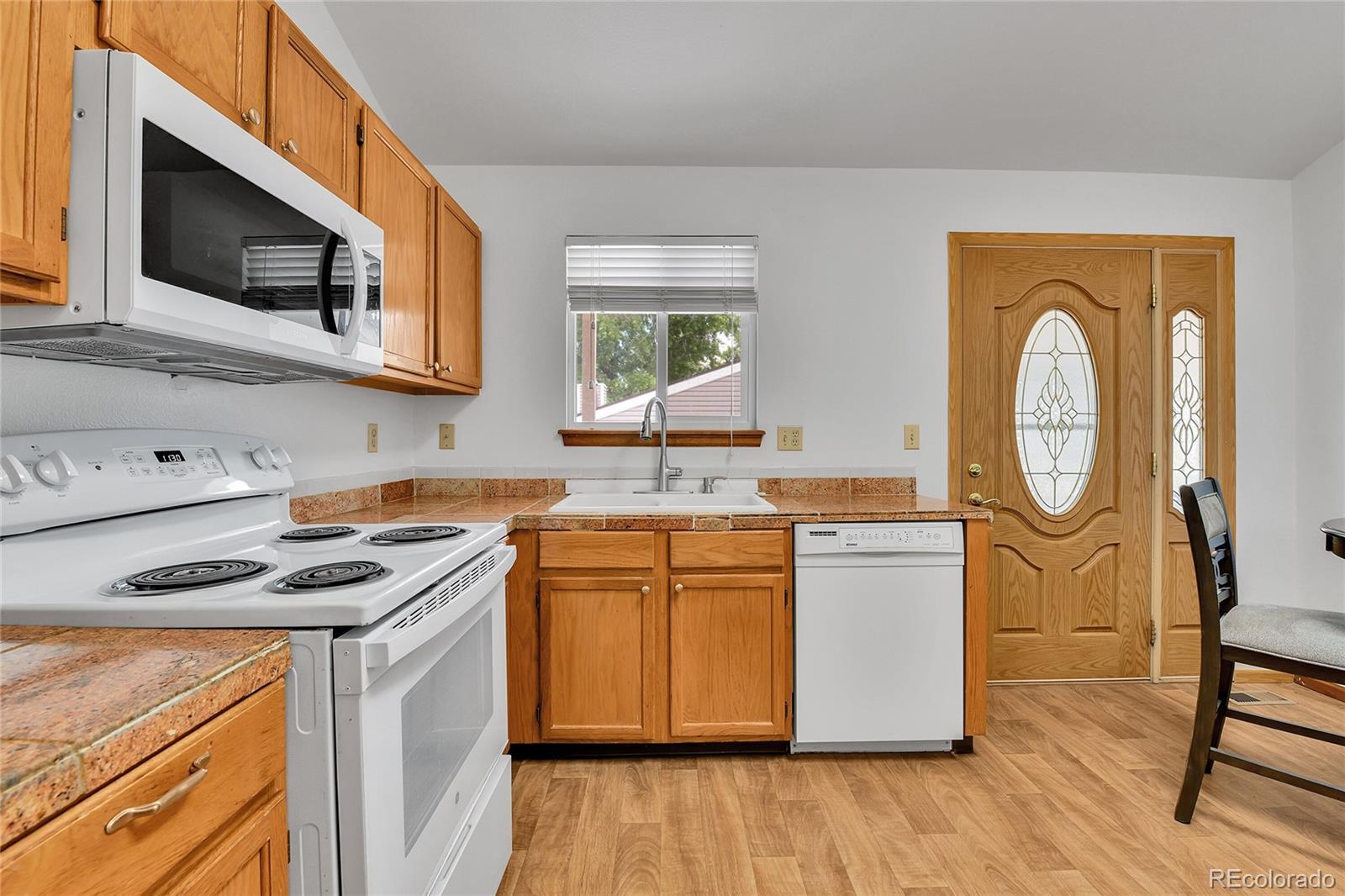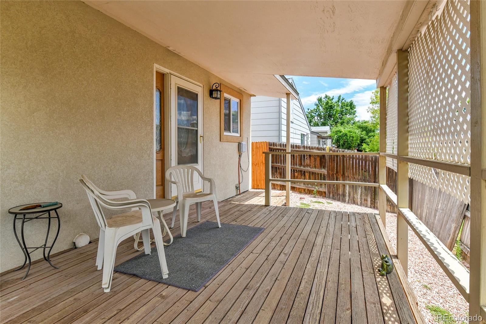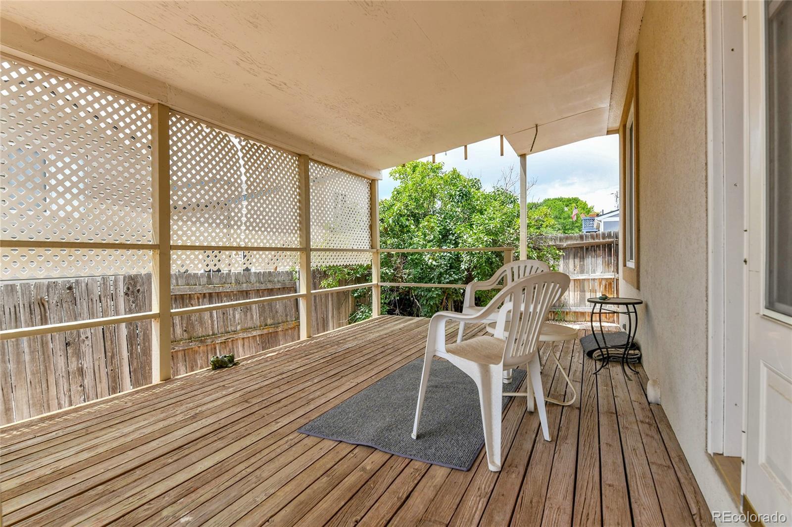 Welcome to this beautifully maintained 3 bedroom, 2 bath home offering a perfect blend of comfort and functionality. This home is tucked in Woodglen, a quiet and very family friendly neighborhood with no HOA. An elementary school and amazing park are just 2 blocks away. Walk into a spacious living area with skylights and an abundance of natural light; an eat in kitchen complete the space. The primary suite offers a peaceful retreat with a generous closet, updated flooring throughout. The basement is finished with a bathroom and a bedroom that can also be an office. The basement carpet and paint are new! The back yard has a large deck for grilling and relaxing. The south facing fence has just been replaced. Additional features include a washer and dryer, and a freezer in the garage. This home is conveniently located near shopping, dining, the Thornton recreational center just blocks away. The home has a year-old roof, stone and stucco siding.