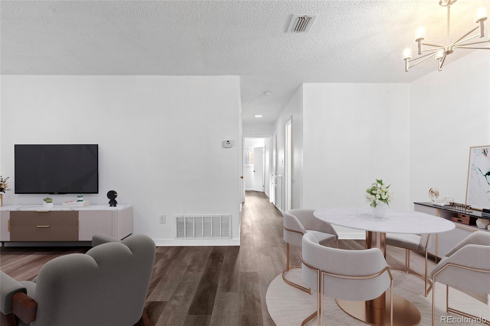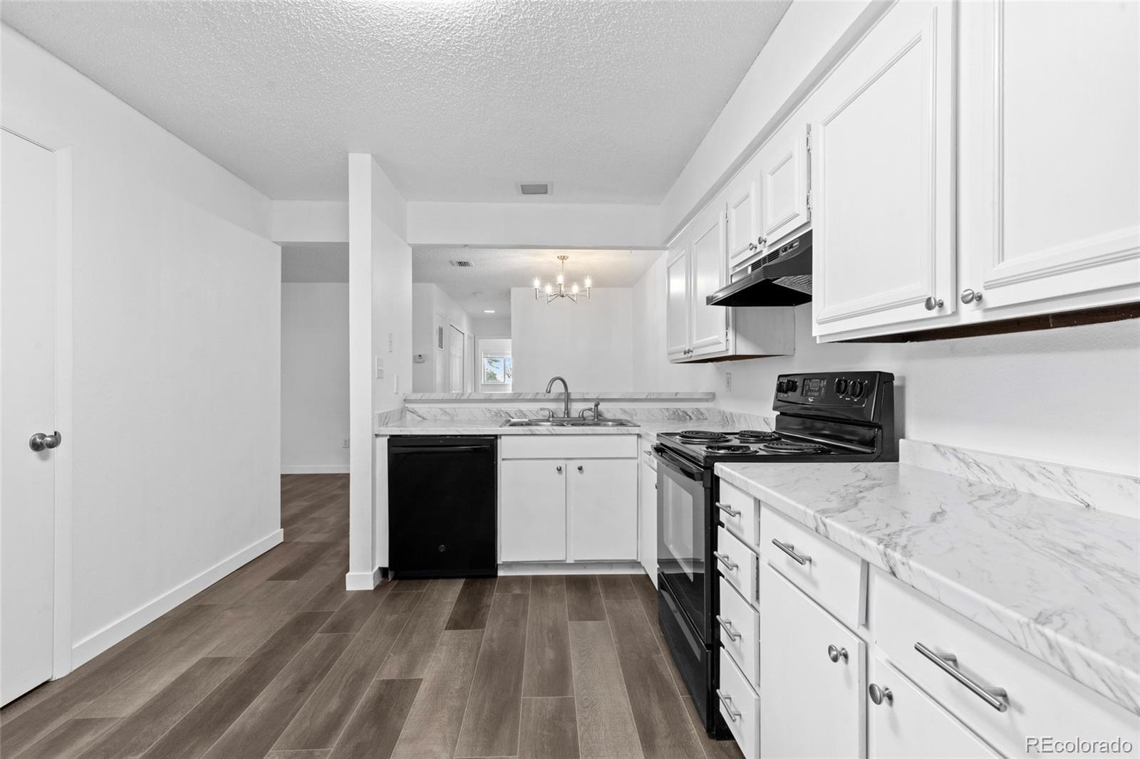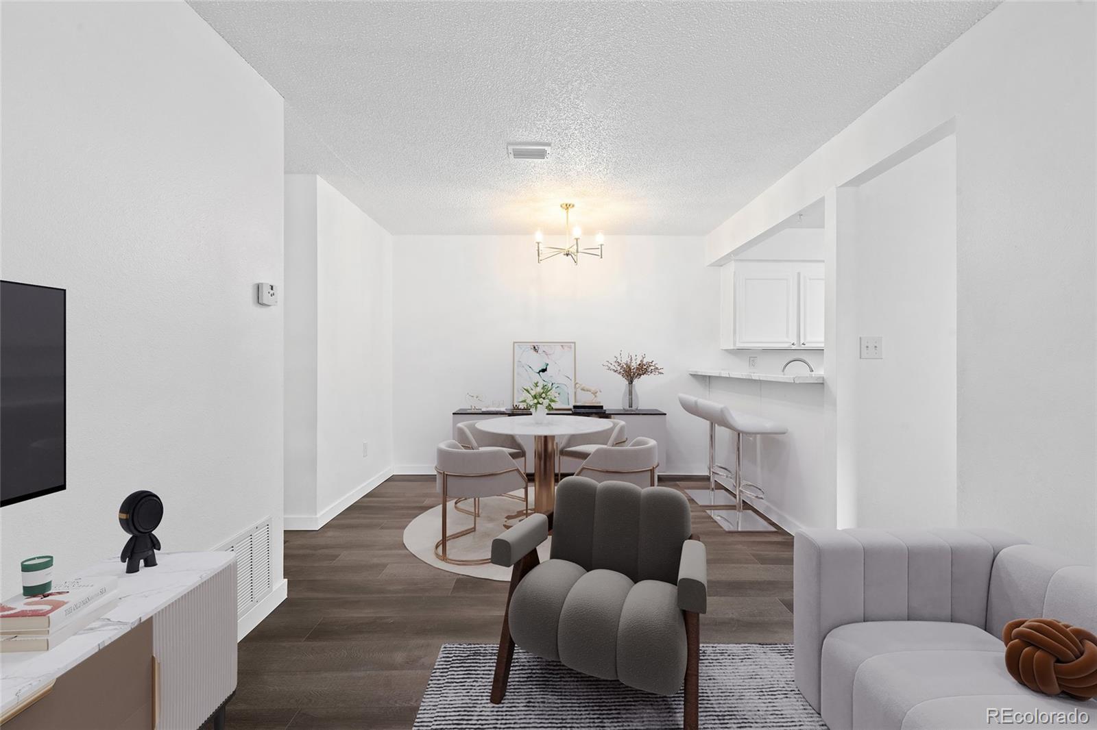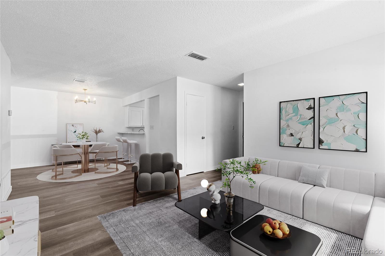 **PRICE IMPROVEMENT** Welcome to a sought after, ground-level unit with Zero stairs, in Southglenn Commons. Modern updates, bright paint and streamlined grey plank laminate floors, gleam throughout this TWO BEDROOM, TWO BATH HOME minutes from C470 and University Blvd. Affordable living close to DENVER UNIVERSITY, Arapahoe High School, and Arapahoe Community College. **With renovations now complete, this home is ready for a new owner.** This spacious home's primary suite, PRIVATE primary 3/4 bath ensuite and walk-in closet, make sharing this open floor plan property a dream. The 2nd updated bathroom is ready for guests or roommates use as well. The entire home boasts clean new white paint, and beautiful new grey plank laminate flooring. The ample kitchen has new laminate countertops, new dishwasher, new stove hood, newly painted cabinets with new pulls, and a separate pantry closet for even more kitchen storage. The HOA covers heat and gas, water, sewer, trash and snow, so you just pay your electric, internet, and streaming service choices. Laundry hookups in the hall laundry closet are ready for your full-size units. The new updated electrical panel, in the adjacent PRIVATE STORAGE CLOSET, is another item to check off in this move-in ready gem. With the community pool and clubhouse within view from the ample parking spaces around this unit, this amazing location with no stairs is a rare find in a ground unit. Add a few stylish stools to the breakfast bar, and your personal touches throughout, and you are home!