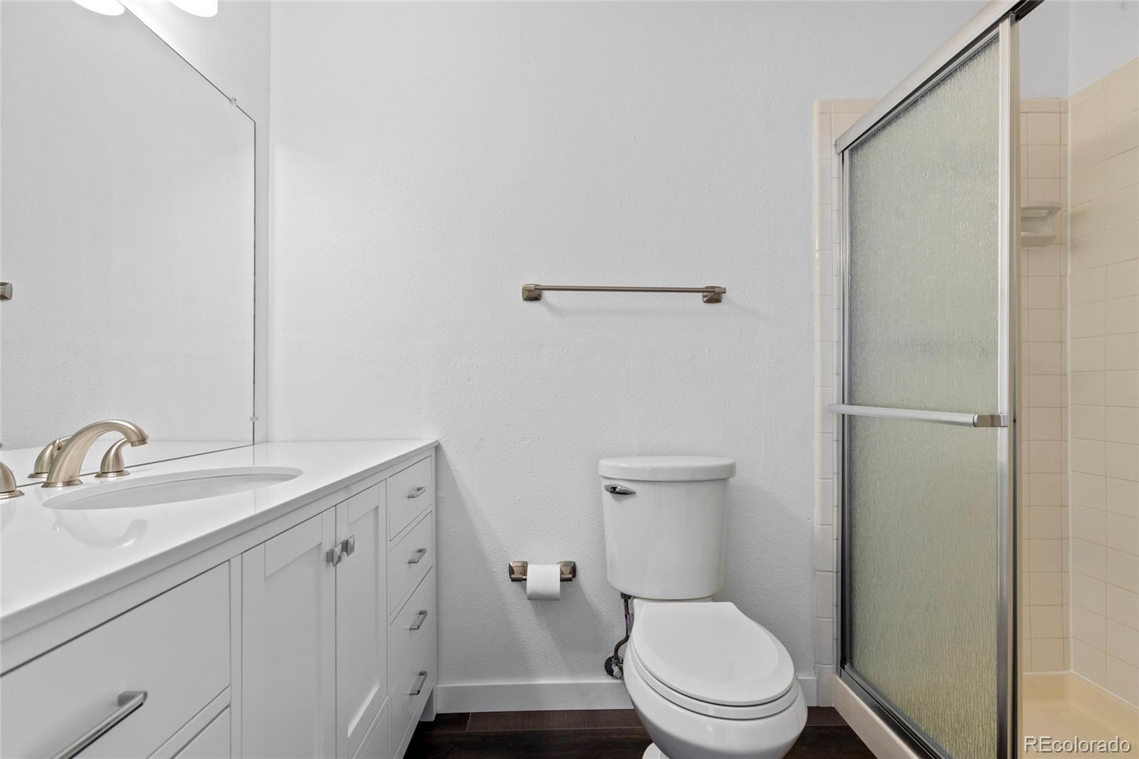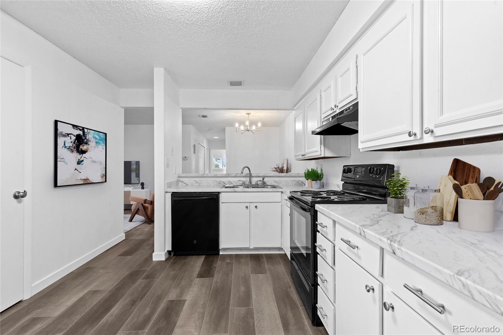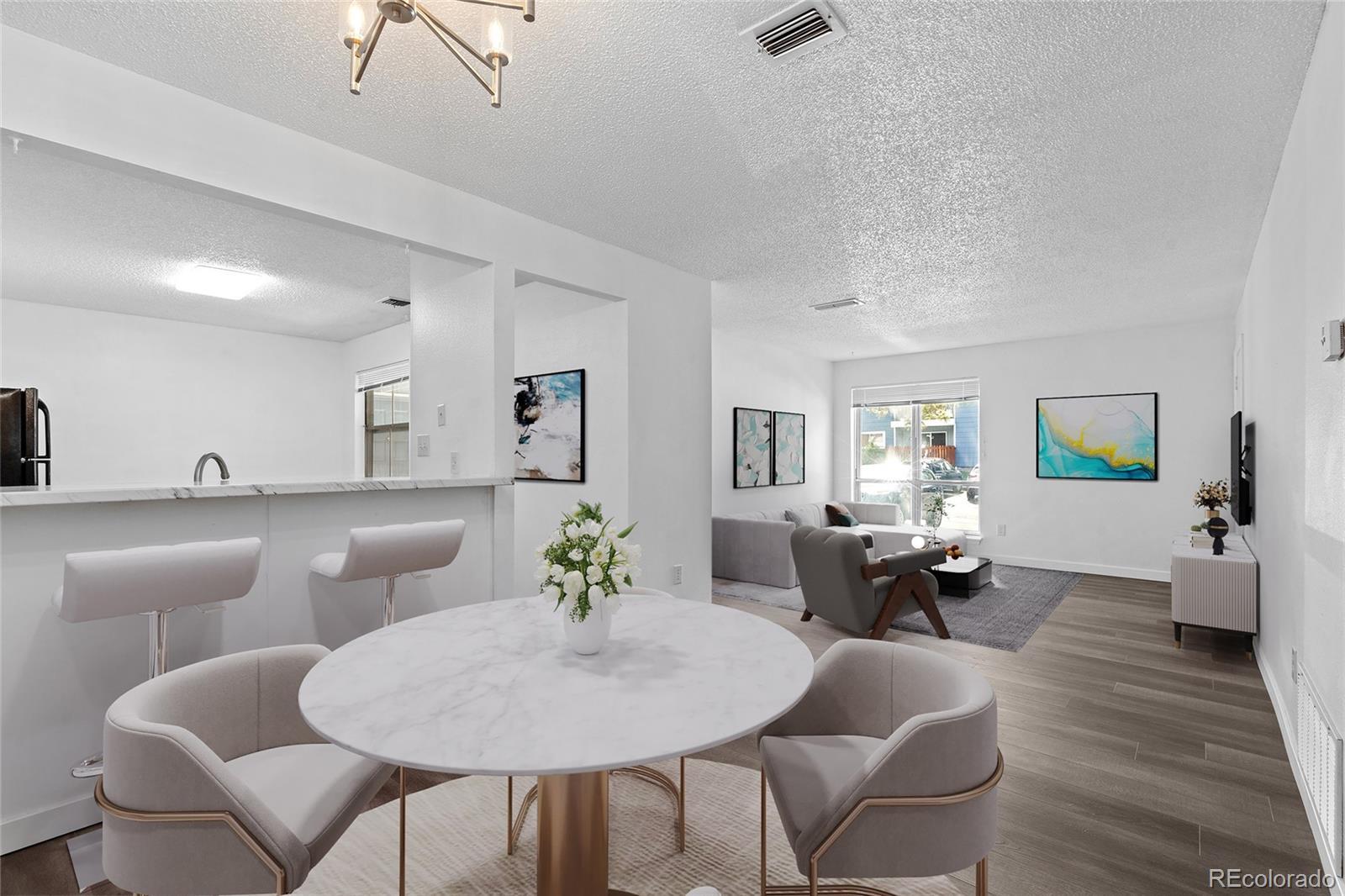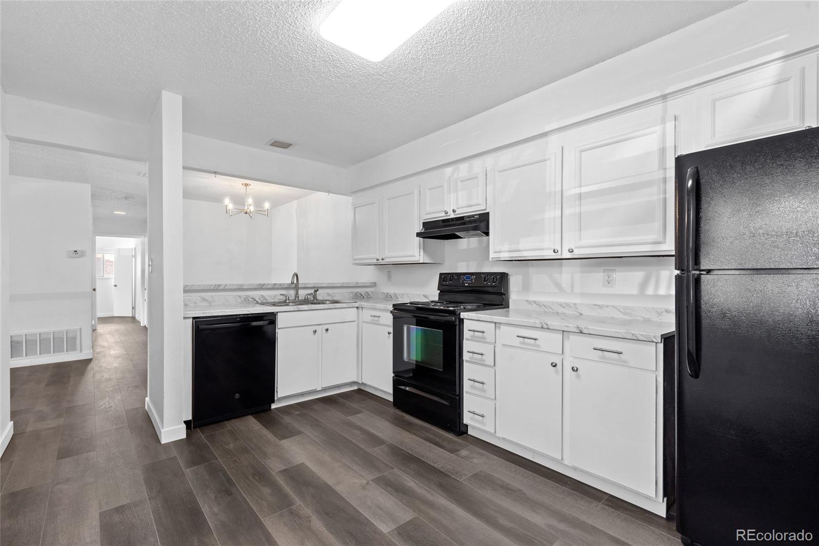 **PRICE IMPROVEMENT** Welcome to a sought after, ground-level unit with Zero stairs, in Southglenn Commons. Modern updates, bright paint and streamlined grey plank laminate floors, gleam throughout this TWO BEDROOM, TWO BATH HOME minutes from C470 and University Blvd. Affordable living close to DENVER UNIVERSITY, Arapahoe High School, and Arapahoe Community College. **With renovations now complete, this home is ready for a new owner.** This spacious home's primary suite, PRIVATE primary 3/4 bath ensuite and walk-in closet, make sharing this open floor plan property a dream. The 2nd updated bathroom is ready for guests or roommates use as well. The entire home boasts clean new white paint, and beautiful new grey plank laminate flooring. The ample kitchen has new laminate countertops, new dishwasher, new stove hood, newly painted cabinets with new pulls, and a separate pantry closet for even more kitchen storage. The HOA covers heat and gas, water, sewer, trash and snow, so you just pay your electric, internet, and streaming service choices. Laundry hookups in the hall laundry closet are ready for your full-size units. The new updated electrical panel, in the adjacent PRIVATE STORAGE CLOSET, is another item to check off in this move-in ready gem. With the community pool and clubhouse within view from the ample parking spaces around this unit, this amazing location with no stairs is a rare find in a ground unit. Add a few stylish stools to the breakfast bar, and your personal touches throughout, and you are home!