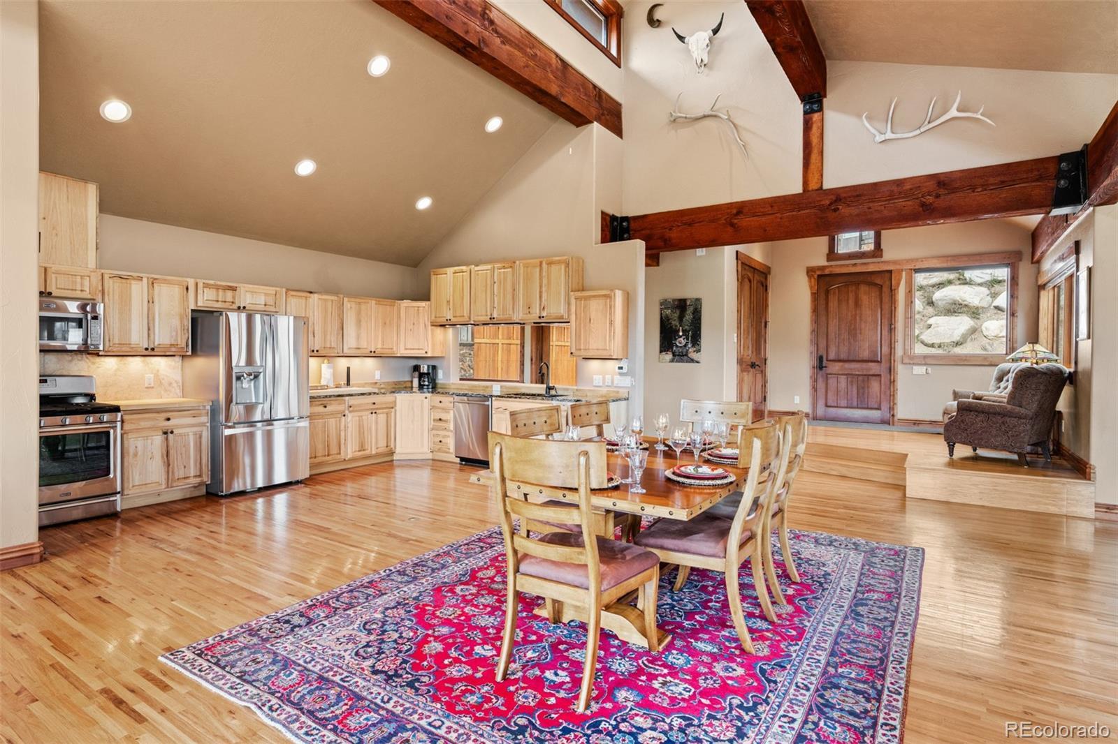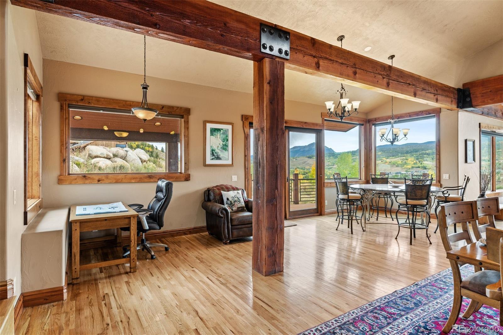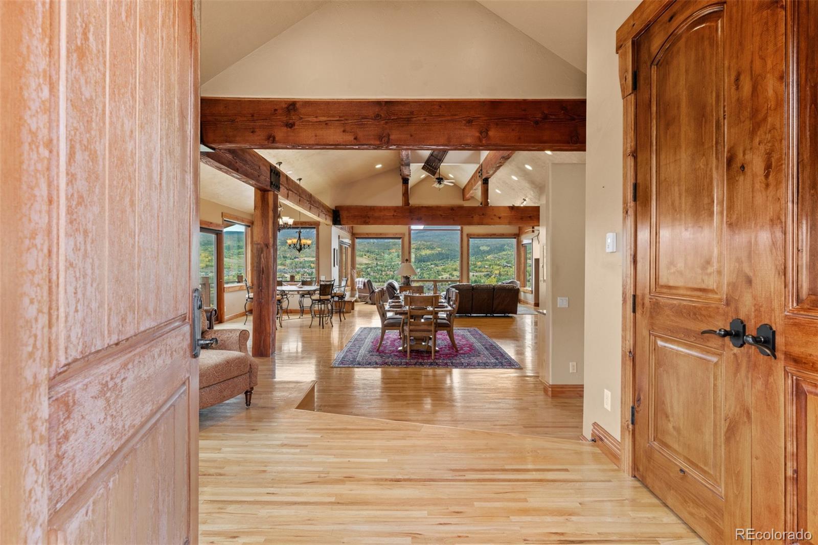 Undoubtedly the most incredible views in Summit County. Sweeping panoramas of the Gore Range visible through oversized windows, surrounded by vibrant golden aspens. This open-concept home showcases a spacious kitchen and living area with soaring vaulted ceilings and a full wall of windows, creating a dramatic space filled with natural light and awe-inspiring scenery. The 3-car garage provides ample storage and protection from snow. The unfinished lower level offers the opportunity to nearly double the home’s size and value. Customize the downstairs to your exact vision with ease. For those seeking even more space and privacy, the adjoining lot is also available for purchase, expanding the property to nearly an acre and a half. Located in Silverthorne’s rapidly growing community, you’ll enjoy easy access to shopping, dining, and everyday conveniences, with even more on the way. World-class skiing is just minutes from Breckenridge, Keystone, and Copper Mountain, with Vail and Beaver Creek a short drive beyond. All of this, plus the big-city amenities and major airport in Denver, are just over an hour away. Private yet convenient, offering unmatched mountain and lake views, this home will literally take your breath away the moment you walk through the front door. Truly a must-see.