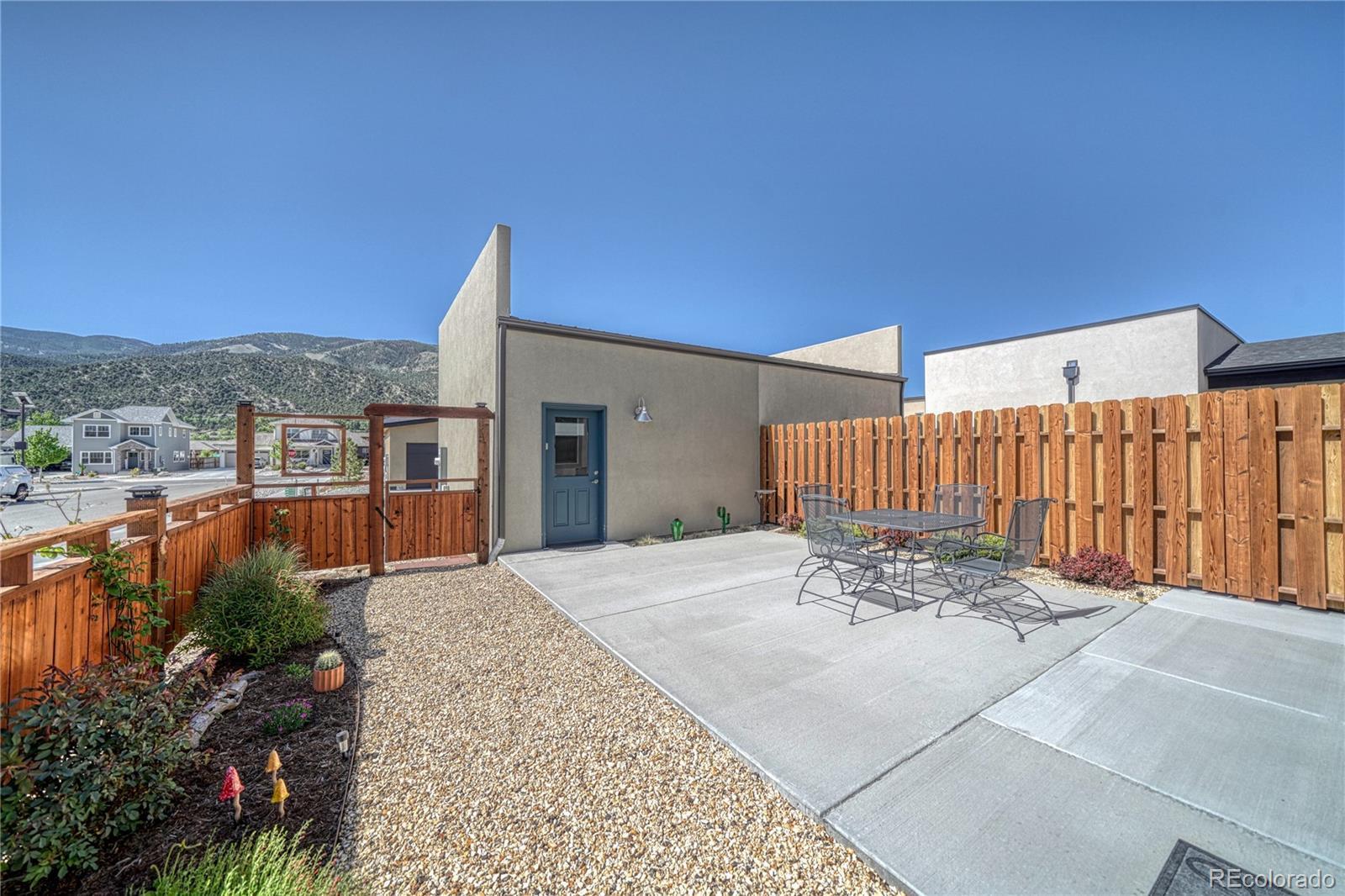 Better than New Duplex Near Salida. This gently lived in modern corner unit was striking to begin with and now has a lovely outdoor living space too! The Sellers are the first occupants and have meticulously landscaped and irrigated the front and back yards. With a border of large boulders, decorative fencing, an attractive assortment of perennial flowers and plants and a large concrete patio, it is an invigorating exterior space to enjoy. Additionally, they've created a second private parking space large enough for a small camper. The interior has a comfortable open concept lower level with high ceilings, and a bedroom and bathroom. The spacious primary suite and the third bedroom and bathroom are found upstairs, both with tremendous mountain views! This property is perfect for full time living while immersing in the community, or, as a part-time "lock and leave" second home. Poncha Springs is a growing town and conveniently located a few minutes from downtown Salida and twenty from Monarch Mountain Ski Area. For more information or to schedule an appointment, please call the listing agent.