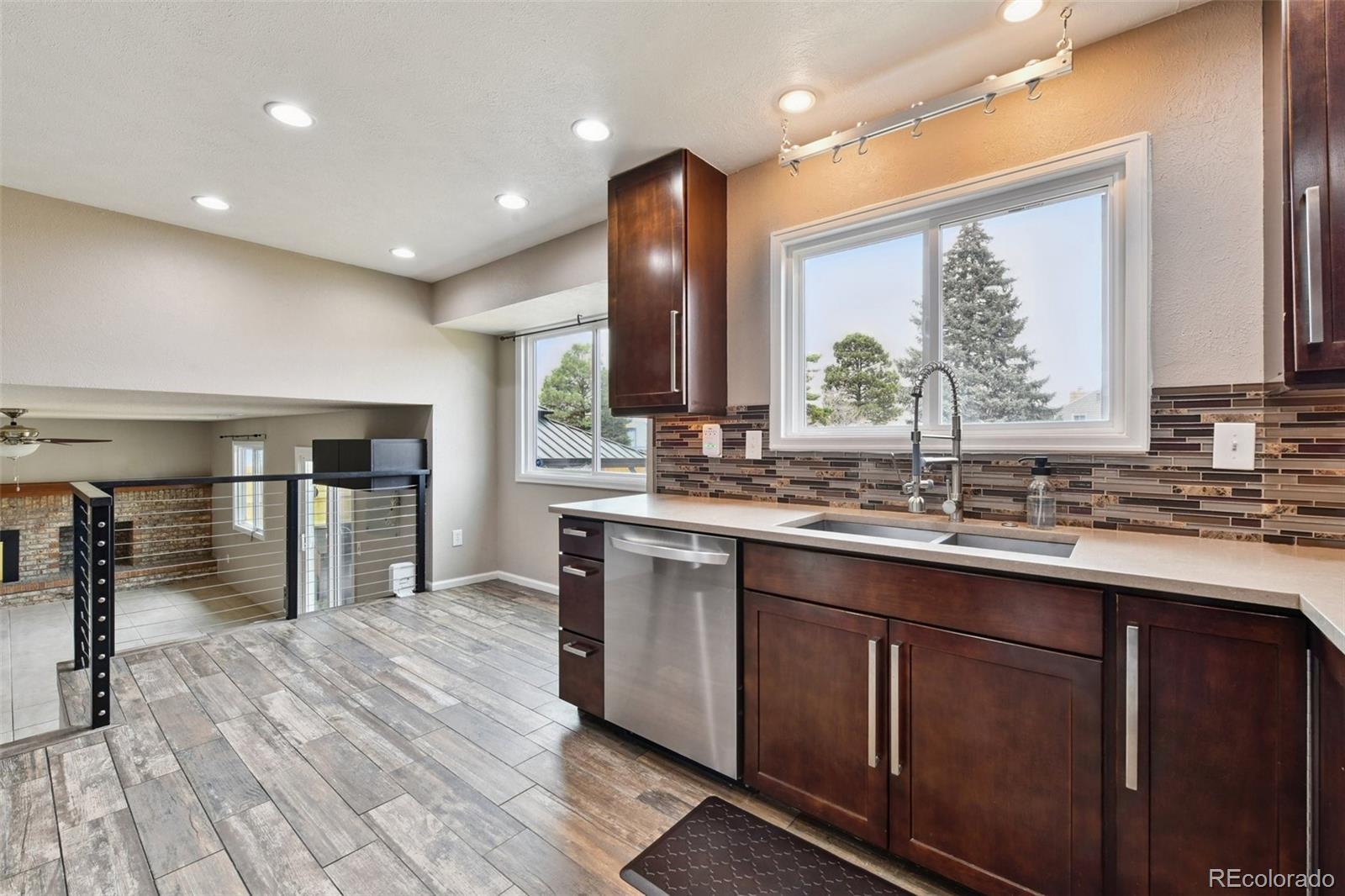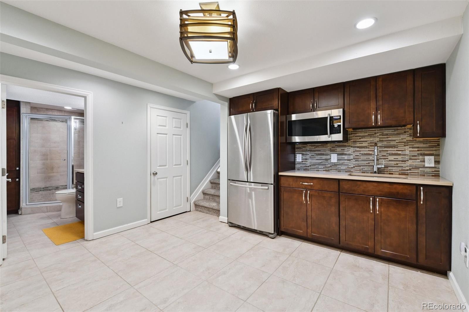 Beautifully updated tri-level home located in a quiet, established Littleton neighborhood. This spacious residence offers 4 bedrooms and 3.5 bathrooms with a functional layout designed for both everyday living and flexibility. All primary bedrooms are located upstairs, creating a private and cohesive sleeping level ideal for families. The main level features an updated kitchen with modern finishes, refreshed bathrooms with upgraded showers, and fresh carpet throughout the home. A newer AC system and a 5-year roof certification provide added peace of mind. The lower level includes a fully finished mother-in-law suite complete with its own kitchenette and egress window, making it perfect for multigenerational living, guests, or potential rental income. The tri-level design provides separation of space while maintaining an open, comfortable flow between living areas. Step outside to beautifully landscaped grounds and enjoy the covered stamped-concrete patio that wraps around the side of the home, an ideal space for entertaining, relaxing, or outdoor dining. The two-car garage offers ample storage and convenience. Situated in the heart of Littleton, residents enjoy a peaceful setting with minimal traffic while remaining close to parks, trails, and open space managed by South Suburban Parks and Recreation. Nearby Downtown Littleton offers charming local restaurants, boutique shopping, and community events, combining small-town character with modern convenience. Move-in ready with thoughtful updates, flexible living space, and an exceptional location, this home offers comfort, versatility, and lasting value.