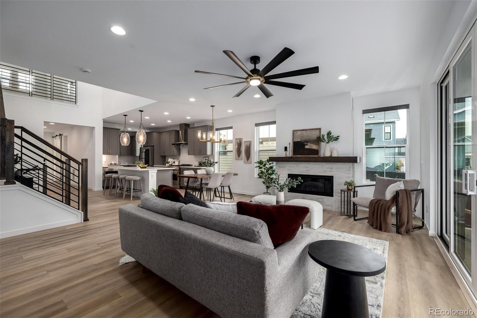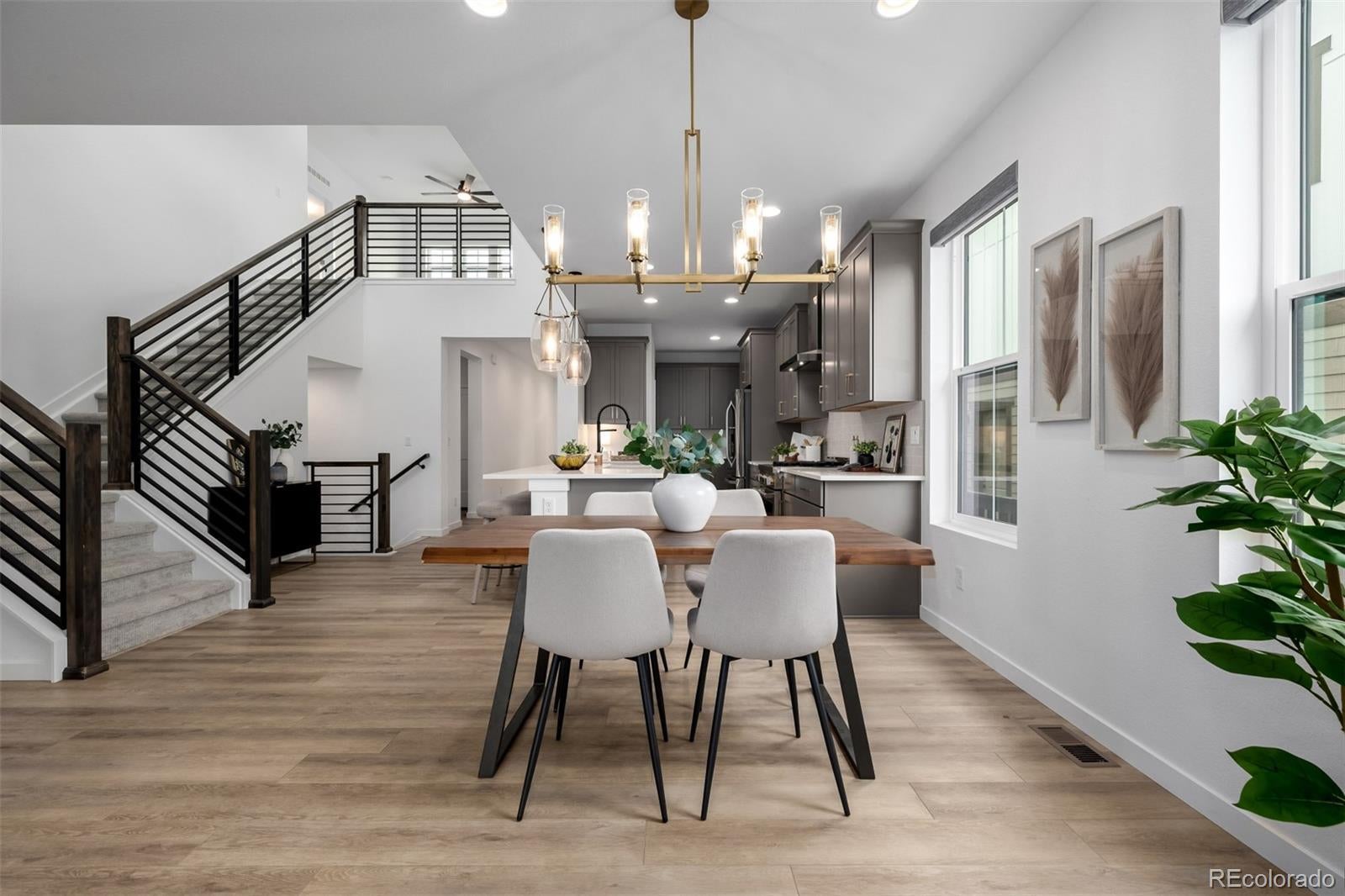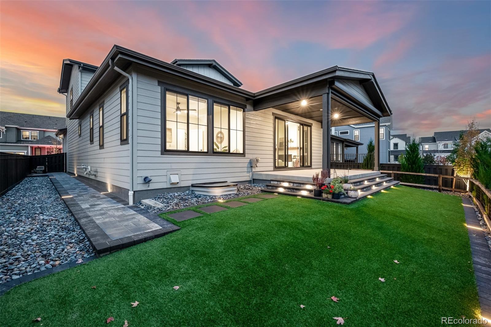 Welcome to 11238 Golden Hour Avenue, a stunning 3,930 square foot residence that masterfully balances elegance and smart design. This exquisite home features three bedrooms, loft and an office, alongside three beautifully appointed bathrooms. The primary bedroom is conveniently located on the main level, offering both luxury and accessibility. Every detail in this home reflects thoughtful design, from remote control blinds and upgraded appliances to designer horizontal railings—truly, nothing was overlooked in its creation. Nestled within the picturesque Solstice Community, the property sits on a generous 5,706 square foot lot. The outdoor space showcases an investment of over $55,000 in immaculate landscaping with xeriscape in the backyard with artificial turf, designed to be a sanctuary of beauty and tranquility. Enhanced by a $9,000 outdoor electric patio shade, the backyard is perfect for serene relaxation or entertaining guests. Over $7,000 in interior lighting and ceiling fans plus over $12,000 in blinds throughout the home. Not to mention all the upgrades completed when building such as horizontal railing, primary bedroom entrance to Laundry Room, Jenn Air Appliance Package with Smart Cube Refrigerator, Upgraded cabinets, upgraded flooring, upgraded tile and more! Inside, you'll find sophisticated lighting from Urban Lights, creating an atmosphere of refined elegance. The community enriches your lifestyle with amenities such as a resort-style pool, state-of-the-art gym, the Highline House, Pickleball courts, and extensive walking trails, surrounded on three sides by the natural beauty of Chatfield Park. This home embodies an unparalleled living experience in Littleton, CO, offering both luxury and a connection to nature's finest elements. This home has endless upgrades that you can now enjoy!