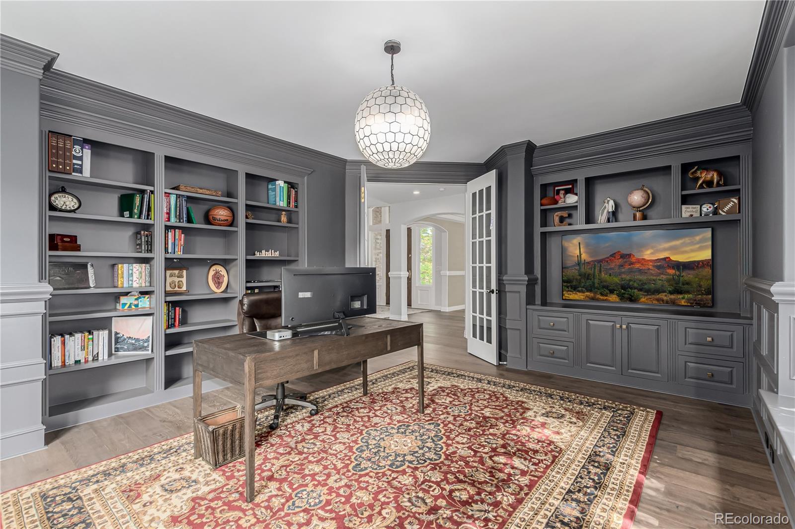 An extraordinary estate in The Preserve, where timeless elegance meets modern luxury! From the grand foyer, the main level flows seamlessly into the inviting living room with fireplace, a private office with custom built-in benches, and a spacious family room with soaring ceilings and double doors that open to the outdoor patio. The gourmet kitchen is a chef’s delight, showcasing an oversized island with prep sink, breakfast nook, walk-in pantry, and a butler’s pantry that connects effortlessly to the formal dining room for elegant entertaining. Throughout the home, you’ll find luxury finishes too numerous to list, each thoughtfully chosen to create a sophisticated yet comfortable atmosphere. Upstairs, you’ll find four spacious bedrooms. The principal suite is a true retreat, offering a sitting area, custom walk-in closet, and a spa-inspired bath with steam shower, soaking tub, dual vanities with makeup station, and plantation shutters. The second bedroom includes its own en-suite bath, while two additional bedrooms are connected by a Jack-and-Jill bath. Expansive windows throughout invite natural light and frame the lush, mature landscaping of the nearly .8-acre lot. An invisible pet fence adds convenience for pet lovers. The finished basement extends the living space with three additional bedrooms, a wet bar, generous storage, and a versatile bonus room currently used as a children’s playroom. Outdoors, enjoy the pergola with built-in gas grill, perfect for entertaining year-round. A four-car garage with electric vehicle charger and a new roof (2022) ensure peace of mind for years to come. Situated in the prestigious Preserve community, residents enjoy exclusive amenities including a competition-sized pool, tennis courts, basketball court, picnic pavilion with outdoor grills, and access to the Highline Canal Trail and 55-acre Marjorie Perry Nature Preserve. This remarkable home blends elegance, comfort, and Colorado living at its finest.