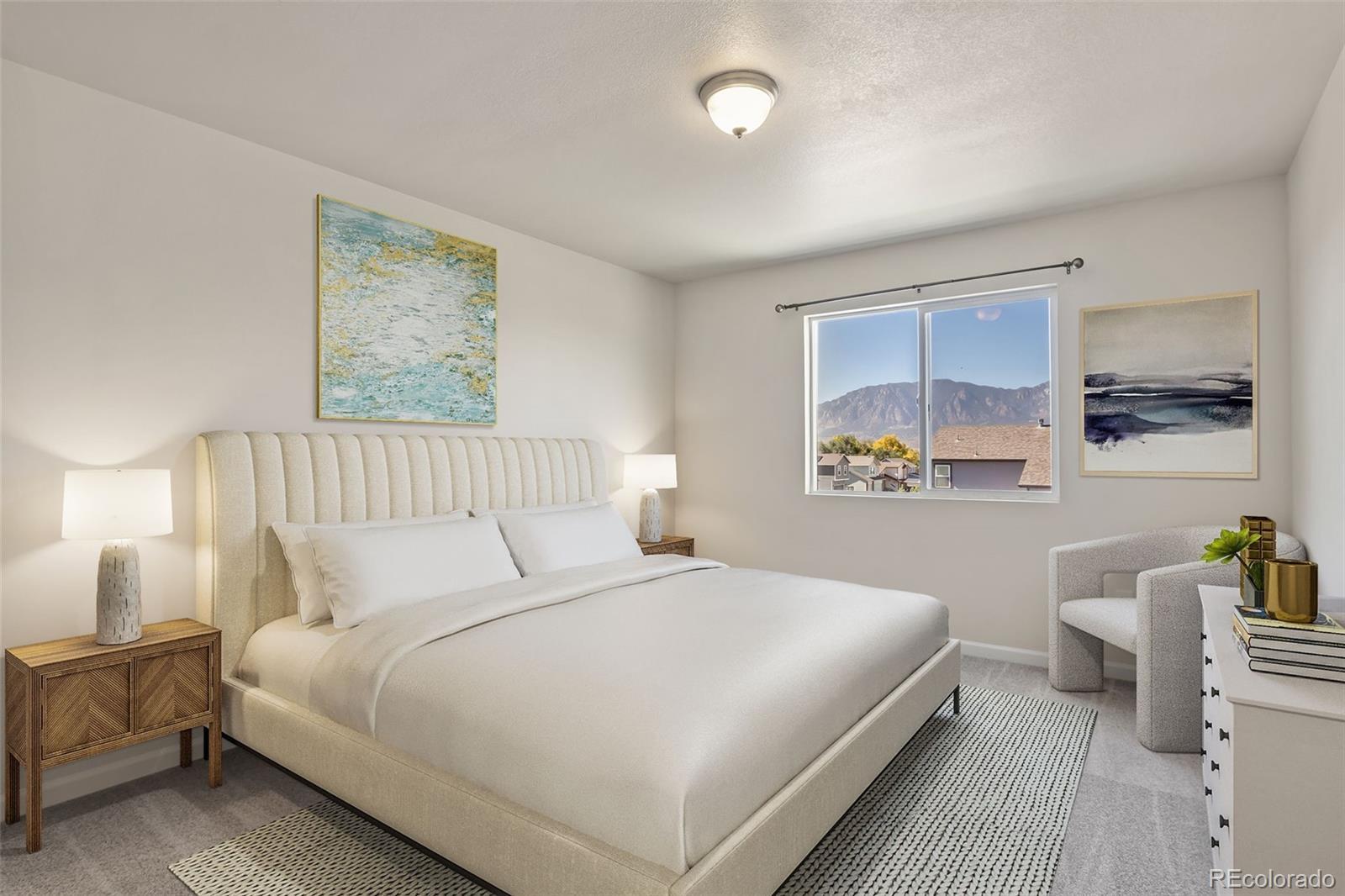 Welcome home! Located just minutes from Fort Carson, Peterson SFB, shopping, quick hop onto i25 and dining, this beautifully maintained home offers convenience and comfort in one perfect package. Step inside to find a bright, open layout with plenty of natural light and modern finishes throughout. Upstairs, the primary suite features stunning Front Range views, creating the perfect spot to unwind after a long day. The finished basement flex room offers endless possibilities, use it as a 4th bedroom, home office, guest suite, or workout space, complete with its own attached bathroom and laundry area on the same level for added convenience. Enjoy Colorado living at its best with easy access to bases, trails, and local amenities, all while coming home to low maintenance living in a peaceful community setting. Whether you’re looking for space, views, or location, this one checks all the boxes!