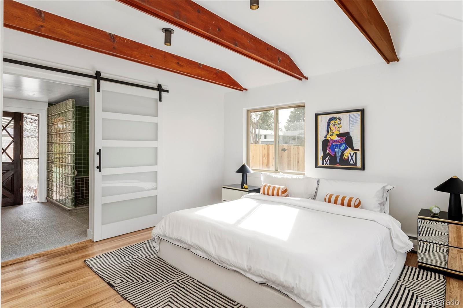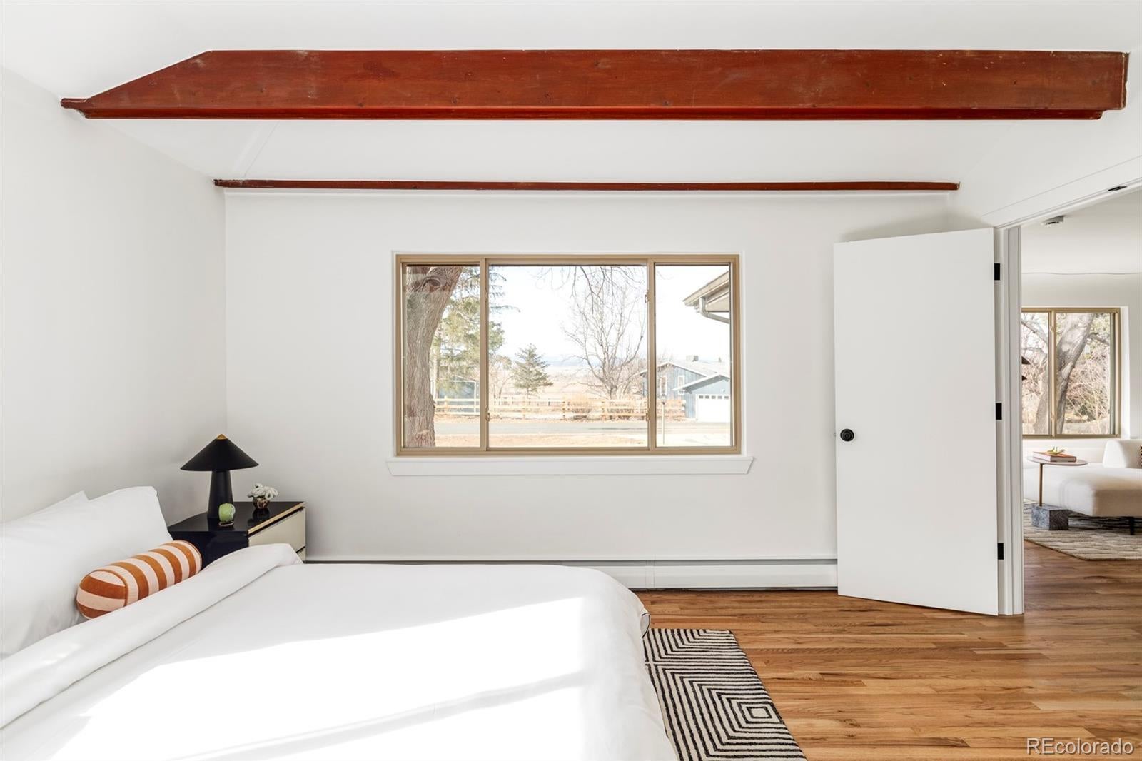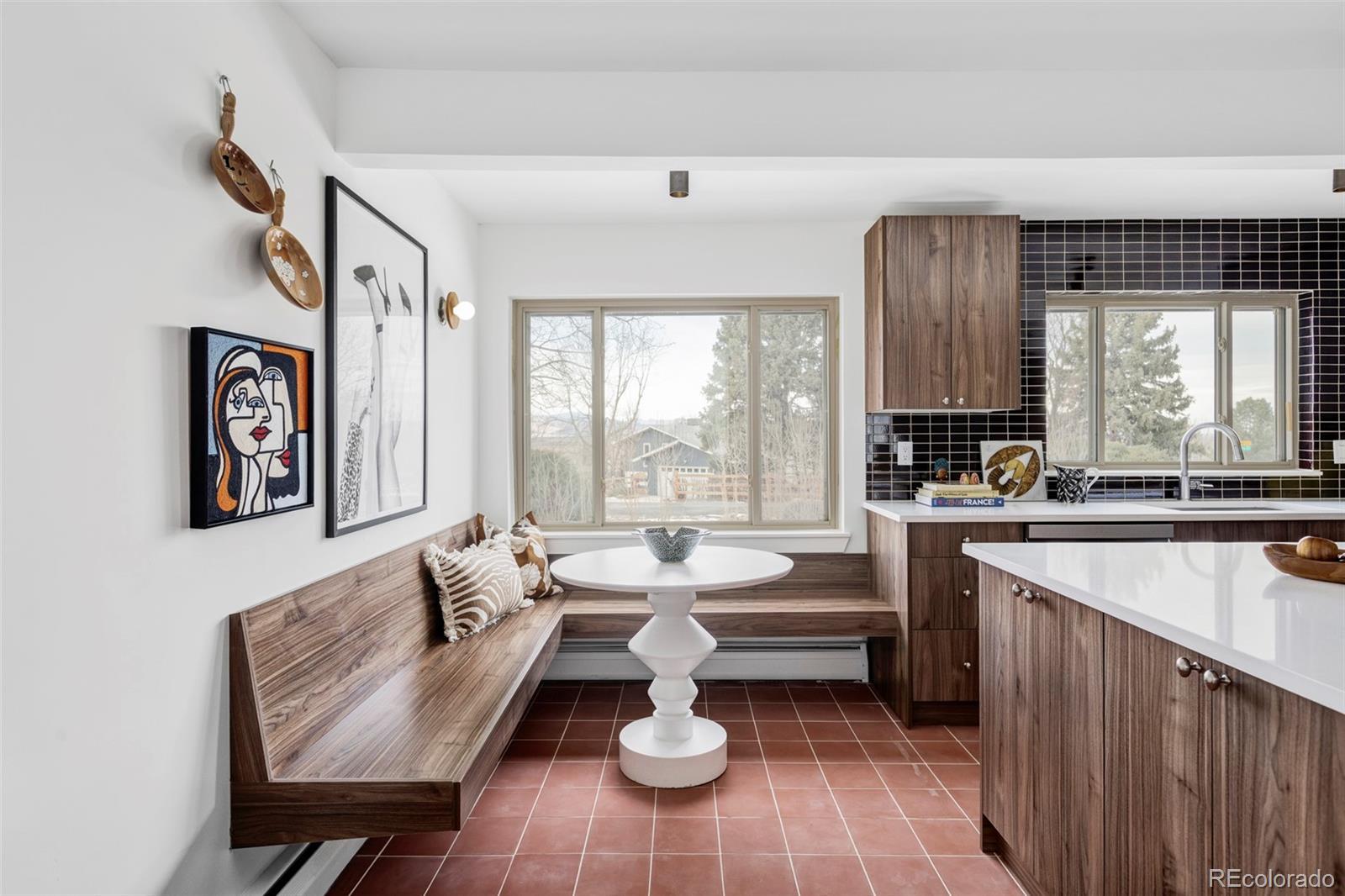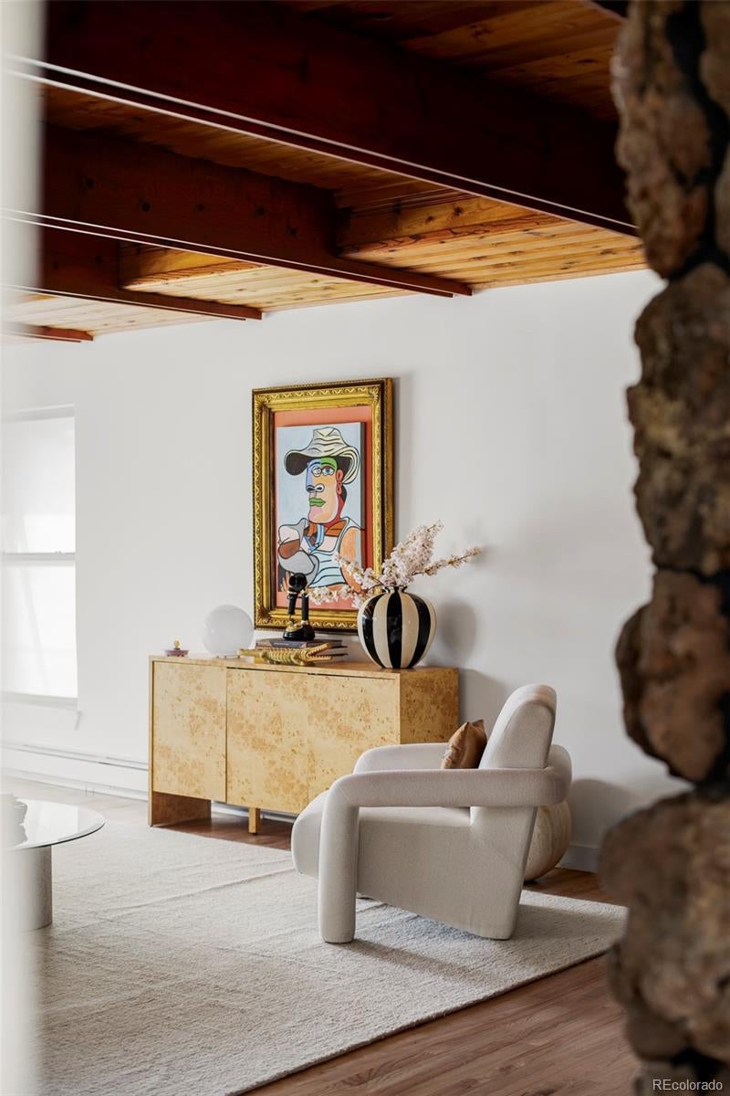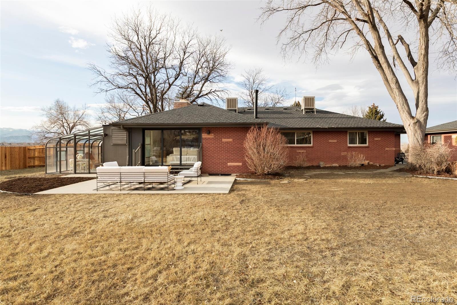 Welcome to this reimagined mid-century modern gem in Lafayette’s coveted Stonehenge neighborhood—a serene enclave of large lots and distinctive homes. This mostly single-level home offers 4 spacious bedrooms, 2.5 baths, and a sprawling layout on a rare half-acre lot with stunning mountain views. Exquisite details shine throughout: handcrafted custom tile, bespoke Swedish-inspired carpentry, and soaring wood beams that define authentic mid-century style. The living room dazzles with dramatic beams, a massive raw stone fireplace, and three-panel cascading sliding doors for seamless indoor-outdoor living—perfect for Colorado’s sunny days and effortless entertaining. The chef’s kitchen honors mid-century roots with sleek walnut-tone cabinets, rich molasses tile, new stainless appliances, and a cozy corner banquette ideal for family meals or coffee with views. The luxurious primary suite is a true retreat: spa-like walk-in shower, custom millwork, and direct access to a sun-drenched solarium and private sauna. Recent upgrades provide peace of mind and efficiency: a brand-new heating/cooling system and a new roof ensure worry-free living for years to come. Just 10 miles from Boulder and minutes from Lafayette, enjoy top schools, shopping, dining, trails, and Colorado lifestyle perks. Stonehenge’s warm, family-like atmosphere—friendly neighbors and regular neighborhood gatherings—makes it easy to feel right at home quickly in this close-knit community. Don’t miss this rare mid-century opportunity. Schedule your showing today!