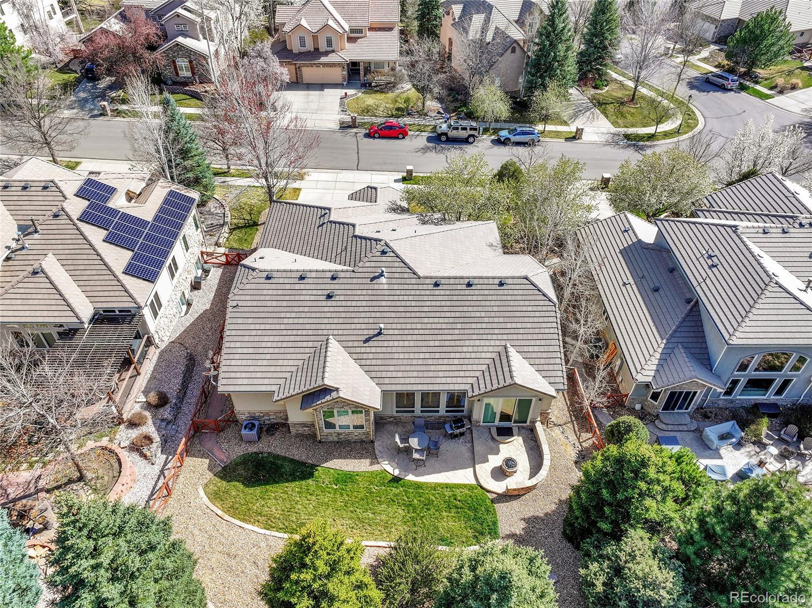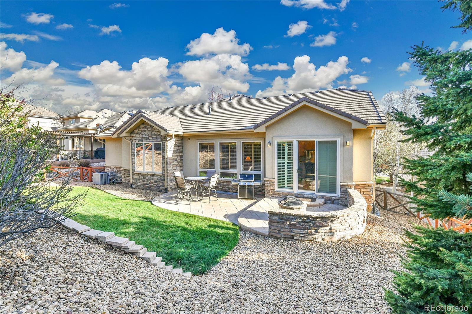 Welcome to Easy Main Floor Living in Ranch Reserve! You’ll fall in love with this bright and open ranch-style home nestled in the heart of the exclusive Ranch Reserve neighborhood. From the moment you walk in, you’ll notice the thoughtful upgrades and beautiful finishes - hardwood floors, new Hunter Douglas wood shutters on the main level, and a spacious main-floor study with elegant French doors. The great room is truly the heart of the home, featuring soaring ceilings and a cozy gas fireplace, perfect for relaxing or entertaining. The kitchen is a dream—granite countertops, a center island, and tons of cabinet and counter space—all designed to make gatherings easy and enjoyable. A new sliding glass door opens to the backyard, adding both style and function. The main-level owner’s suite is your private retreat with high ceilings, crown molding, a luxurious 5-piece bath including a jetted tub, oversized shower with bench, and a walk-in closet that checks all the boxes. Head downstairs to a professionally finished basement built for fun and functionality! You’ll find a large family room with built-in surround sound, a wet bar, a home theater, a wine cellar, a 3/4 bath, and two additional bedrooms—one of which has been transformed into a furnished gym. This home is packed with practical upgrades, including a new exterior man door on the garage, new garage doors and openers with built-in WiFi and camera capabilities, and a built-in central vacuum system for added convenience. The furnace is new July 2025, A/C unit installed 2017, and the water heater replaced in 2023, this home has new mechanics and great bones. Step outside to a peaceful backyard oasis with mature landscaping, a stamped concrete patio, and a built-in gas firepit and seating wall—just imagine the summer evenings you’ll enjoy out here. Don’t miss this rare opportunity to live in one of the most sought-after neighborhoods with convenient access to everything. Welcome home!