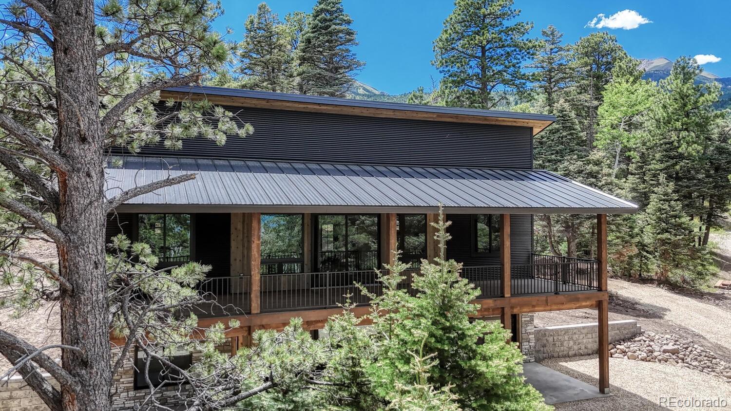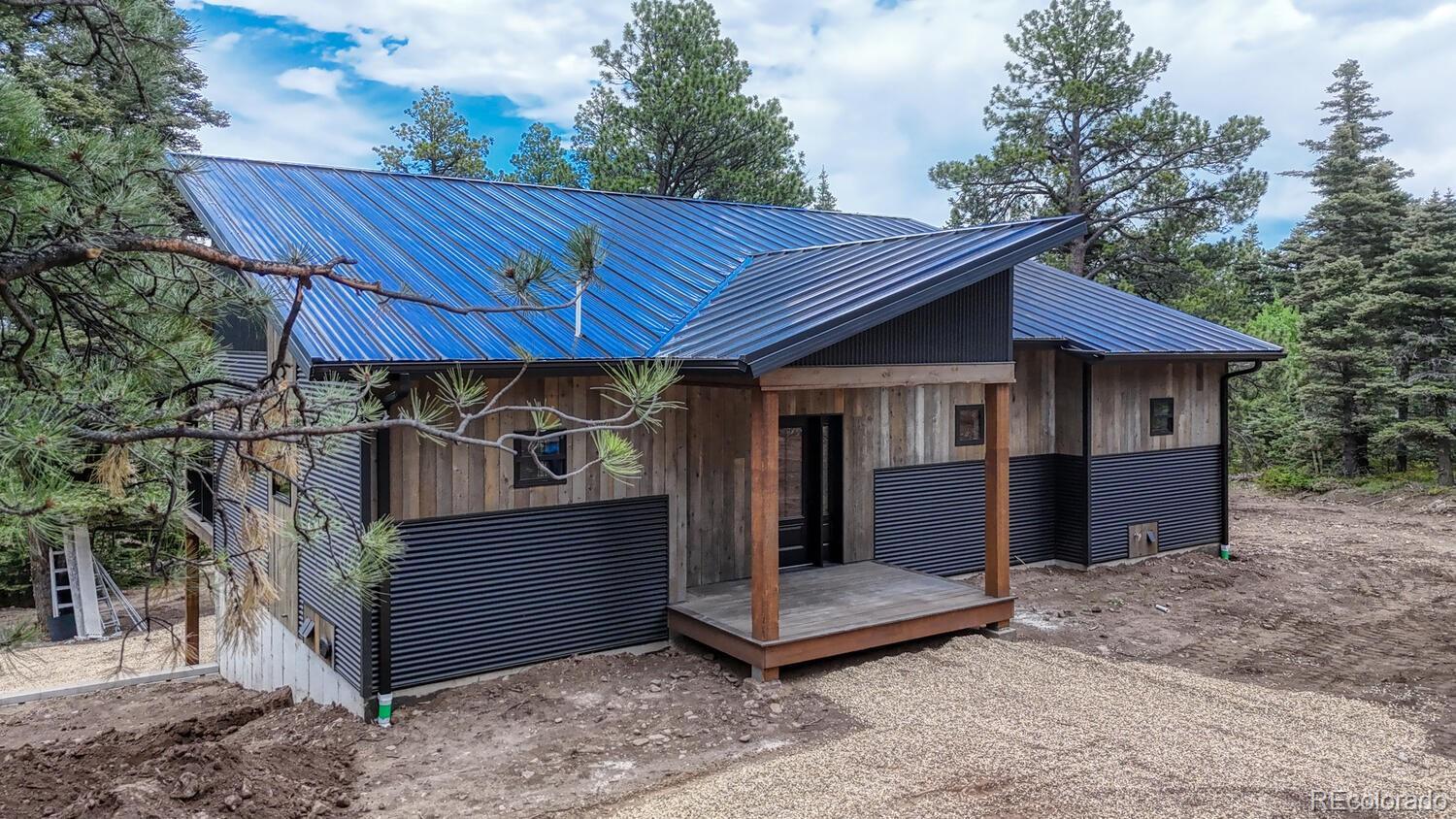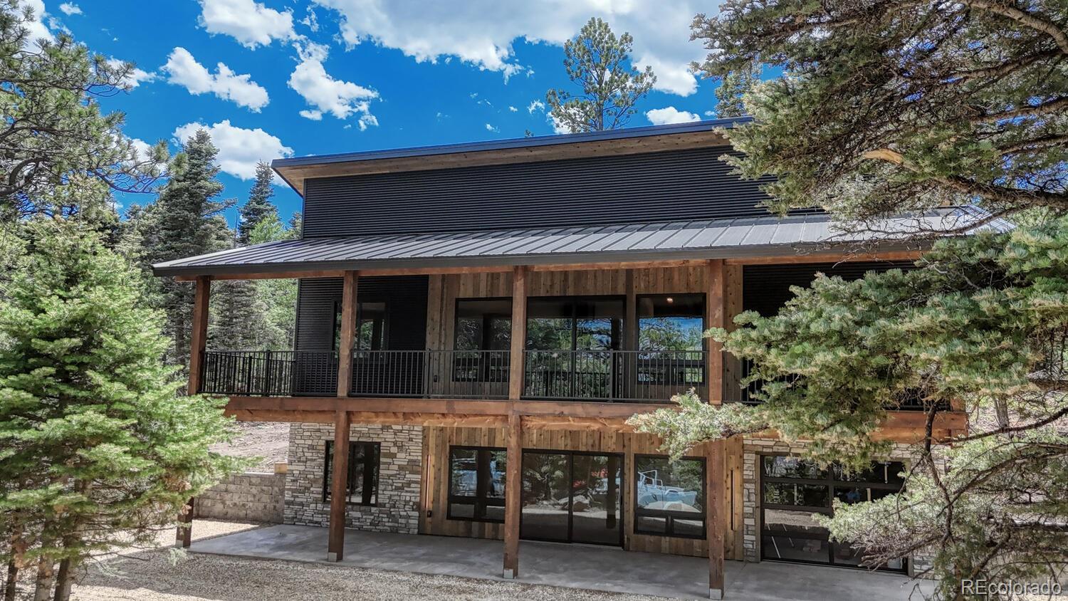 Modern mountain home tucked into the pines on 1.3 acres on Westcliffe's desirable west side. This brand-new 3 bed, 3 bath home blends sleek design with natural finishes-wood and metal siding, stone, a metal roof, and a walkout basement. Inside, the main level features an open layout with vaulted wood ceilings large windows, large sliding glass door, quality solid wood doors and trim, and radiant floor heat. The kitchen offers beautiful two tone cabinetry, granite countertops, quality appliances, island, and custom vent hood. The main-level primary suite includes a large bath with double vanity and custom walk-in shower. Another bedroom and full bath complete the main level. From the open main level, step onto the expansive 525 sq foot covered Trex deck and enjoy the wooded setting. The walkout basement includes a bedroom, bath with walk-in shower, and a spacious living area wired for a potential bar or kitchenette-ideal for guests or entertaining. Covered patio below adds an additional 525 sq feet of outdoor living space. One-car garage with modern glass-panel door and room for storage or workshop. Minutes to outdoor adventure and the expansive Sangre De Cristo Mountains.