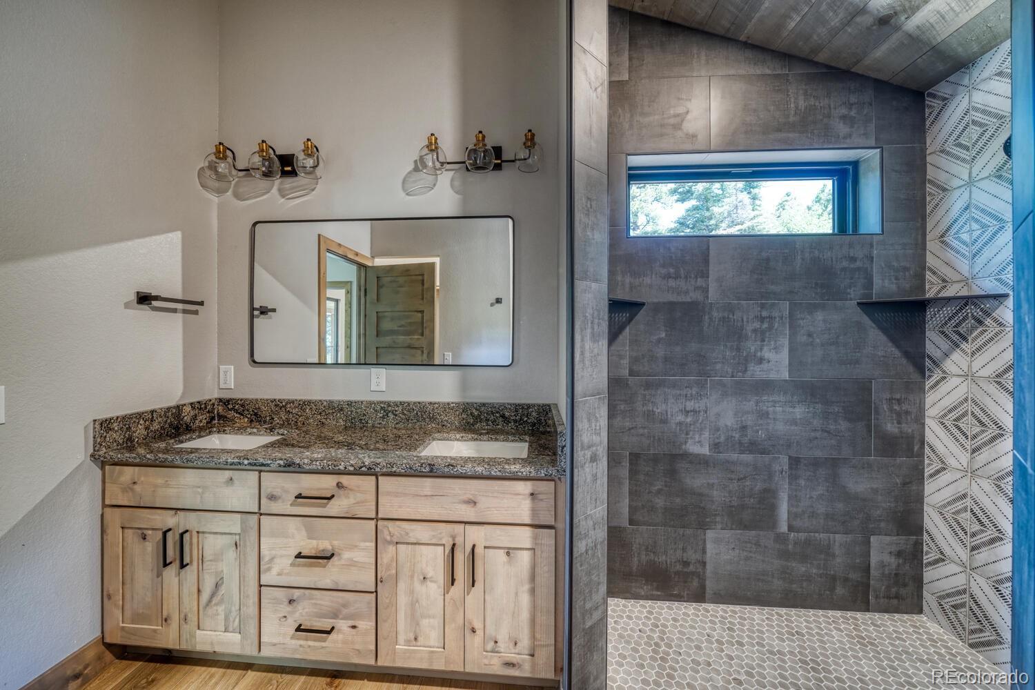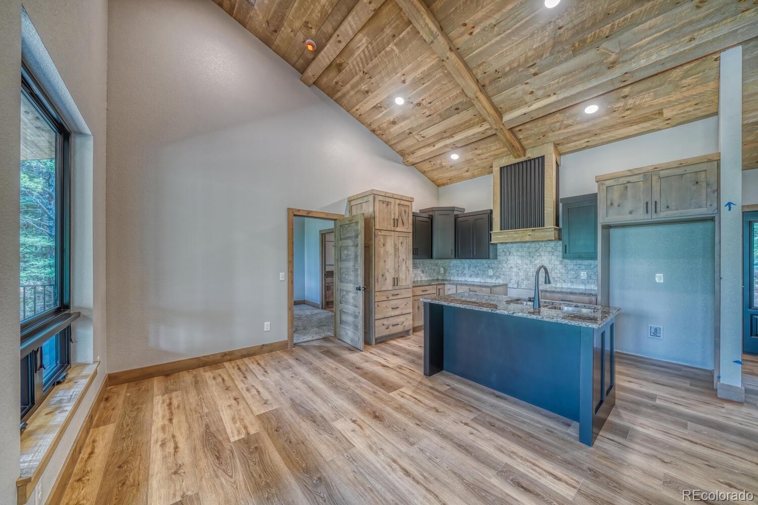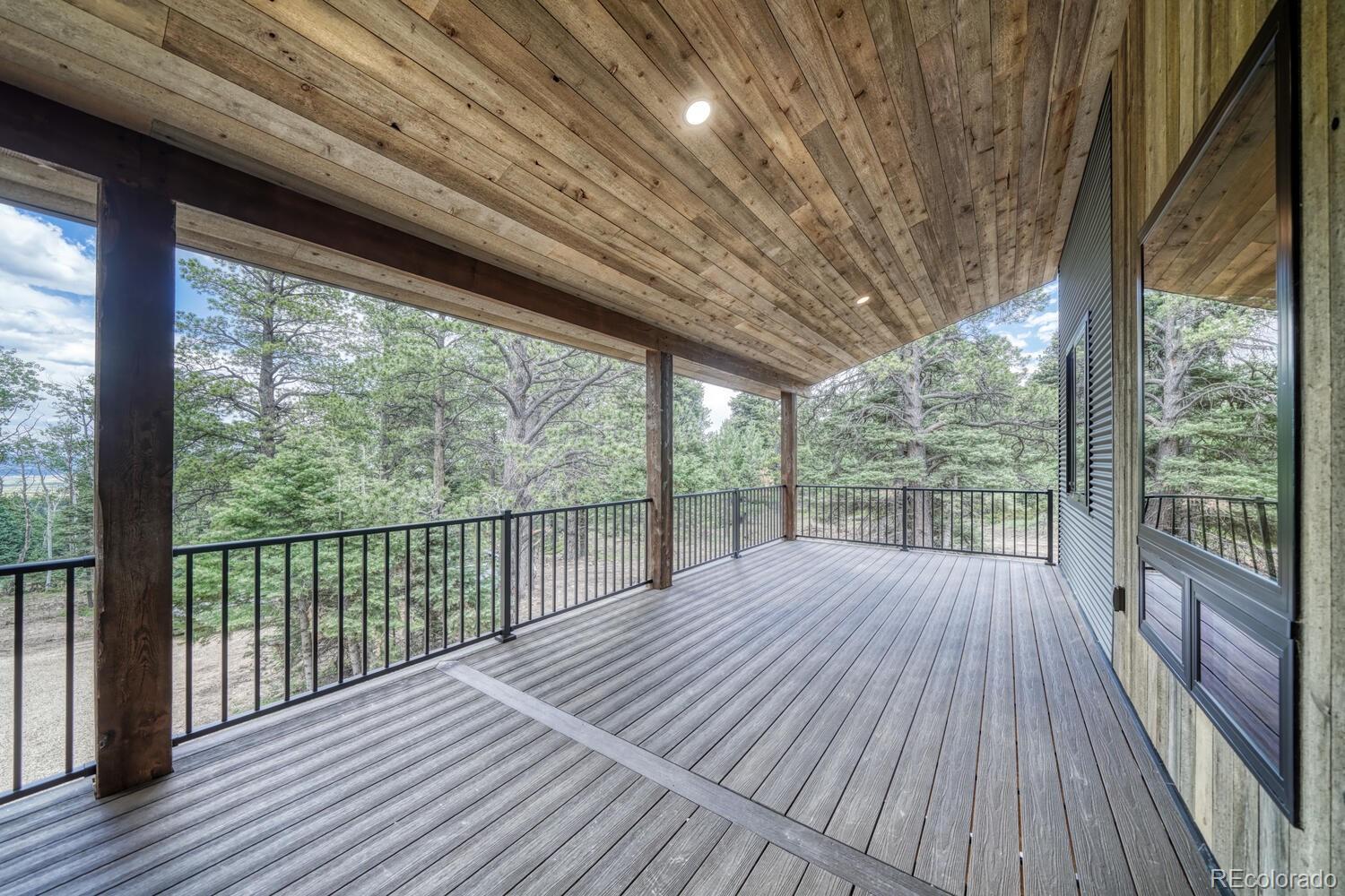 Modern mountain home tucked into the pines on 1.3 acres on Westcliffe's desirable west side. This brand-new 3 bed, 3 bath home blends sleek design with natural finishes-wood and metal siding, stone, a metal roof, and a walkout basement. Inside, the main level features an open layout with vaulted wood ceilings large windows, large sliding glass door, quality solid wood doors and trim, and radiant floor heat. The kitchen offers beautiful two tone cabinetry, granite countertops, quality appliances, island, and custom vent hood. The main-level primary suite includes a large bath with double vanity and custom walk-in shower. Another bedroom and full bath complete the main level. From the open main level, step onto the expansive 525 sq foot covered Trex deck and enjoy the wooded setting. The walkout basement includes a bedroom, bath with walk-in shower, and a spacious living area wired for a potential bar or kitchenette-ideal for guests or entertaining. Covered patio below adds an additional 525 sq feet of outdoor living space. One-car garage with modern glass-panel door and room for storage or workshop. Minutes to outdoor adventure and the expansive Sangre De Cristo Mountains.