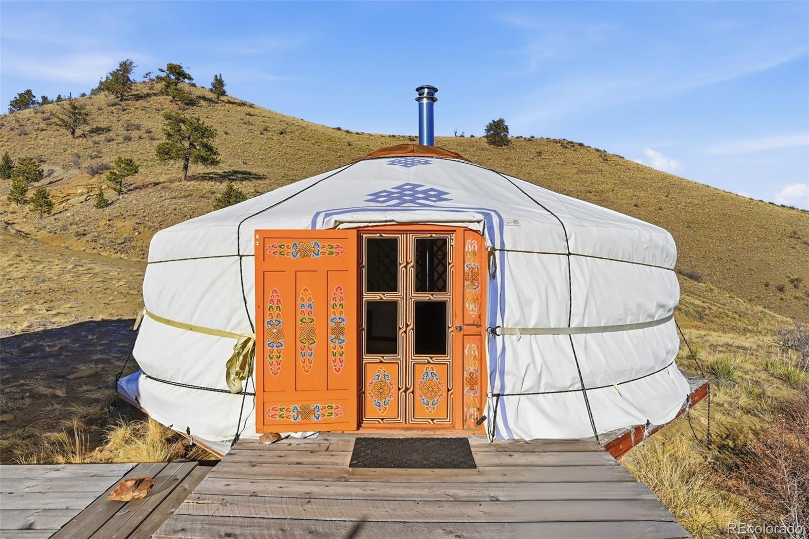 Discover your mountain escape on this outstanding gated 35-acre lot offering a peaceful retreat and outstanding views of the mountains. This expansive property offers 360 degree views from the top of the hill and provides ample space and multiple options for creating your mountain cabin. There is an established build site that already has a well, electricity and septic installed. You can also enjoy the private campsite where you can unwind right away in the mini home with a kitchen and bathroom. The insulated yurt with a fireplace offers a cozy place to sleep and relax. Located in the heart of Park County, this lot is close to the recreation and trails located throughout Pike and San Isabel National Forests. It is also just a short drive to nearby reservoirs, fly fishing streams, and endless outdoor activities. Enjoy the charming town of Fairplay and easy access to Breckenridge for world class skiing or rafting in Buena Vista. This property offers the best of Colorado’s mountain living with modern conveniences nearby. Photos include renderings of the proposed home that was being planned for construction on the property.