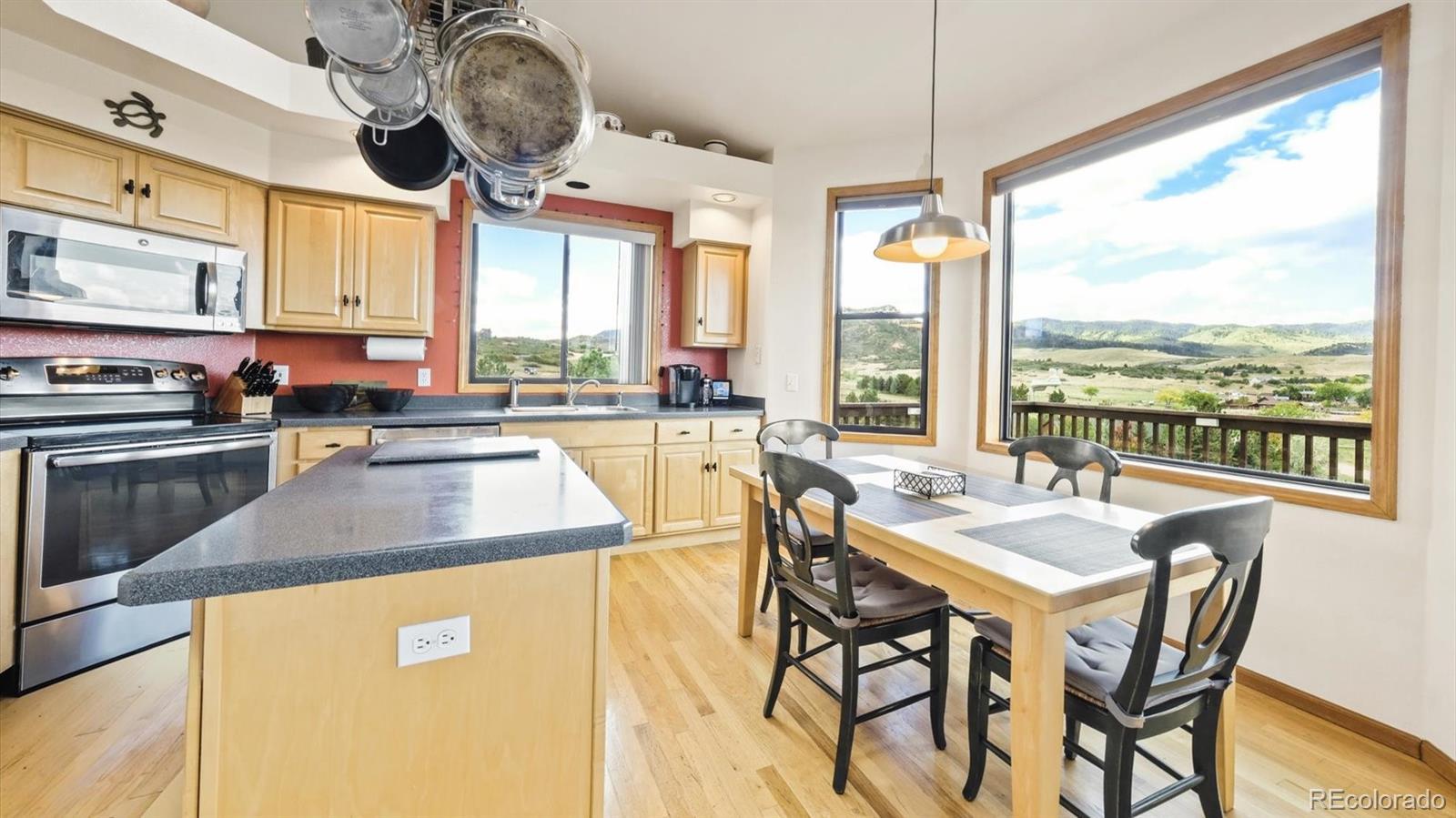 Exceptional Sedalia Home in Indian Creek Ranch! Stunning Unobstructed Views! Fully Fenced Horse property providing the perfect blend of seclusion & convenience! This incredible property has been meticulously maintained by the original owners! Upon entering the home, you are welcomed by the bright & light Living & Dining area, where you immediately stop to take in the views of Wildcat Mountain through the large Picture Window! As you make your way to the well appointed eat-in Kitchen and open concept Family Room, you again stop to take in the incredible views from each and every window. The Kitchen & Family Room features Vaulted Ceilings, Built-ins and a cozy Gas Fireplace! From there you can explore the expansive Deck, where you can enjoy the amazing beautiful Colorado Sunsets and the Seasonal Postcard Views! The spacious main floor Primary Suite w/high ceilings and direct Deck access is the perfect retreat to relax. Enjoy the remodeled 5 pc bath w/large Soaker Tub & Walk-In Closet. The 2nd floor offers 2 nice sized Bedrooms with a Jack & Jill bath. The fully finished Walkout Basement provides the ideal area for Entertaining and Family Night with a full Wet Bar, large Game Room & Home Theater area! The 3/4 bath contains a spa like Steam Shower. The 4th Bedroom & Hobby Room completes the area. The Morton Barn is state of the art, highlighted by its 3 - 12 X 12 stalls equipped with Nelson Heated Waterers, 12 X 12 Tack Room & high strength cement floor. There is plenty of room for your Farm Equipment & Toys. Indian Creek Ranch is known for its amenities which include a Clubhouse, Playground & Park area, Horse Arena & Round Pen. Miles of Hiking & Riding Trails throughout the neighborhood! Close to Pike NF, Rampart Range & Deckers! Just 15 min to Castle Rock and 25 min to DTC. NEW 2024: James Hardie No Maintenance Siding, Marvin Fiberglass Windows & Rear Exterior Doors NEW: 2019 GAF Shingle Roof NEW: 2020 Carrier Furnace 2025: New Septic Tank. Welcome Home!