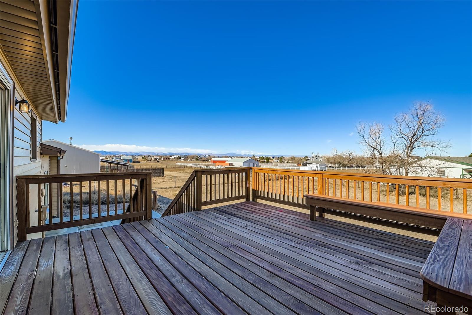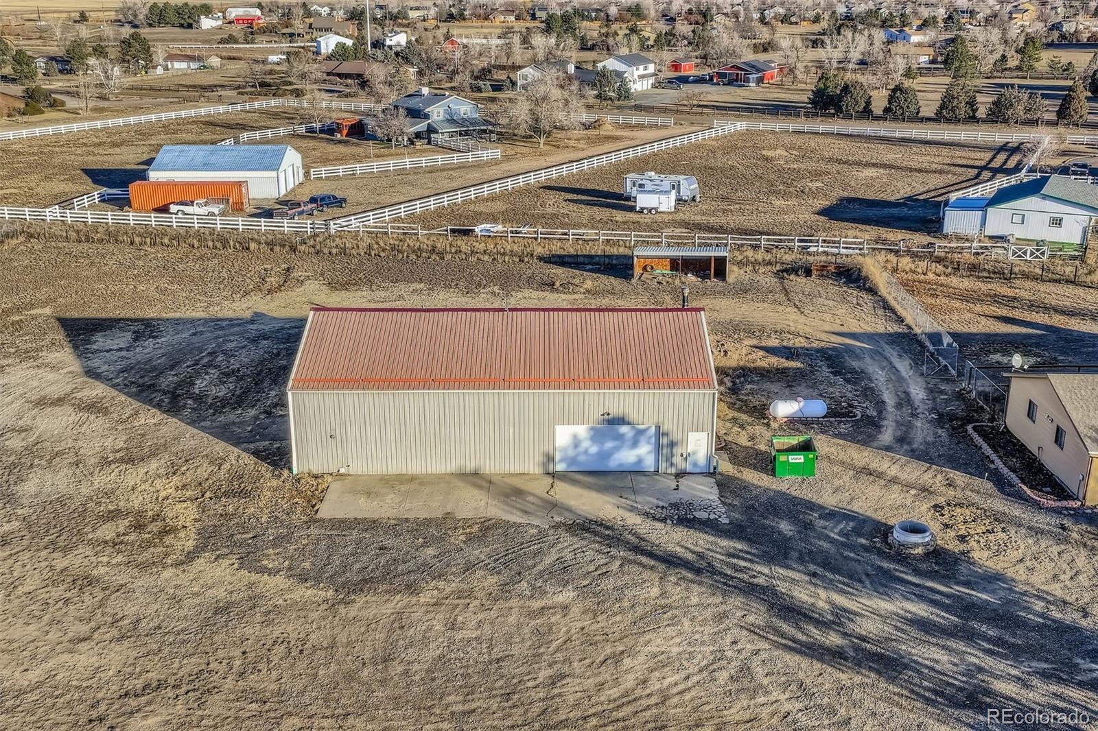 This exclusive 2.59-acre gated estate offers the perfect blend of upscale country living, privacy, and modern upgrades. ((Move-In Ready)), the home features ((Fresh Paint)) ((New Carpet)) ((New Stainless Appliances)) and ((New Concrete Driveway & Patio)). ((Bring all your toys)) Perfect for hobbyists, car enthusiasts, and animal lovers, the standout feature of this property is the ((massive 40’ x 60’ custom building/shop)). It includes radiant heat, propane gas, plumbing, and concrete floors with a floor drain, offering ample space for RVs, boats, and all your recreational vehicles. Truly all the features you look for in an amazing home that includes beautiful custom flooring that flows throughout the main level, highlighted by vaulted ceilings and an open floorplan. The chef’s kitchen boasts custom cabinetry, a large pantry, and top-of-the-line Stainless appliances, opening seamlessly to the dining area and huge expansive great room ideal for entertaining or everyday living. Cozy up by the wood-burning stove and enjoy the warmth and character throughout the home. The primary suite is a true retreat, featuring a remodeled bathroom with a massive walk-in shower and a spacious walk-in closet. Outside, a huge custom deck provides breathtaking mountain views, perfect for BBQs, gatherings, or quiet relaxation. The fully fenced property includes mature landscaping, ideal for animal lovers and outdoor living. . Conveniently located near I-25, E-470, golf courses, schools, shopping, and restaurants, this estate truly stands out. Schedule your showing today, don’t miss this rare opportunity!