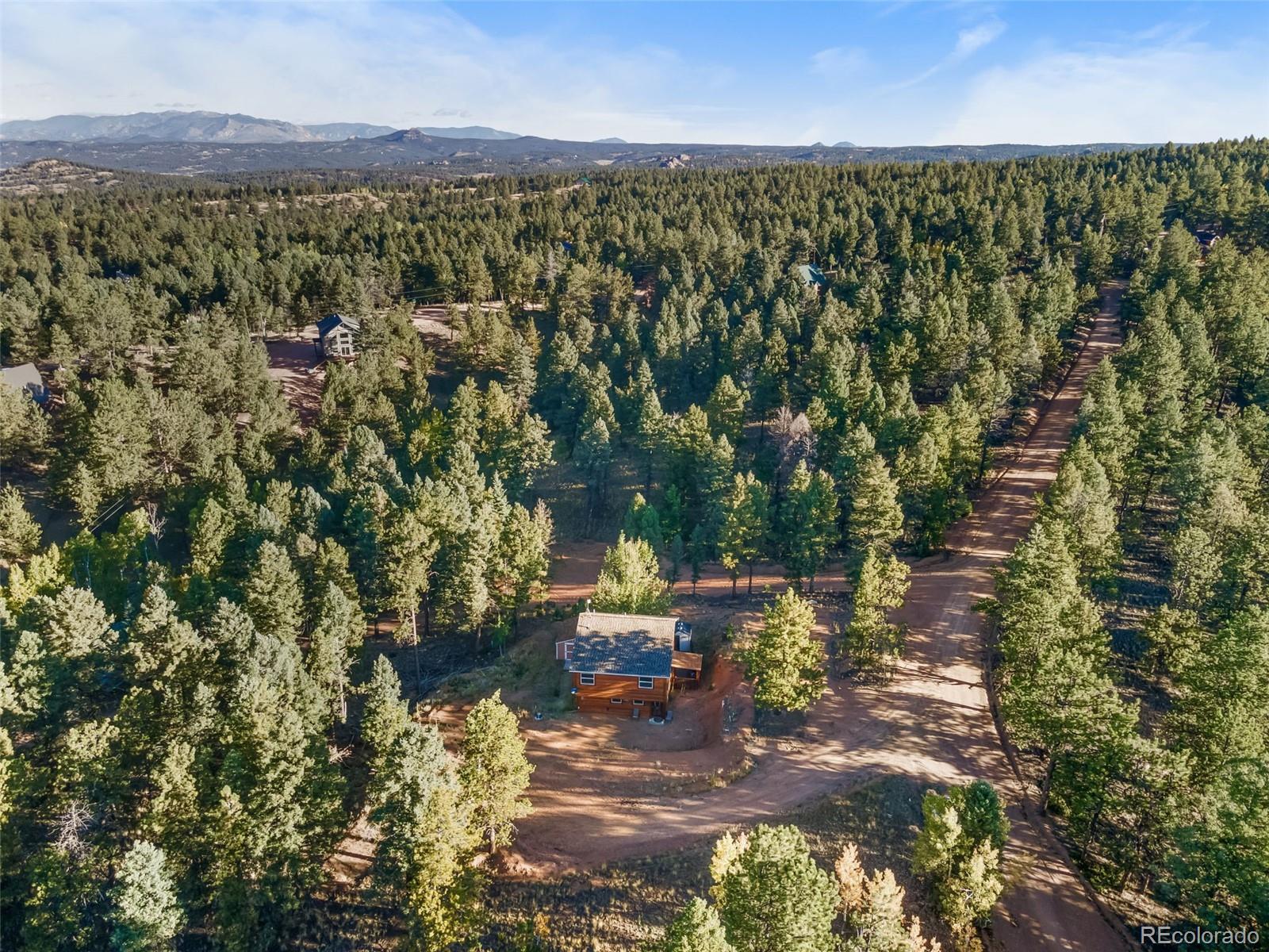 Welcome Home To This Newly Beautifully Updated Log Cabin Home Tucked Into The Highly Sought After Mountain Estates In Florissant,CO. Sitting Right Outside Of Woodland Park & Colorado Springs, This Quiet, Treed Mountain Community Is Sure To Impress.A Short Drive To Cripple Creek, Buena Vista, Lakes, Campgrounds, & Popular Colorado Hiking Destinations. The Local Fire Station Sits At The Community Entrance. Upon Entering The Property, You will See A Large Treed Lot With Clearing For Easy Access, RV Parking, Fire Mitigation & Easy Snow Removal. The Large Living Room Welcomes You With A Tiled Entrance, An Abundance Of Natural Light & Enough Space For A Breakfast Nook. The Covered Patio Off The Living Room Offers A Quite Place To Sit Or To Entertain! The Updated Kitchen Boasts A Beautiful Tile Backsplash, Tile Floors, Granite Counters & Newer Black Appliances. The Peninsula Offers Additional Counter Space & Cabinet Space! The Dining Room Boasts A Pantry, Coat Closet, & Propane Stove For Extra Heat On Those Chilly Colorado Evenings. The Updated Main Level Bathroom Is Inviting With Natural Light & A Large Closet For All Of Your Storage Needs. Upstairs You Will Find 3 Bedrooms, All With Vaulted Ceilings, Ceiling Fans & Beautiful Views Of The Mountains And Forest! The Primary Room Offers 2 Closets And The Large Updated Bathroom Upstairs Offers A Full Walk In Shower With Beautiful Glass Doors, A Large Vanity, Natural Light & Bronze Finishes. The Bright Laundry Room Has Extra Folding Space & A Large Storage Closet For Your Convenience. Outside You Will Find A Fenced Back Yard, Soffit Lighting & 2 Sheds. The Large Tuff Shed Has A Workbench, Optional Lighting & Outlets For Your Workshop & Storage Needs. The Community Offers A Private Fishing Lake & Picnic Area Exclusive To Mountain Estates Residents. The Community Also Offers Green Space, Play Space, & A Community Space With Picnic Tables & Community Events! This Home Is A Must See! Seller To Finish Patio Fence & Clean Carpets!