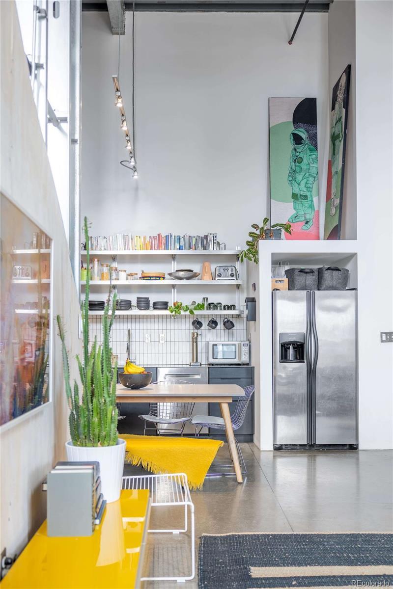 Design your perfect home within the walls of this light-filled, modern-industrial style loft located in the award-winning TAXI community, along the western edge of the River North Arts District “RiNo”. If you’re looking to wake up each day feeling inspired by where you live, then residence 306 in the progressively designed “TAXI 2” building could be the place for you. This property has been cared for and well-maintained by the original owners. A thoughtful remodel included an expansion of the primary bedroom and a custom walk-in closet. Concrete floors, open loft-like floor plan, 22’ vaulted ceilings, and a modern designed kitchen complete with handmade tile from Heath Ceramics, add to the appeal of this fun and creative living space. Westward facing balcony and exterior windows frame views of the Rocky Mountains and the surrounding TAXI campus, which is reminiscent of the type of mixed-use, urban developments one might expect to see in western or northern Europe. The unit comes with a stackable washer and dryer and one deeded covered parking space (north of the building); the Taxi community has an abundance of visitor parking. Once home to Denver's Yellow Cab Depot, pioneering development company Zeppelin Development has transformed the TAXI campus to its current vibrant state with 9 buildings, 150+ businesses and 300+ full-time residents. As a resident of the TAXI community (www.taxibyzeppelin.com), you will have access to numerous on-site amenities including, conference / meeting rooms, multiple dog parks, volleyball court, BBQ area, Lost City Coffee, Goldie Bob Salon, OPENAir early childhood education academy, skateboard park, playground and community gardens. Enjoy living in close proximity to downtown, I-25, I-70, the South Platte River Trail, RiNo Art Park, and all of the bars, restaurants, and shops the River North Arts District has become known for.